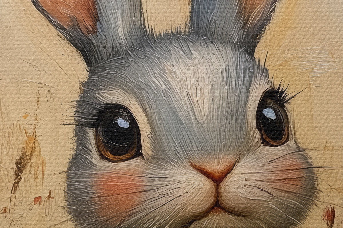 Attēls Zaķis laukā starp ziediem ar otas triepieniem Nr r40999