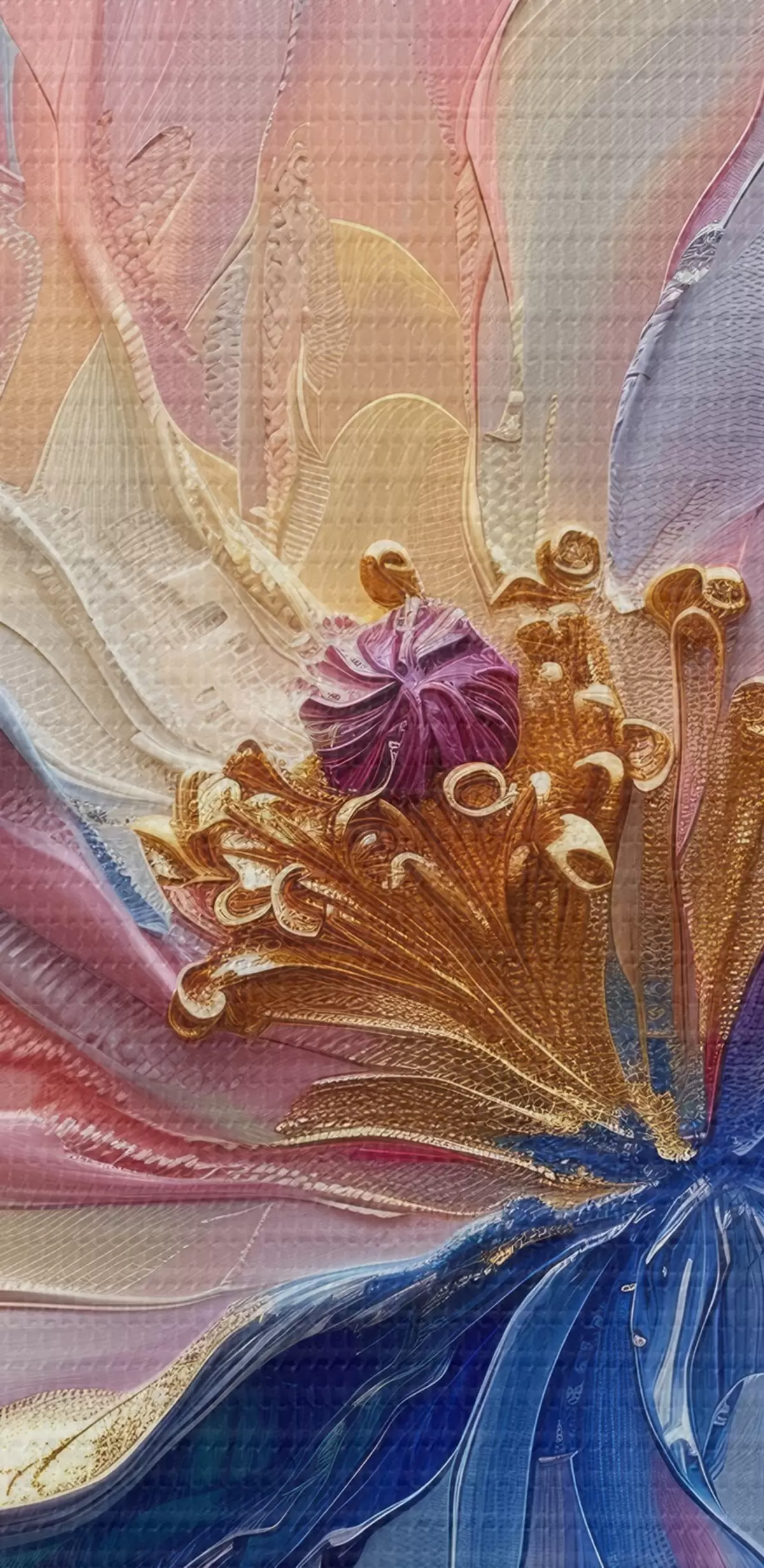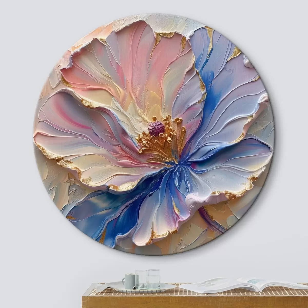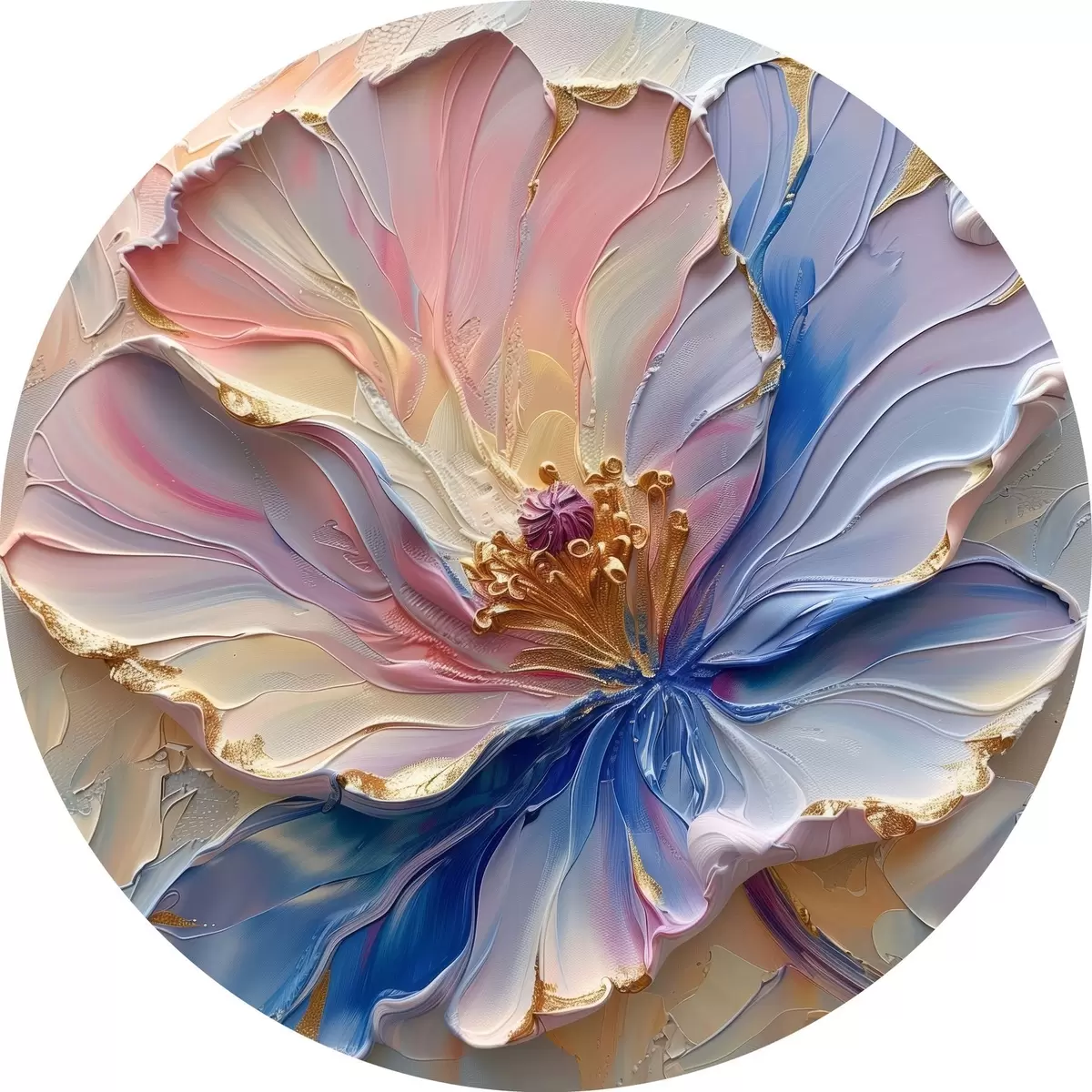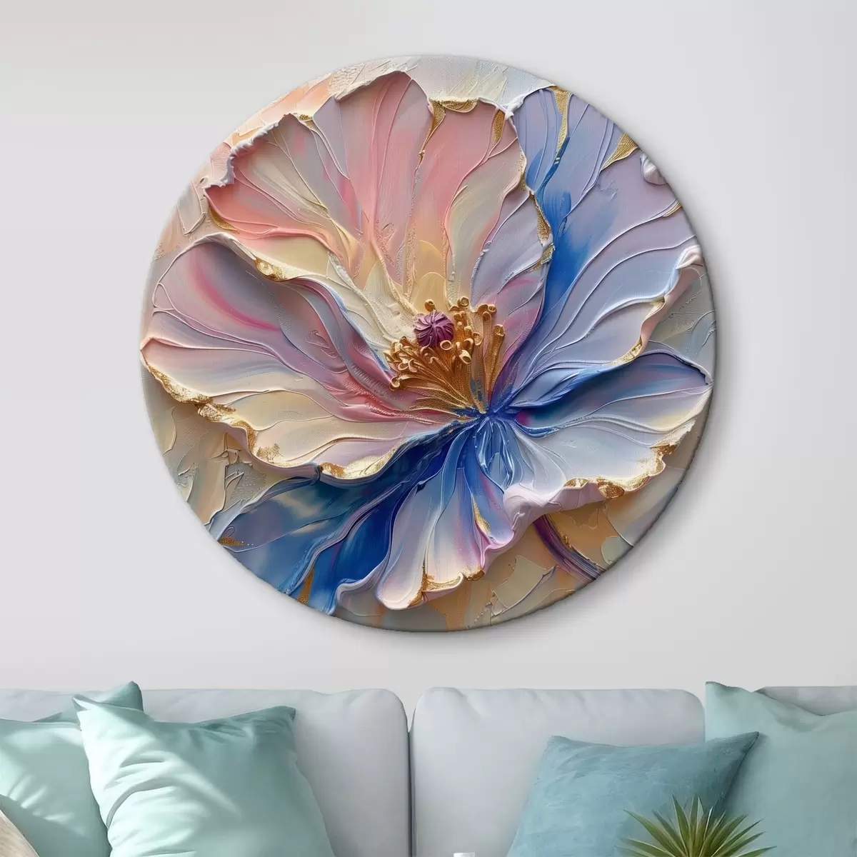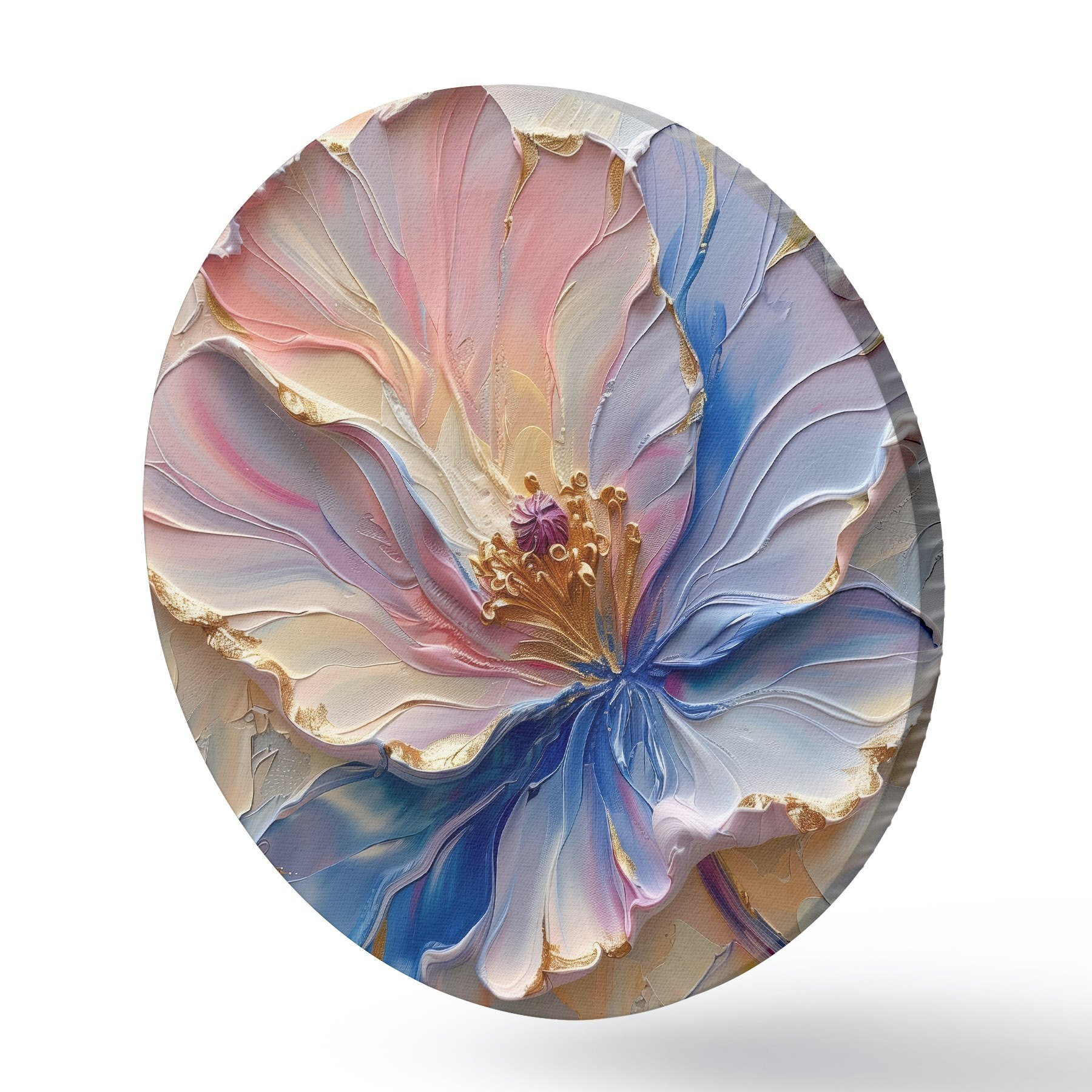 Apaļas gleznas Liels zieds maigos rozā un zilos toņos r41006