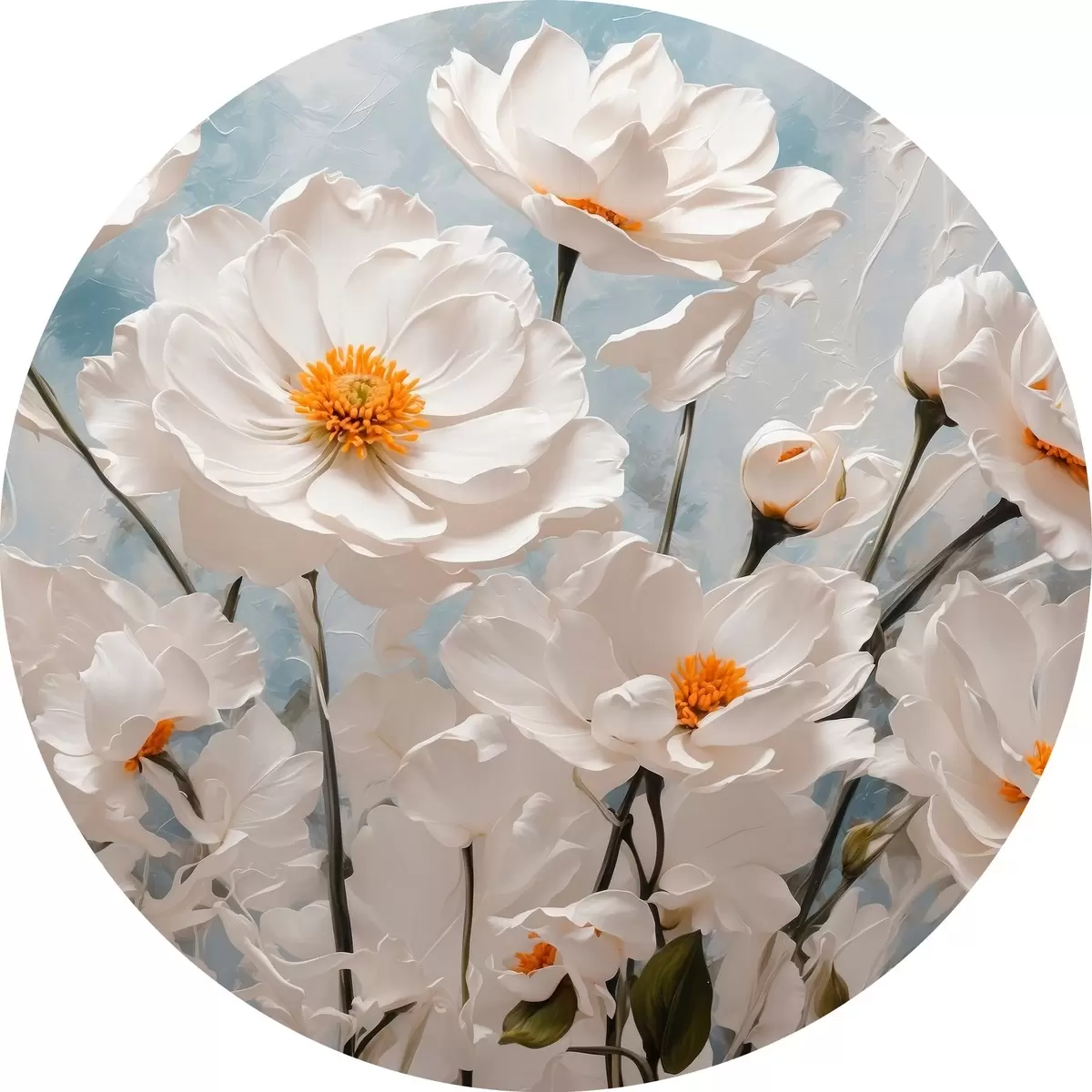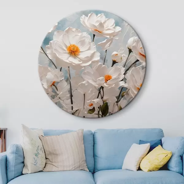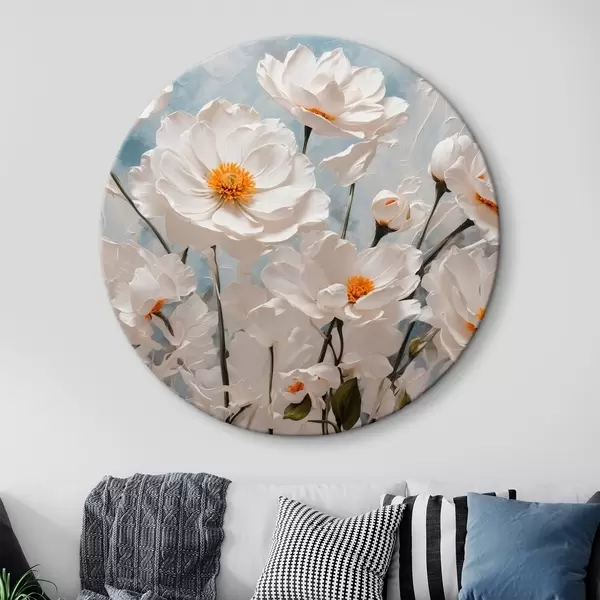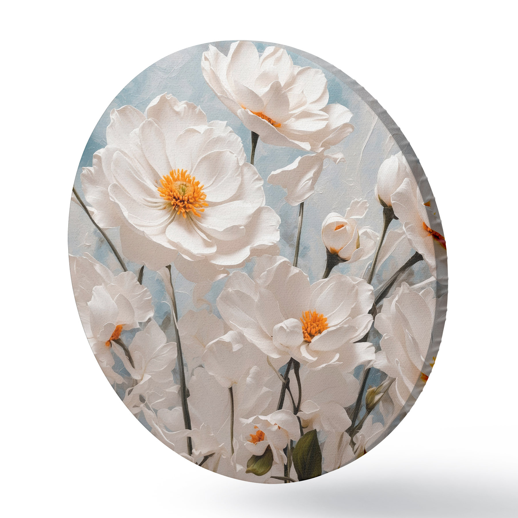 Apaļas gleznas Balti ziedi uz zila un balta eļļas fona r41041