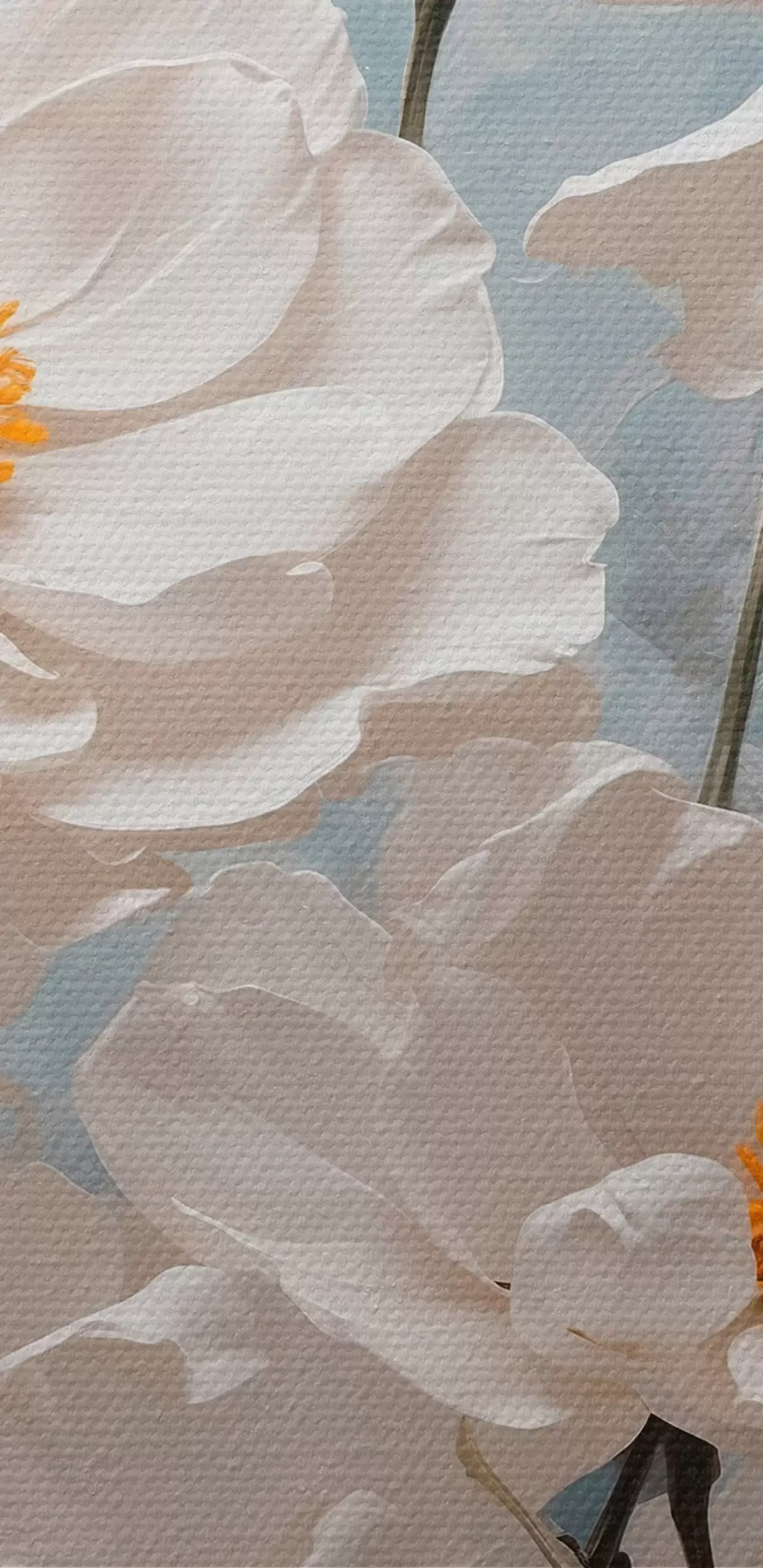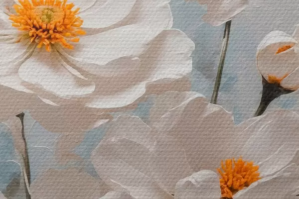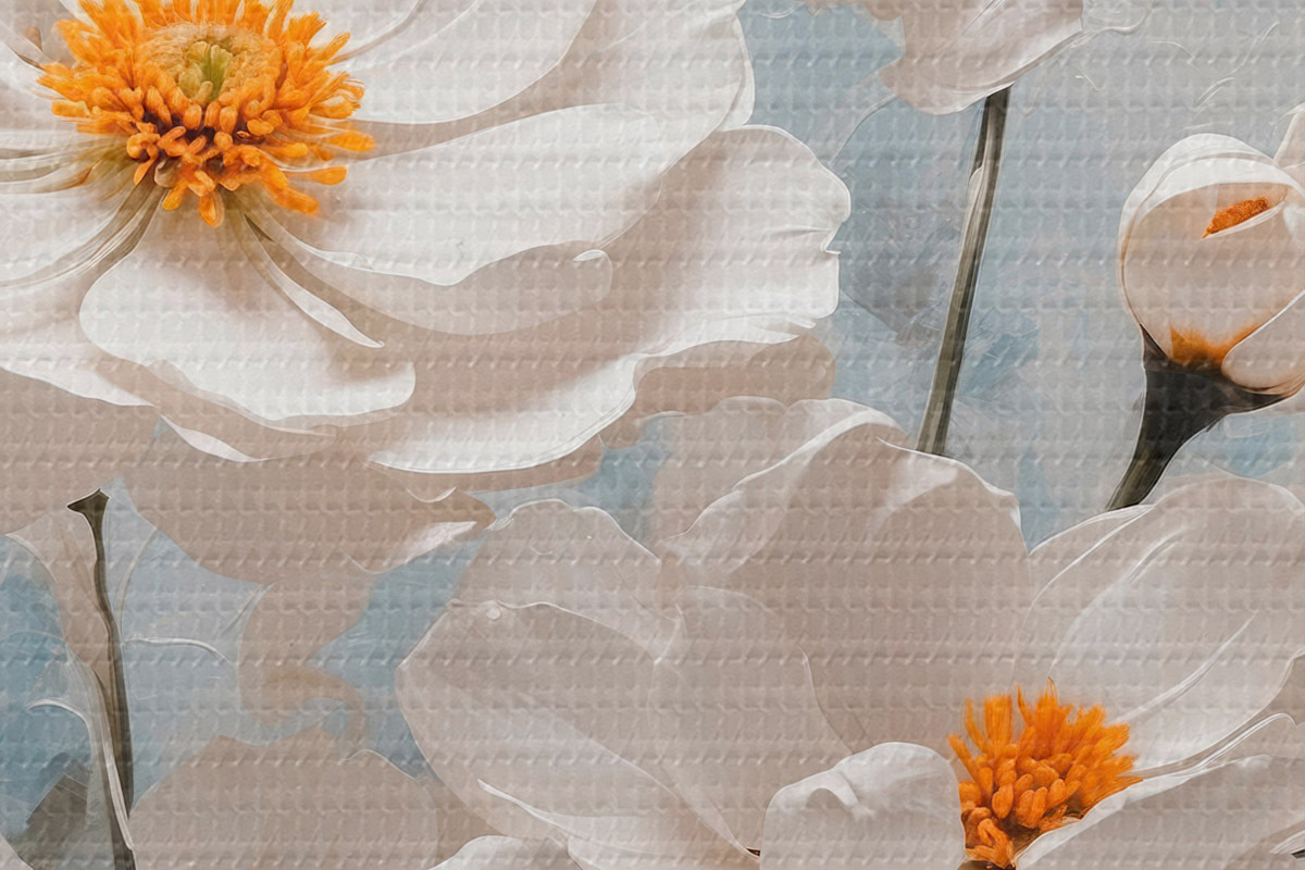 Attēls Balti ziedi uz zila un balta eļļas fona Nr r41041