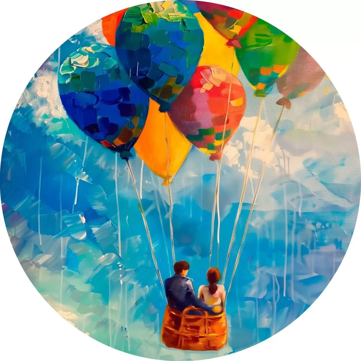 Apaļas gleznas Pāris uz gaisa balona r41074