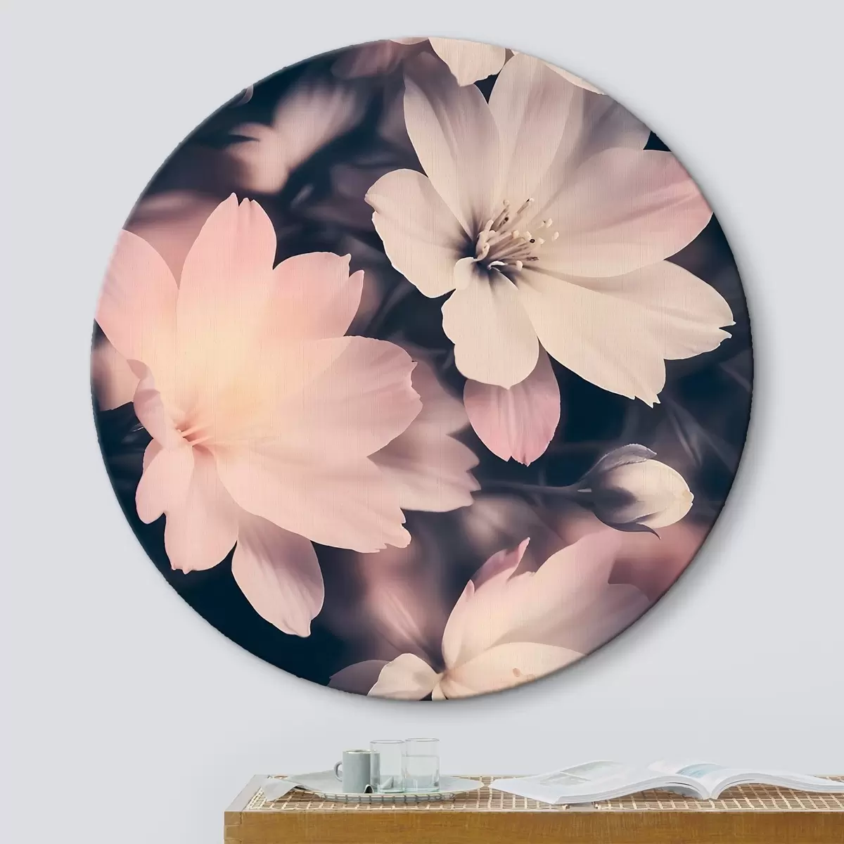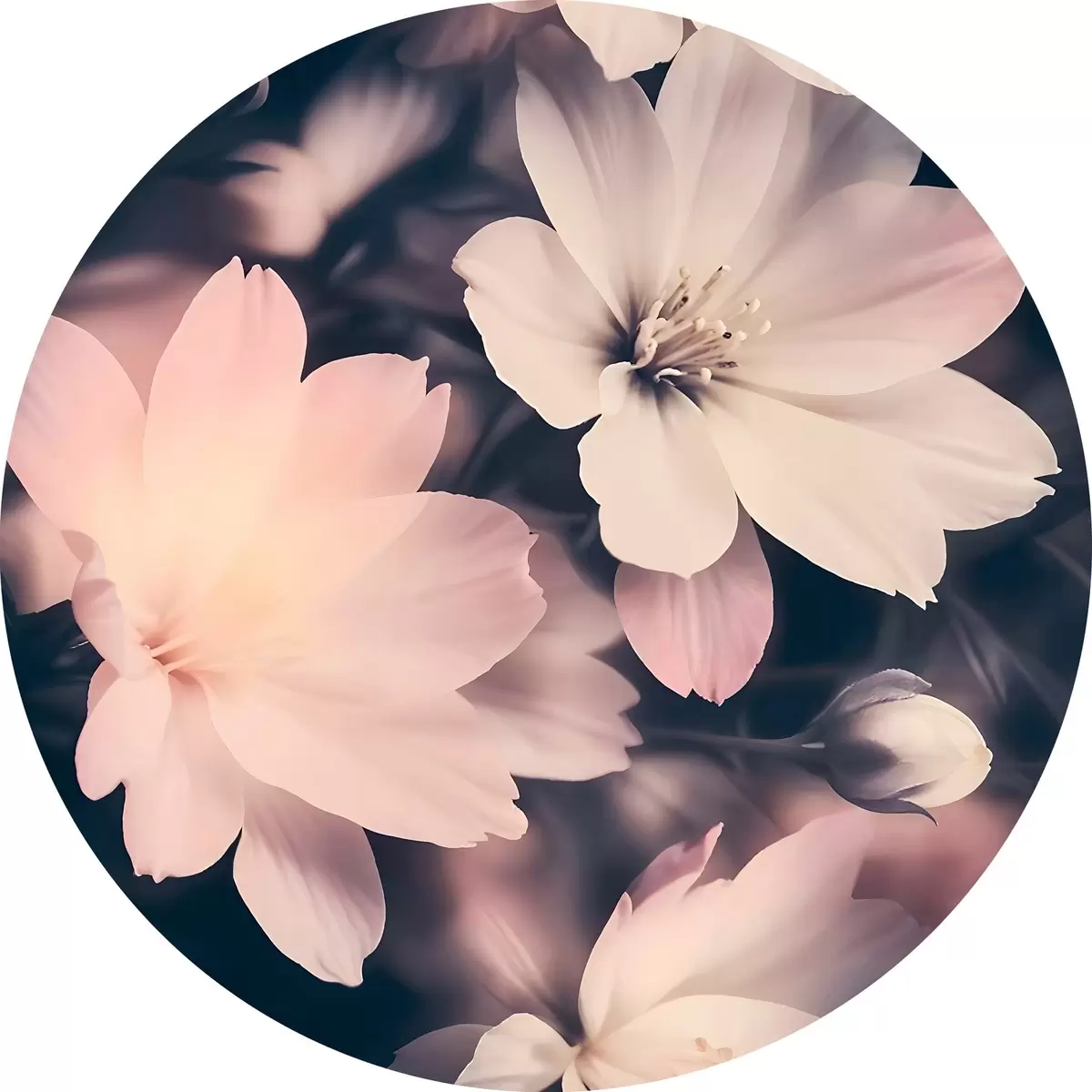 Attēls Maigas rozā un baltas puķes vintage stilā ar izplūdušu fonu Nr r41084