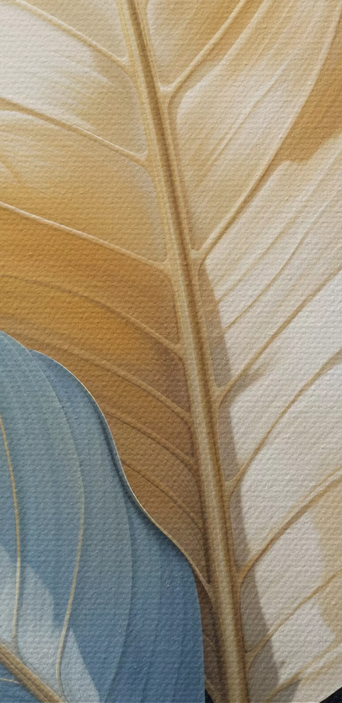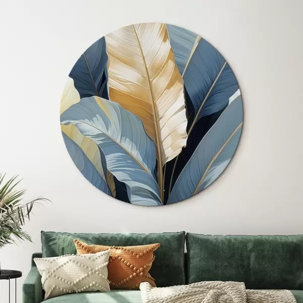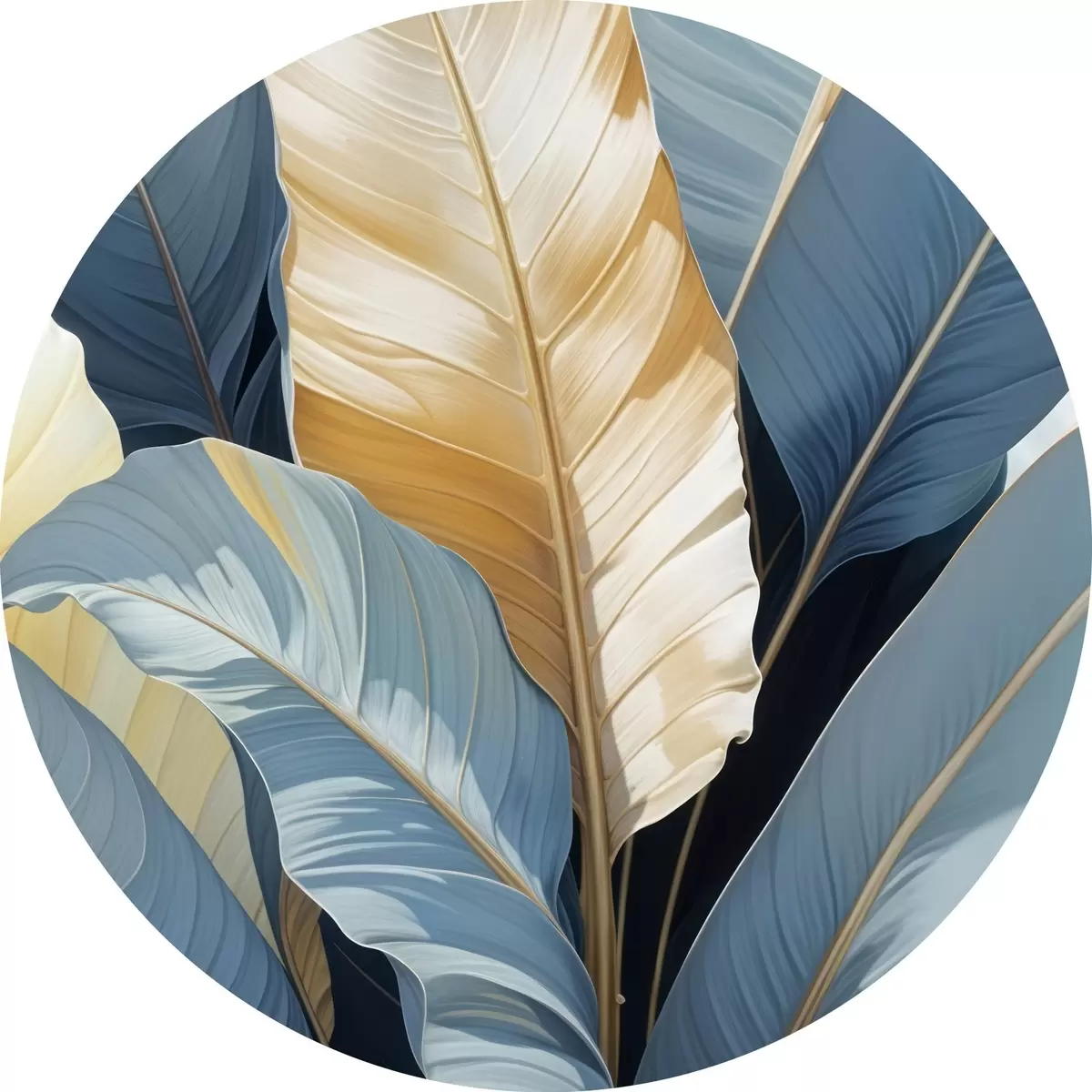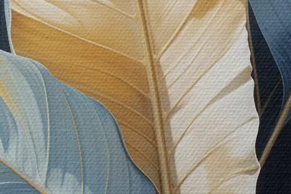 Attēls Tropu lapas zilos un dzeltenos toņos, lielas palmu vai banānu lapas ar sulīgu dabisku fonu Nr r41097