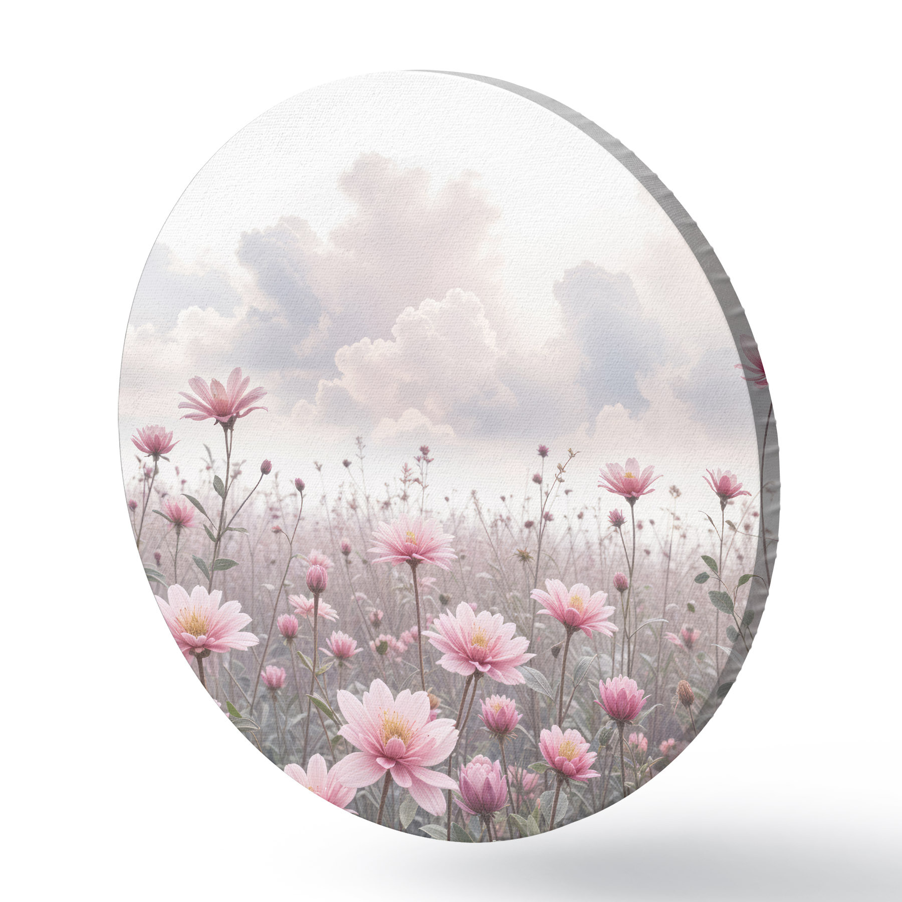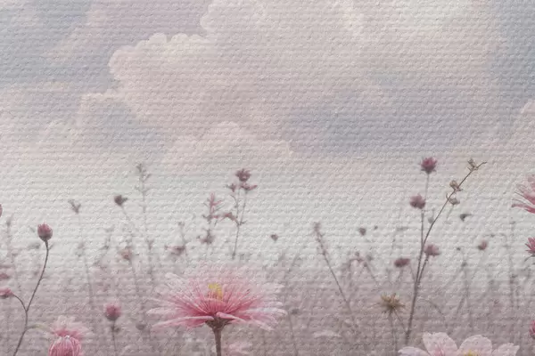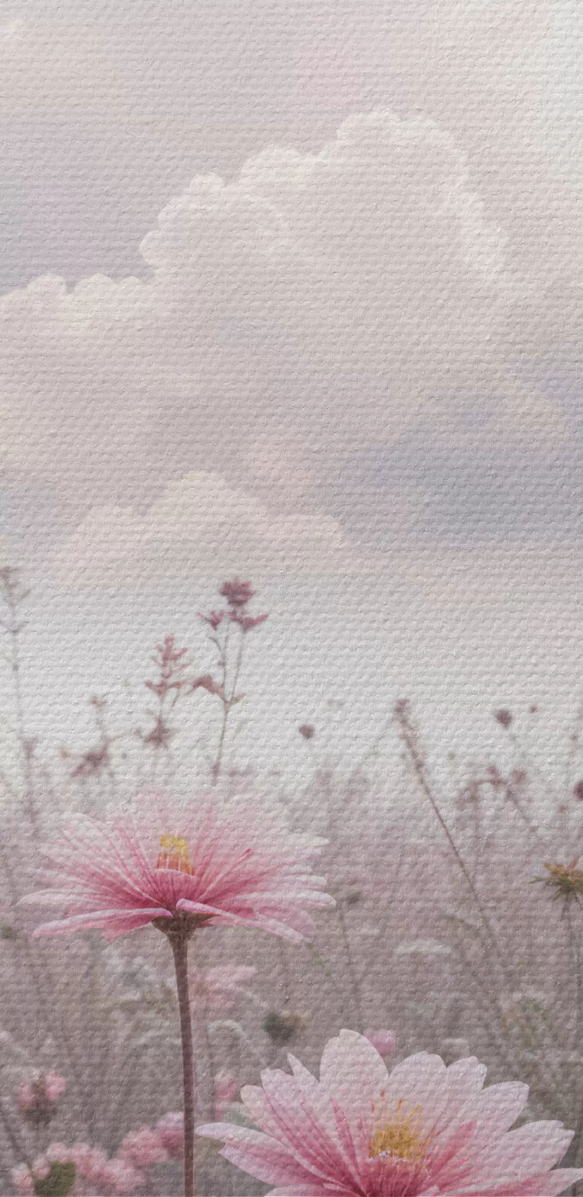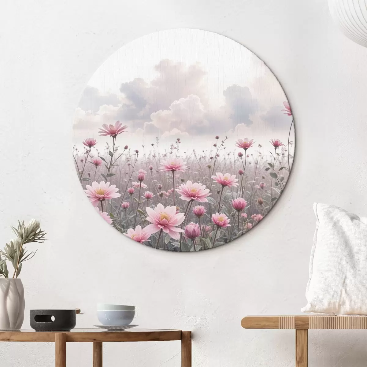 Attēls Rozā margrietiņu ziedu lauks pret mākoņainām debesīm Nr r41102
