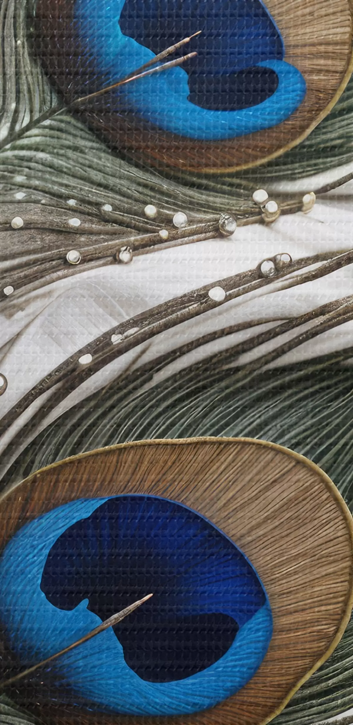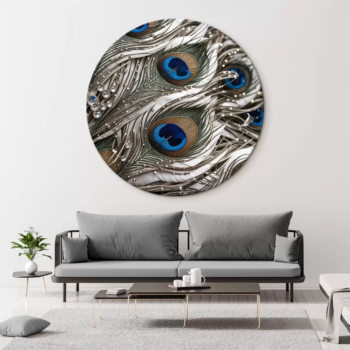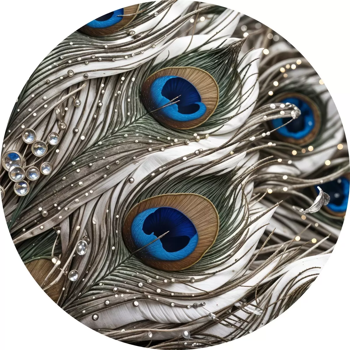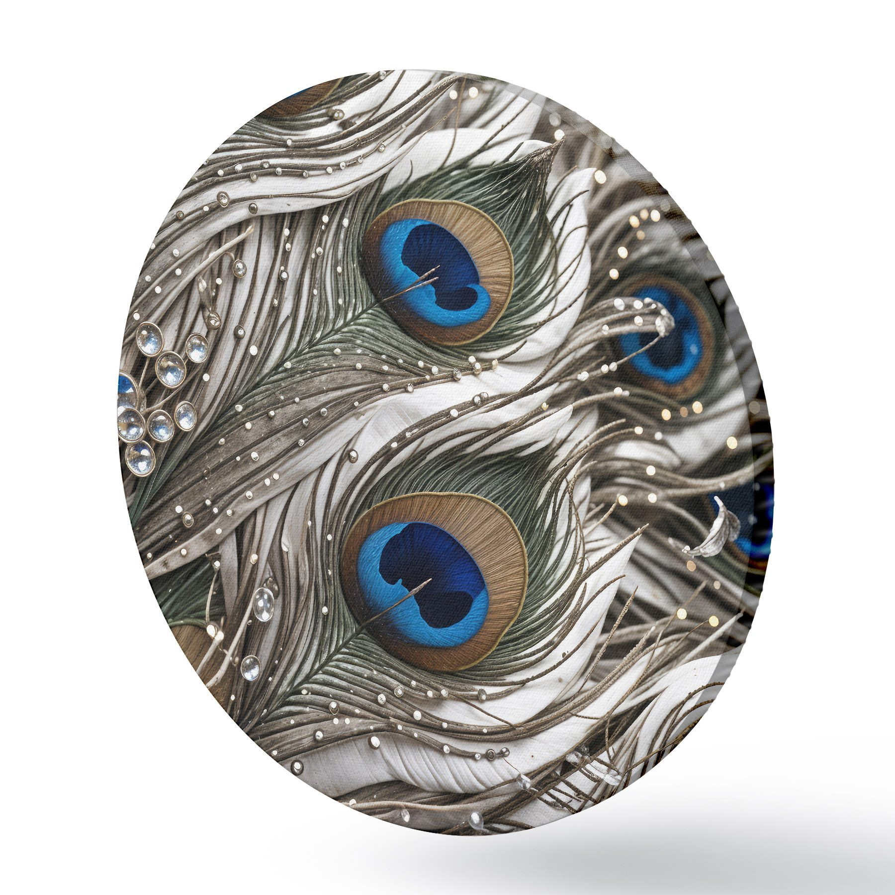 Apaļas gleznas Spilgtas pāvu spalvas ar sarežģītiem rakstiem un spilgtiem ziliem rakstiem r41103
