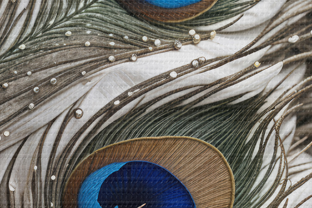 Attēls Spilgtas pāvu spalvas ar sarežģītiem rakstiem un spilgtiem ziliem rakstiem Nr r41103