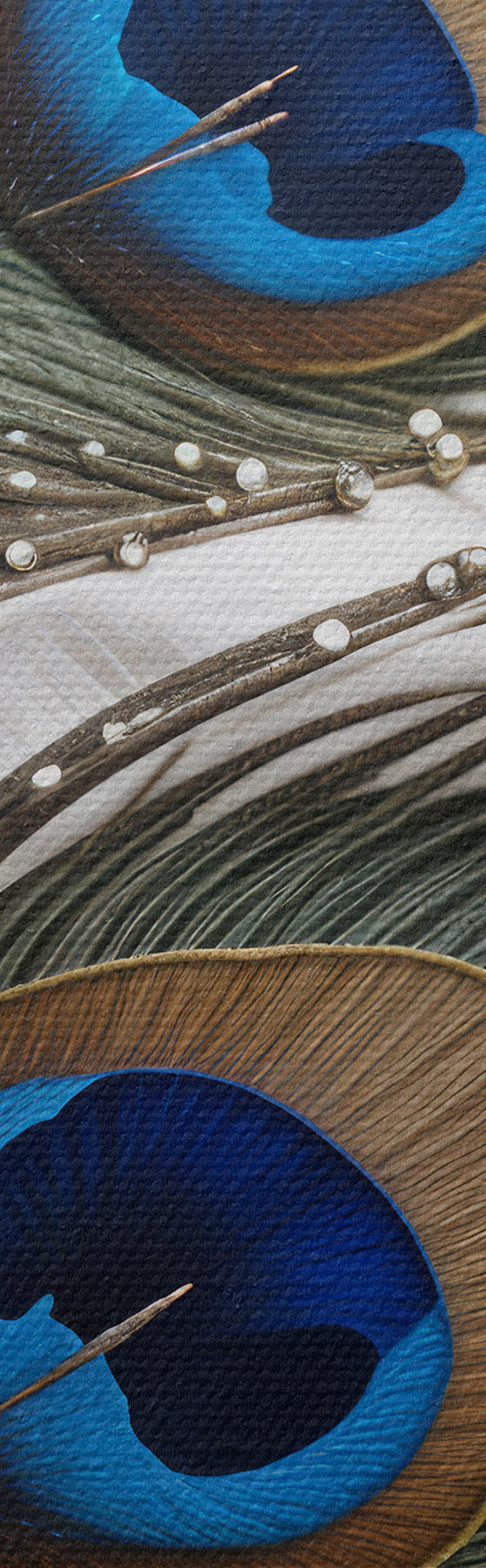 Smalkais diegu pinums uz šī audekla atgādina profesionālu mākslinieku audeklu virsmu.