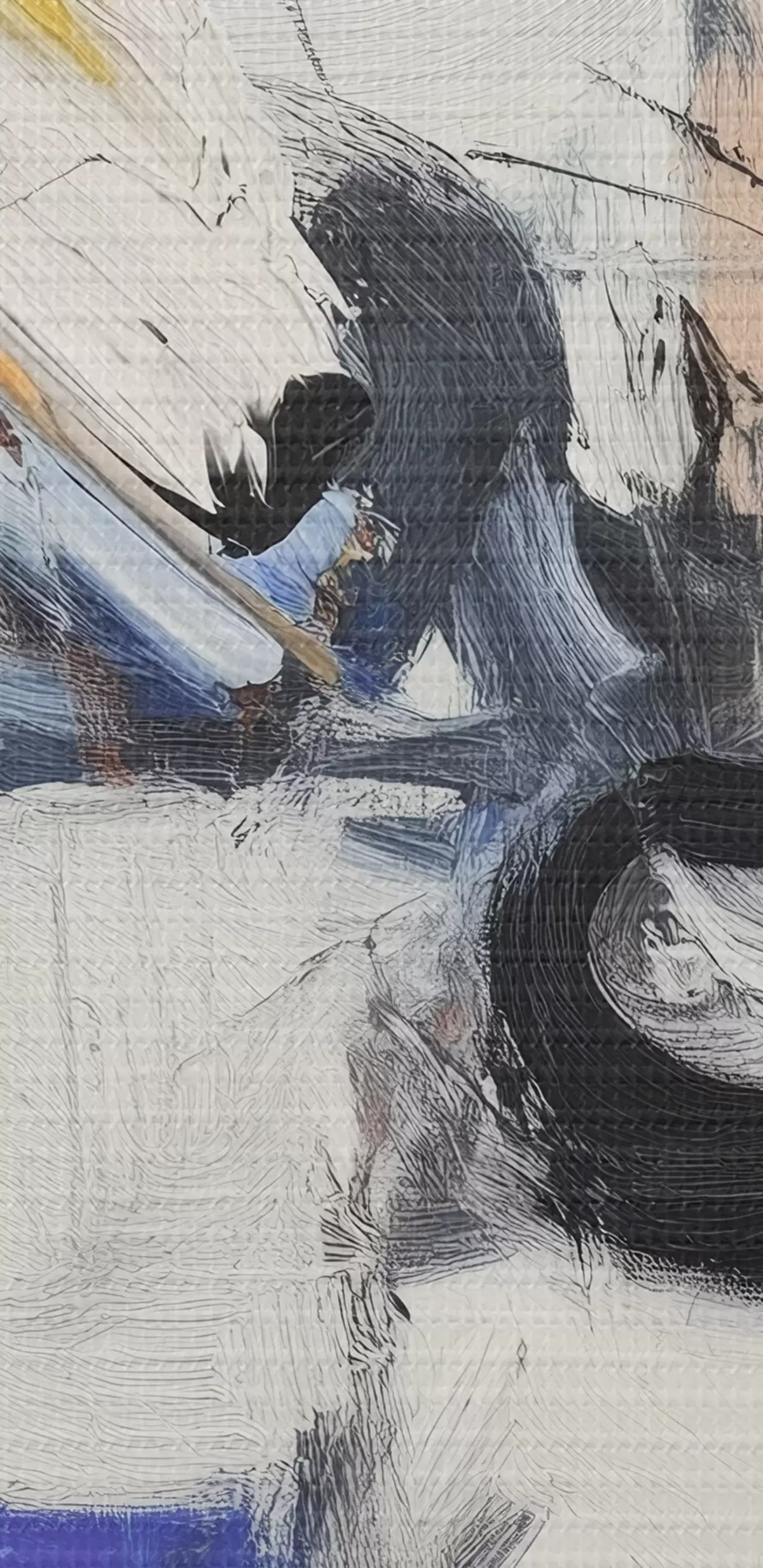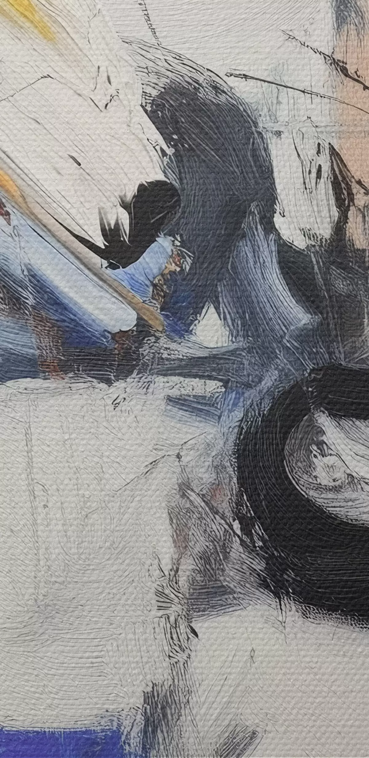 Smalkais diegu pinums uz šī audekla atgādina profesionālu mākslinieku audeklu virsmu.