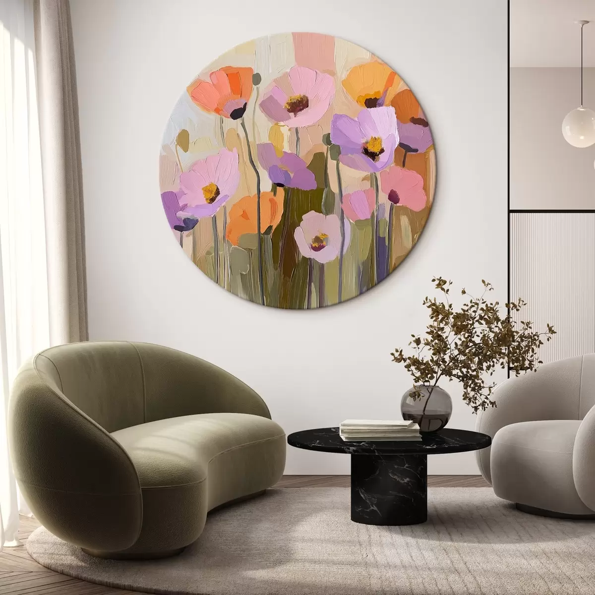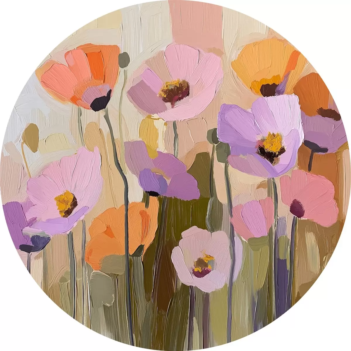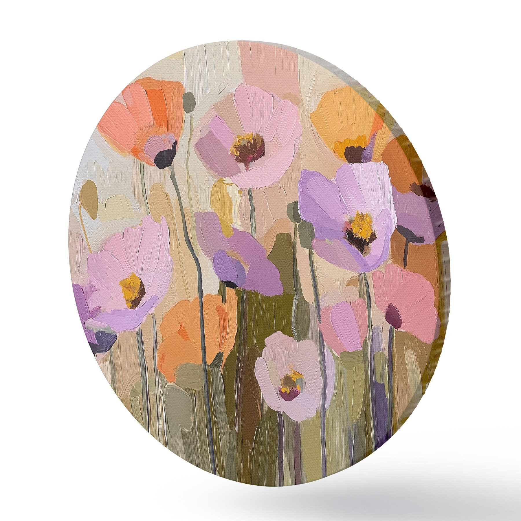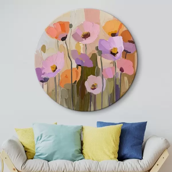 Apaļas gleznas Akrila gleznojums, kurā attēlotas rudens magones r41158