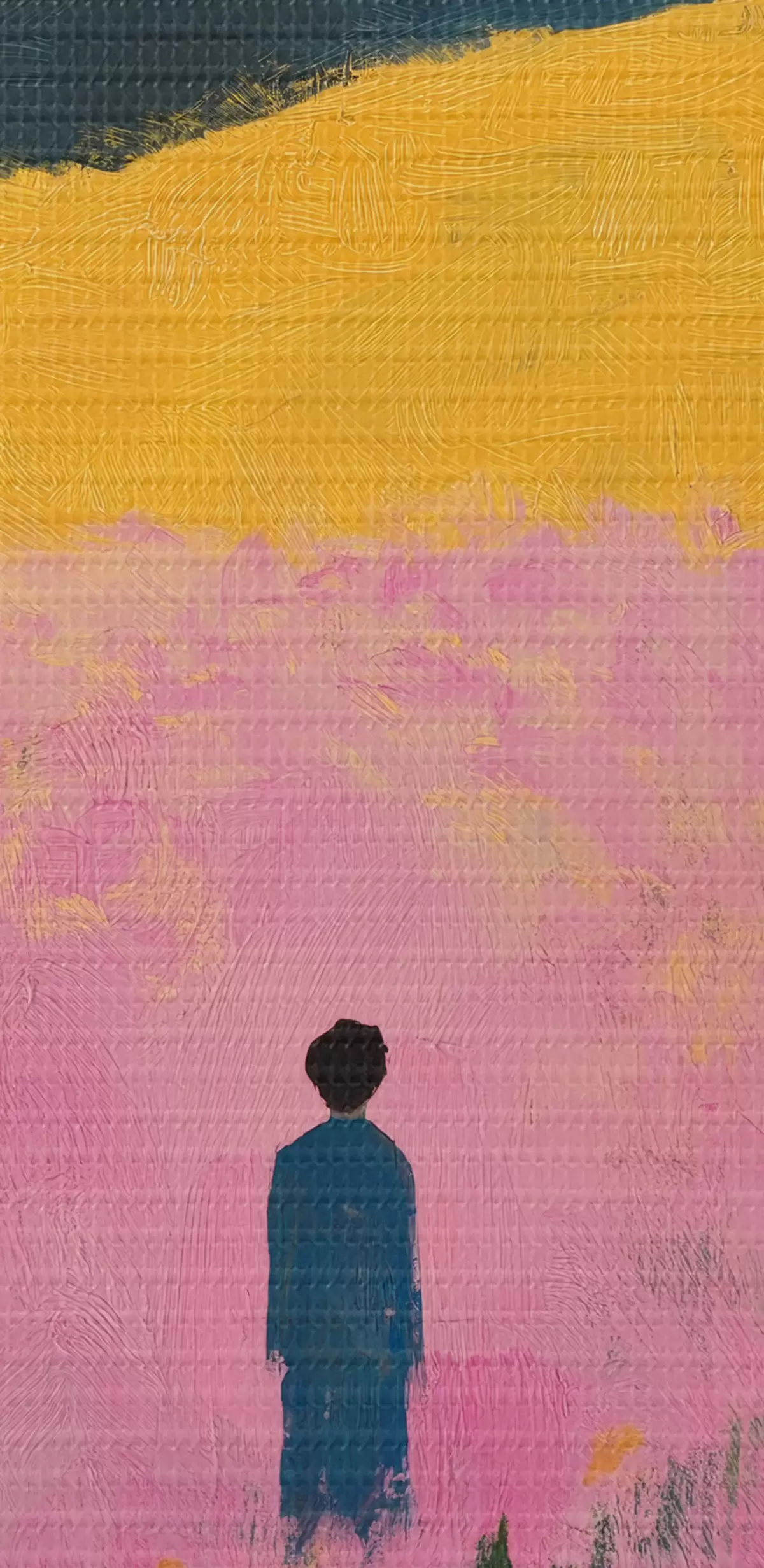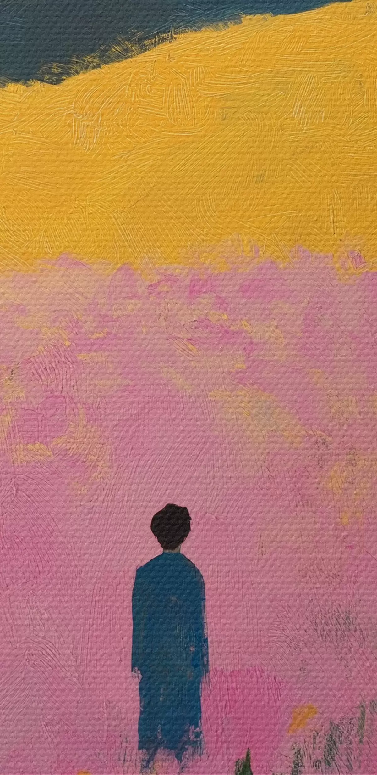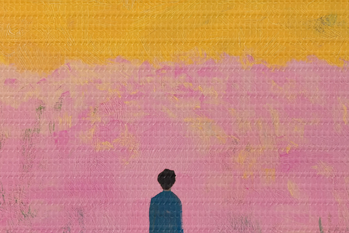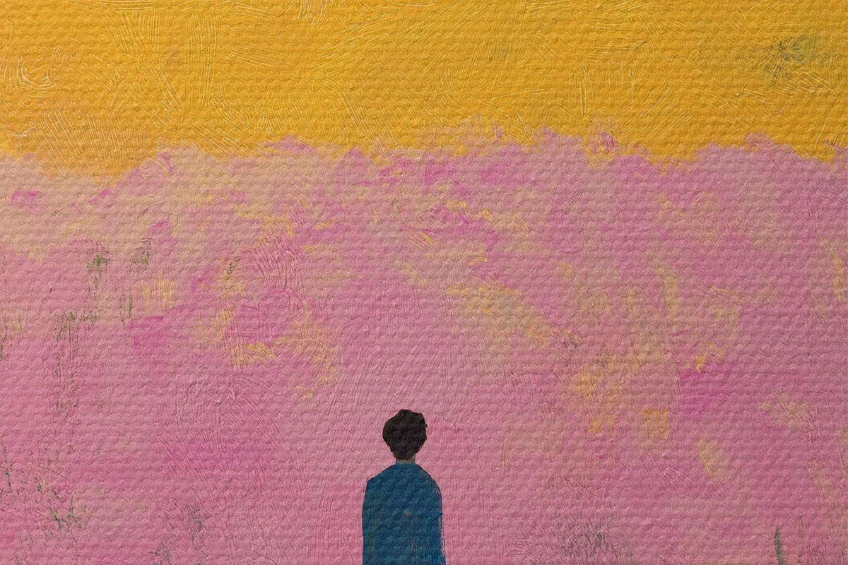 Apaļas gleznas Vīrietis laukā ar rozā ziediem r41164