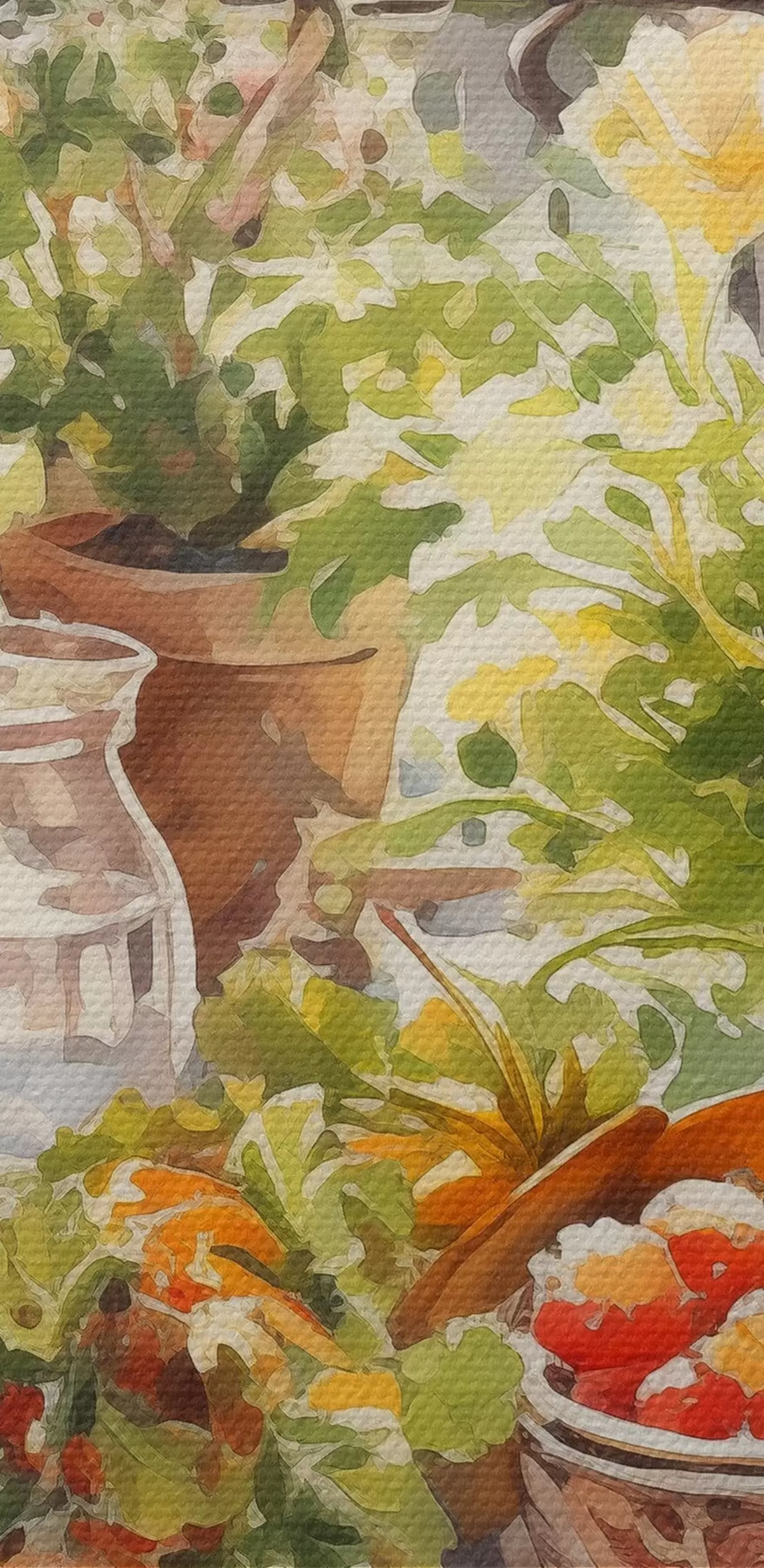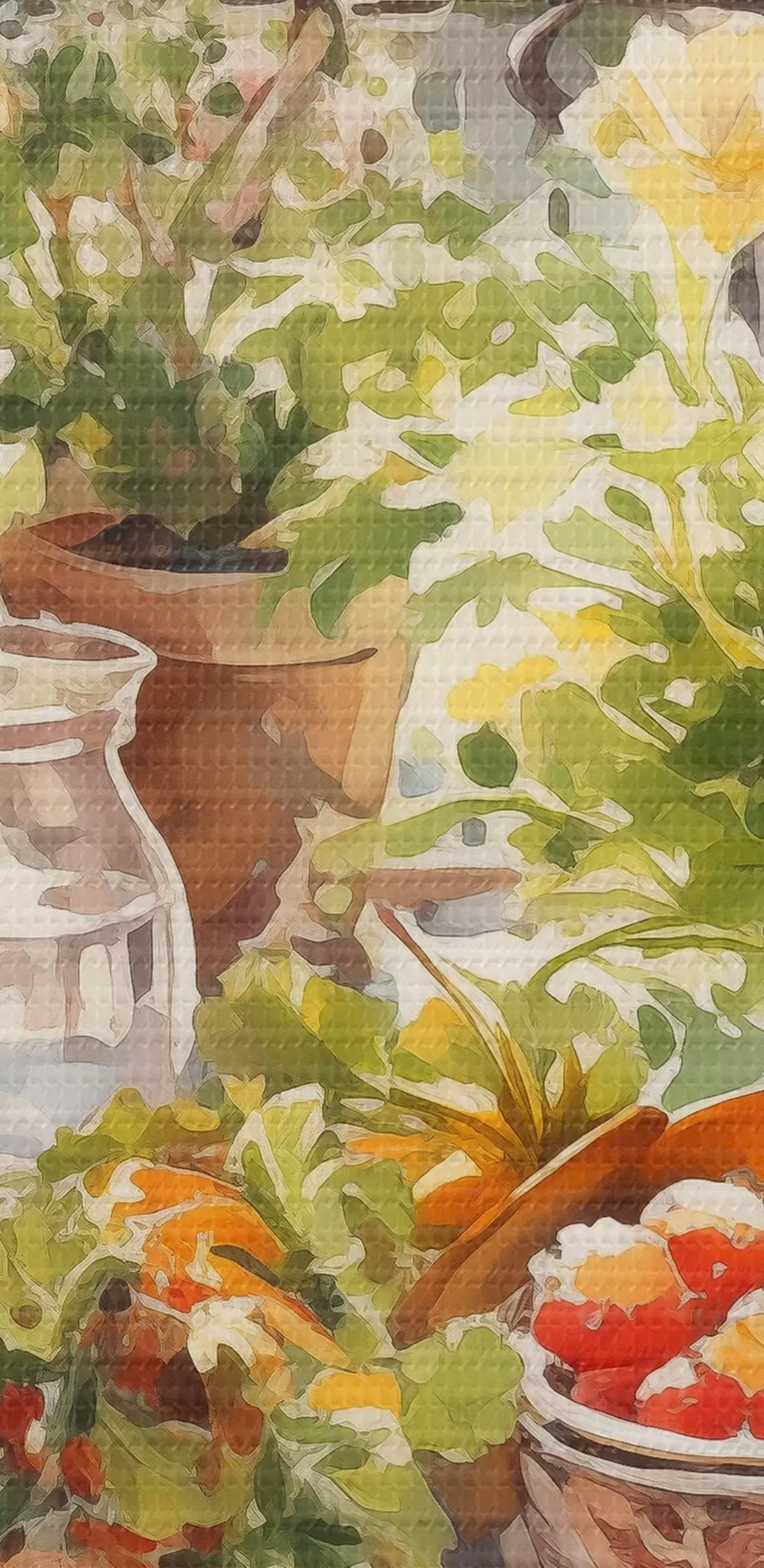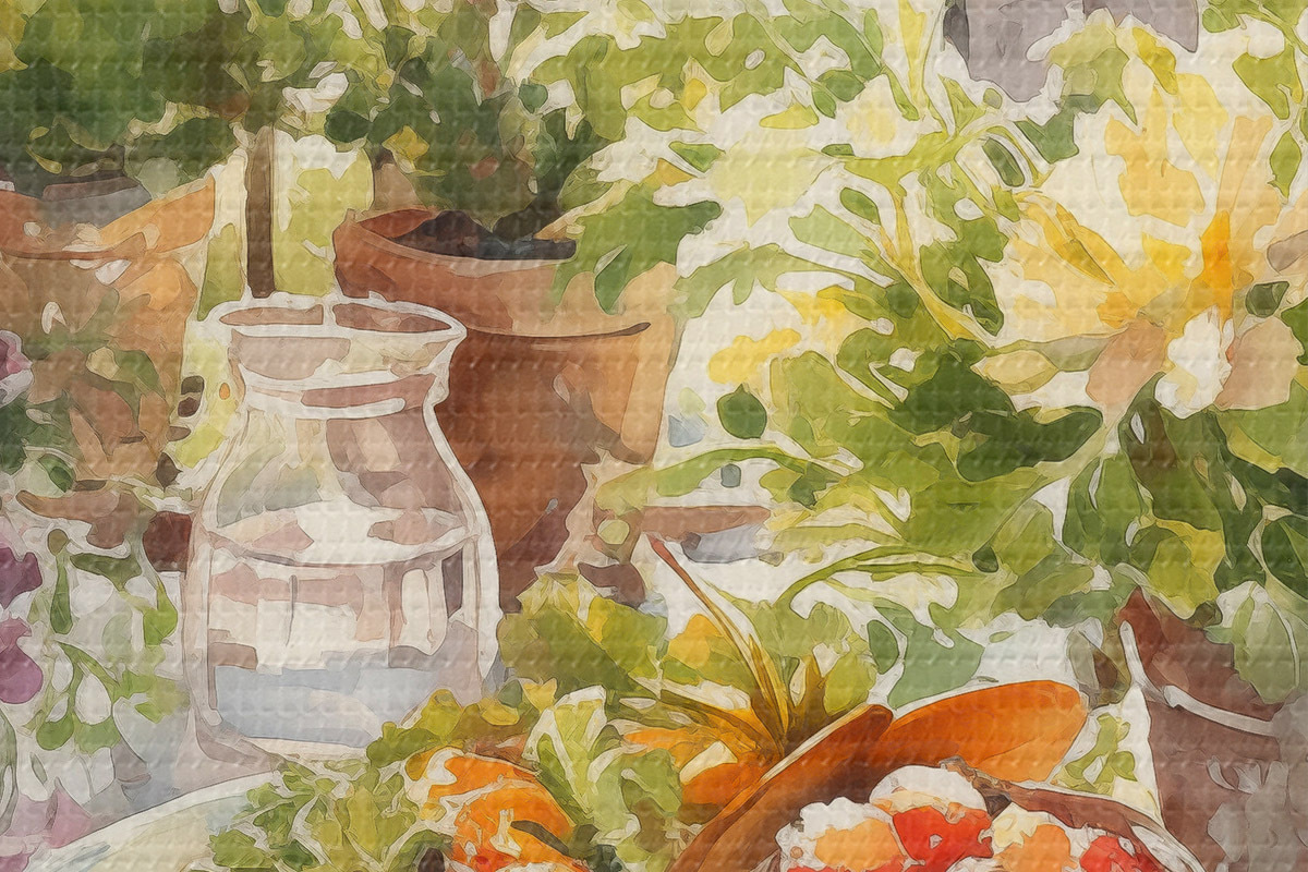Attēls Romantiskas vakariņas ar skatu uz pilsētu, akvarelis, ziedi Nr r41168