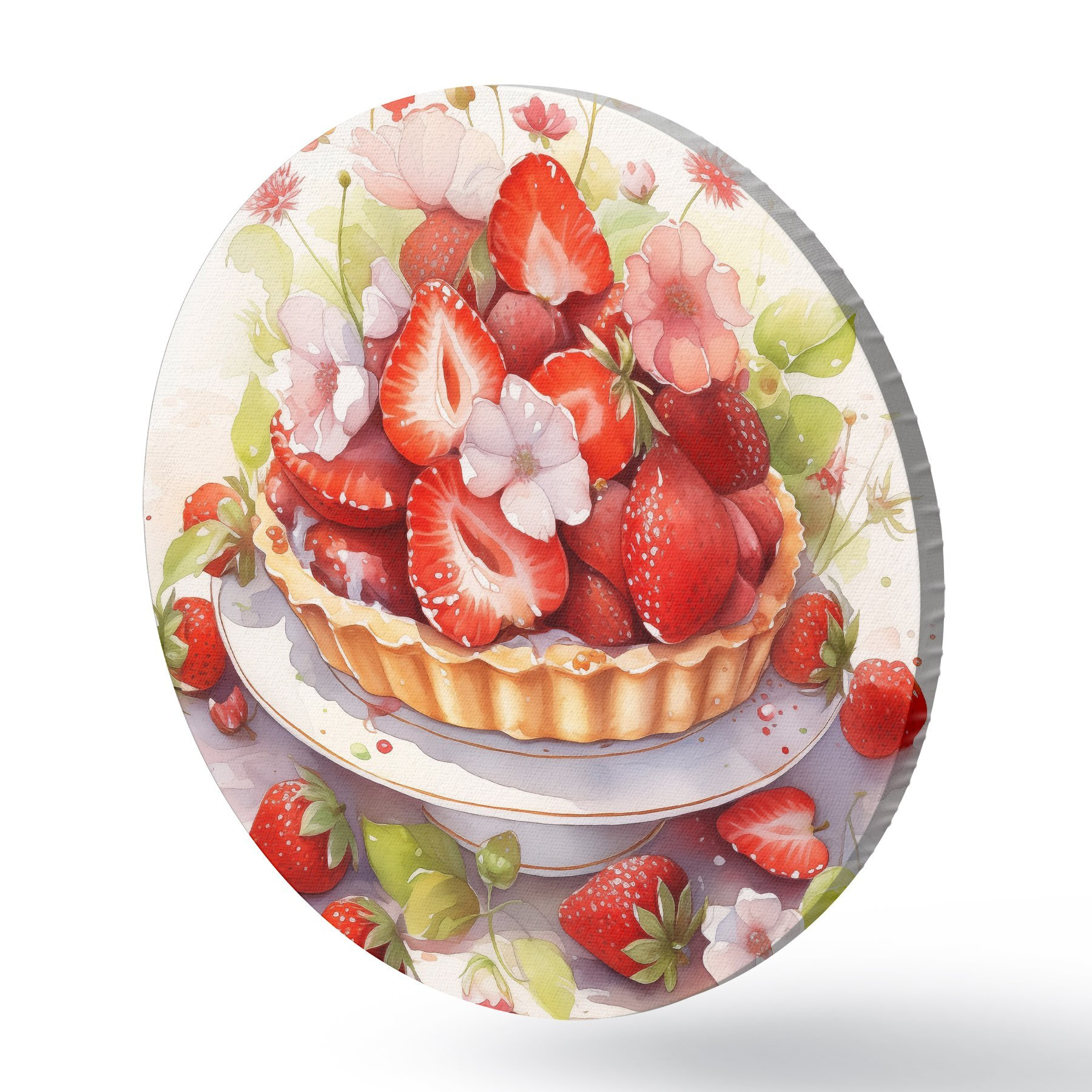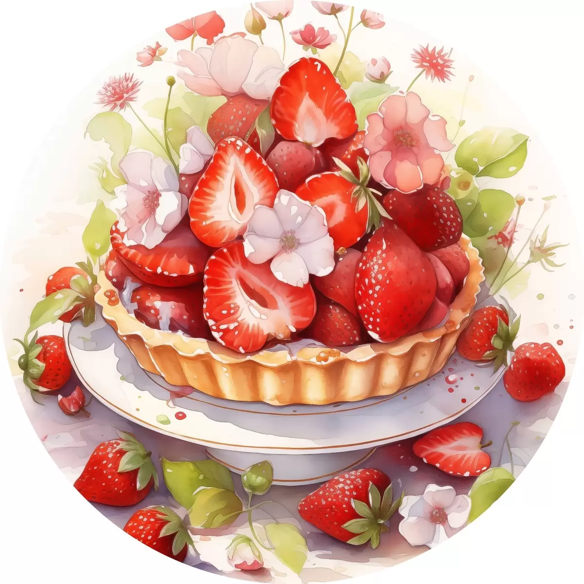 Apaļas gleznas Zemeņu pīrāgs, akvarelis, ziedi r41177