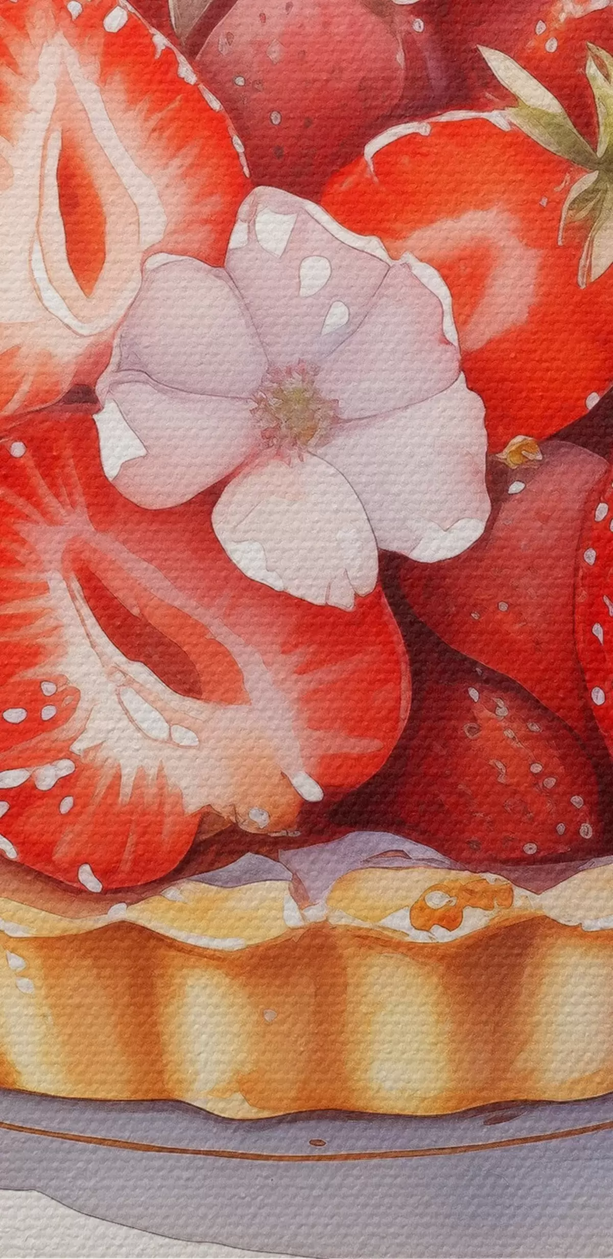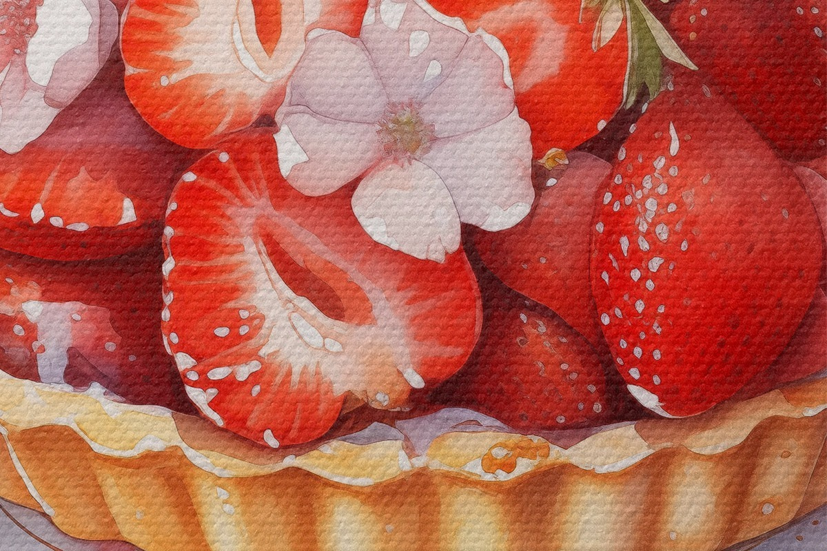 Attēls Zemeņu pīrāgs, akvarelis, ziedi Nr r41177