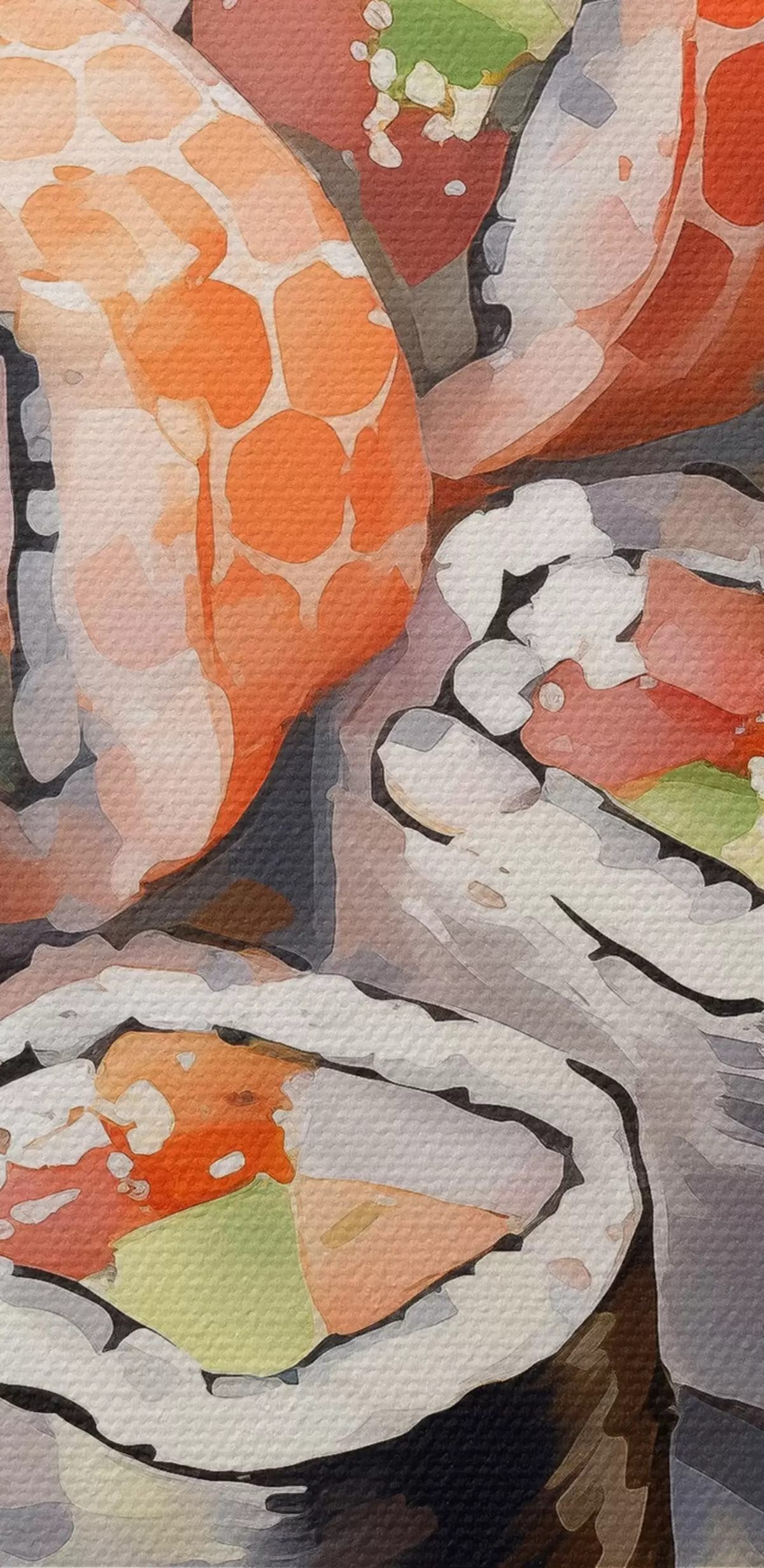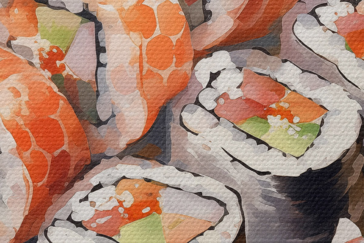 Attēls Suši uz šķīvja, akvarelis, ziedu, japāņu Nr r41179