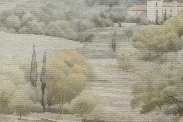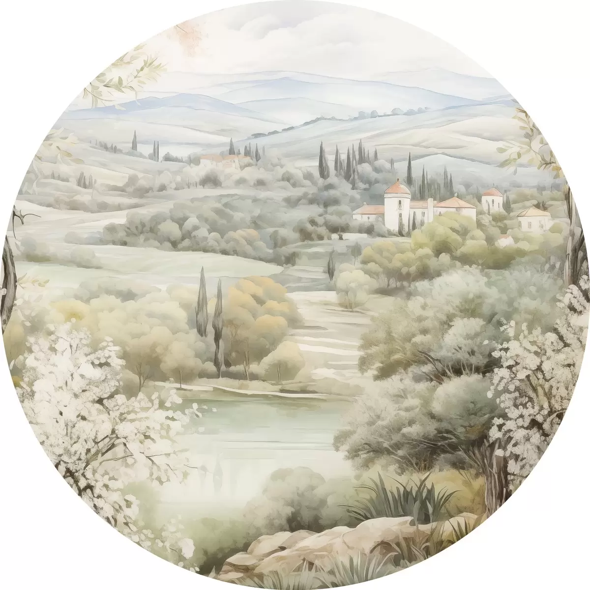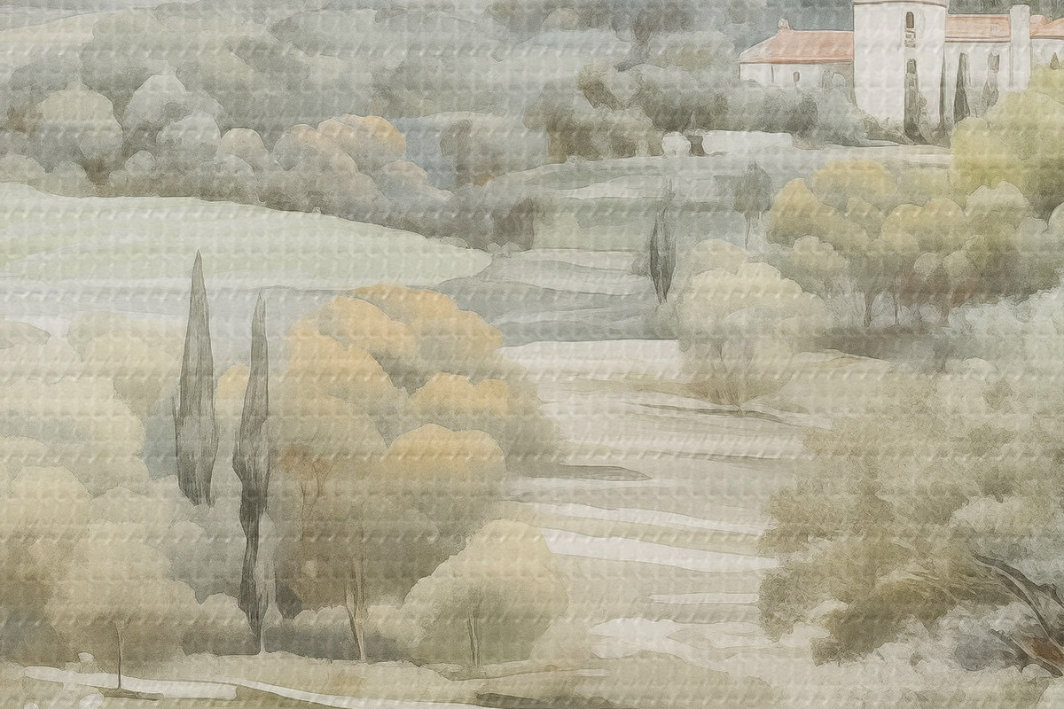 Attēls Dabas ziedi, maigas akvareļu krāsas, koki un ziedi, ezers Nr r41224