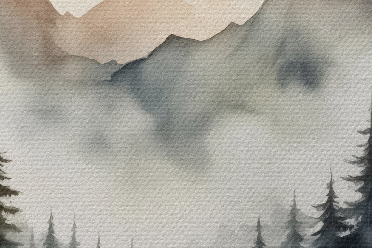 Attēls Mežs uz akvareļu kalnu fona Nr r41240