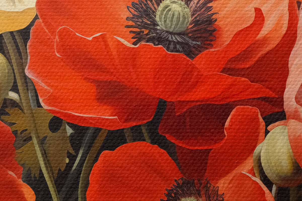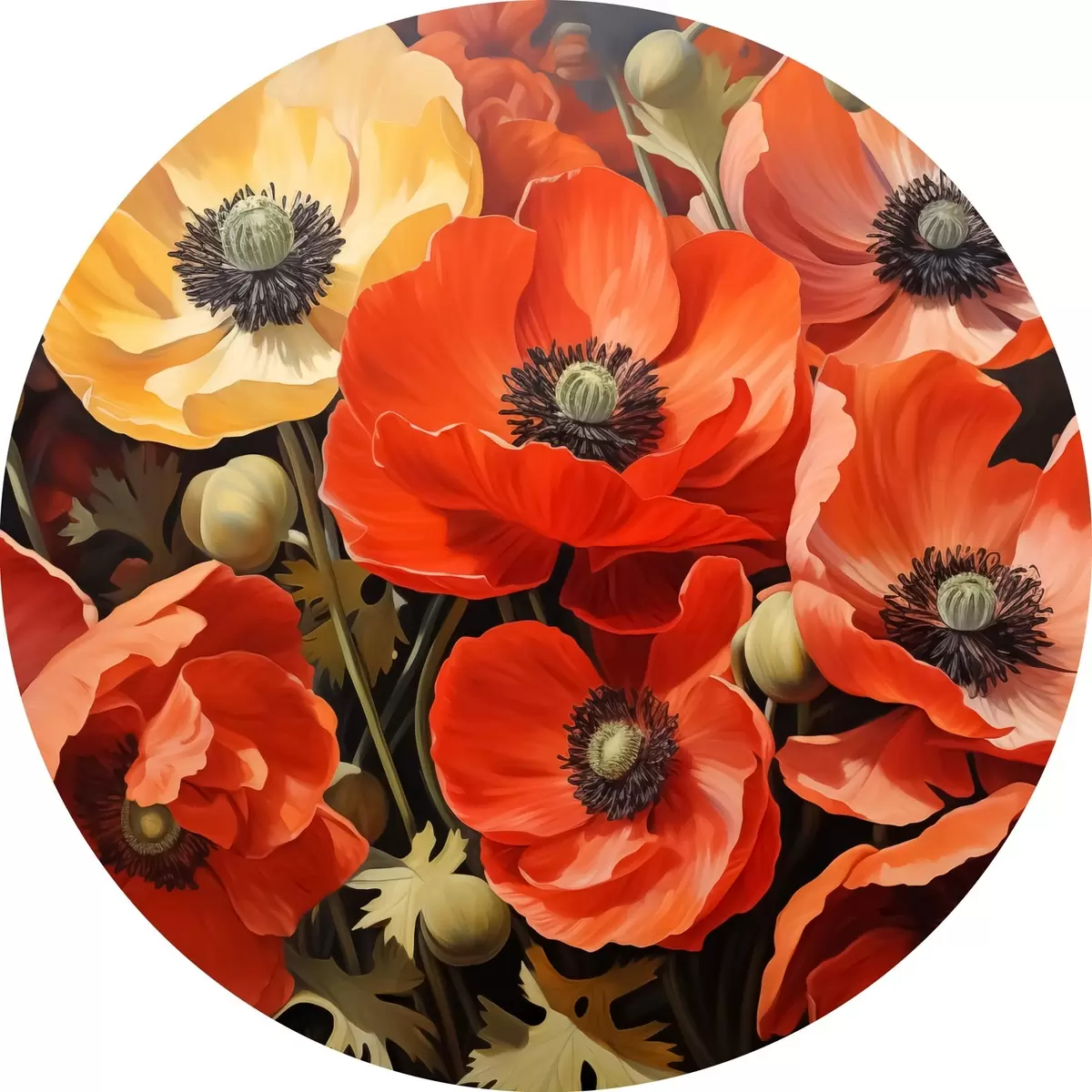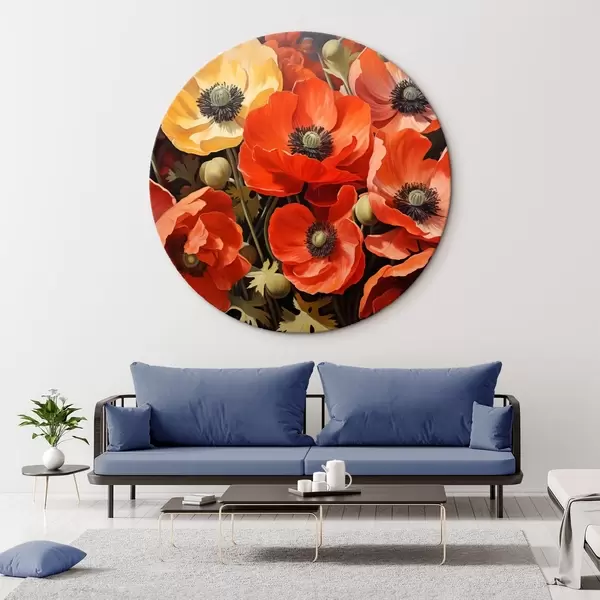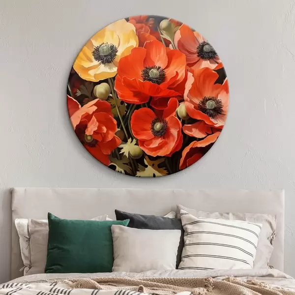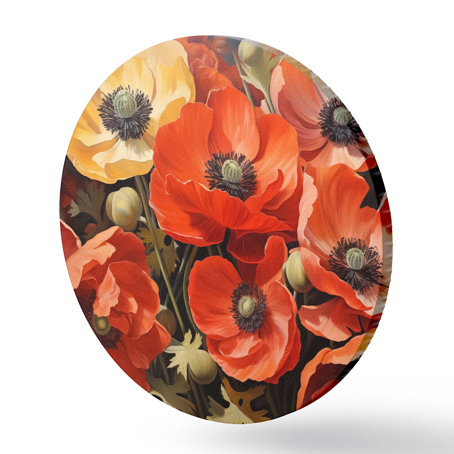 Apaļas gleznas Magones, sarkanas un oranžas r41243