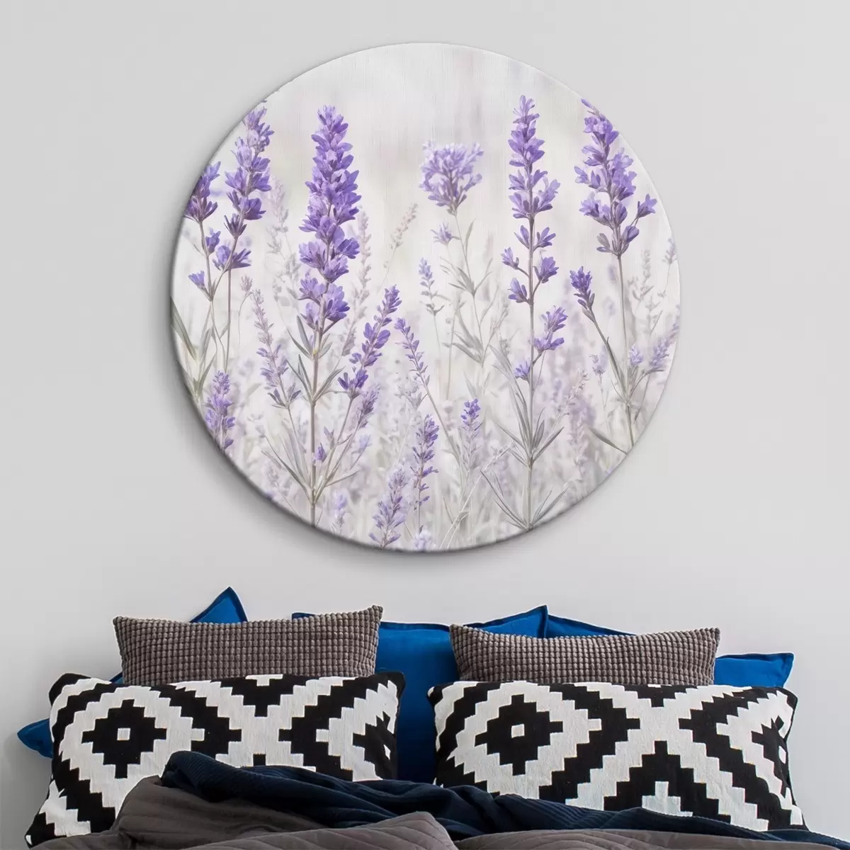Apaļas gleznas Violetu lavandas ziedu lauks uz izplūduša teksturēta fona r41265