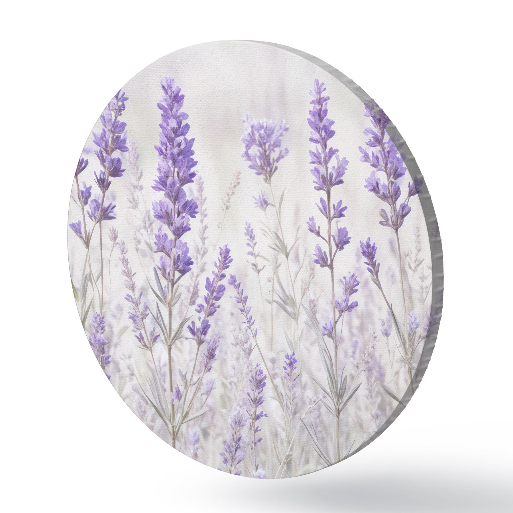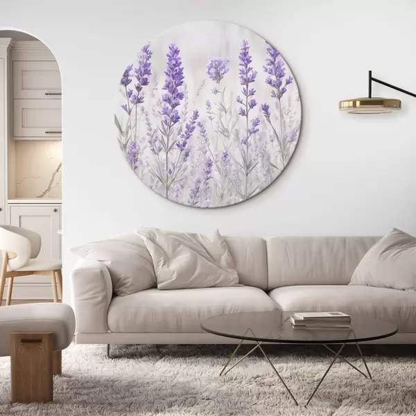 Apaļas gleznas Violetu lavandas ziedu lauks uz izplūduša teksturēta fona r41265