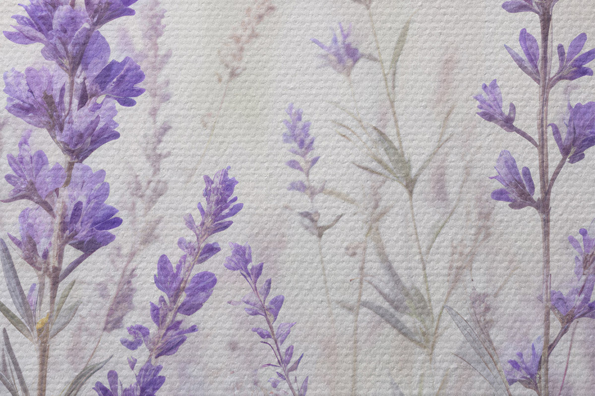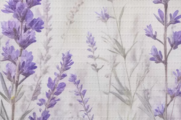 Attēls Violetu lavandas ziedu lauks uz izplūduša teksturēta fona Nr r41265