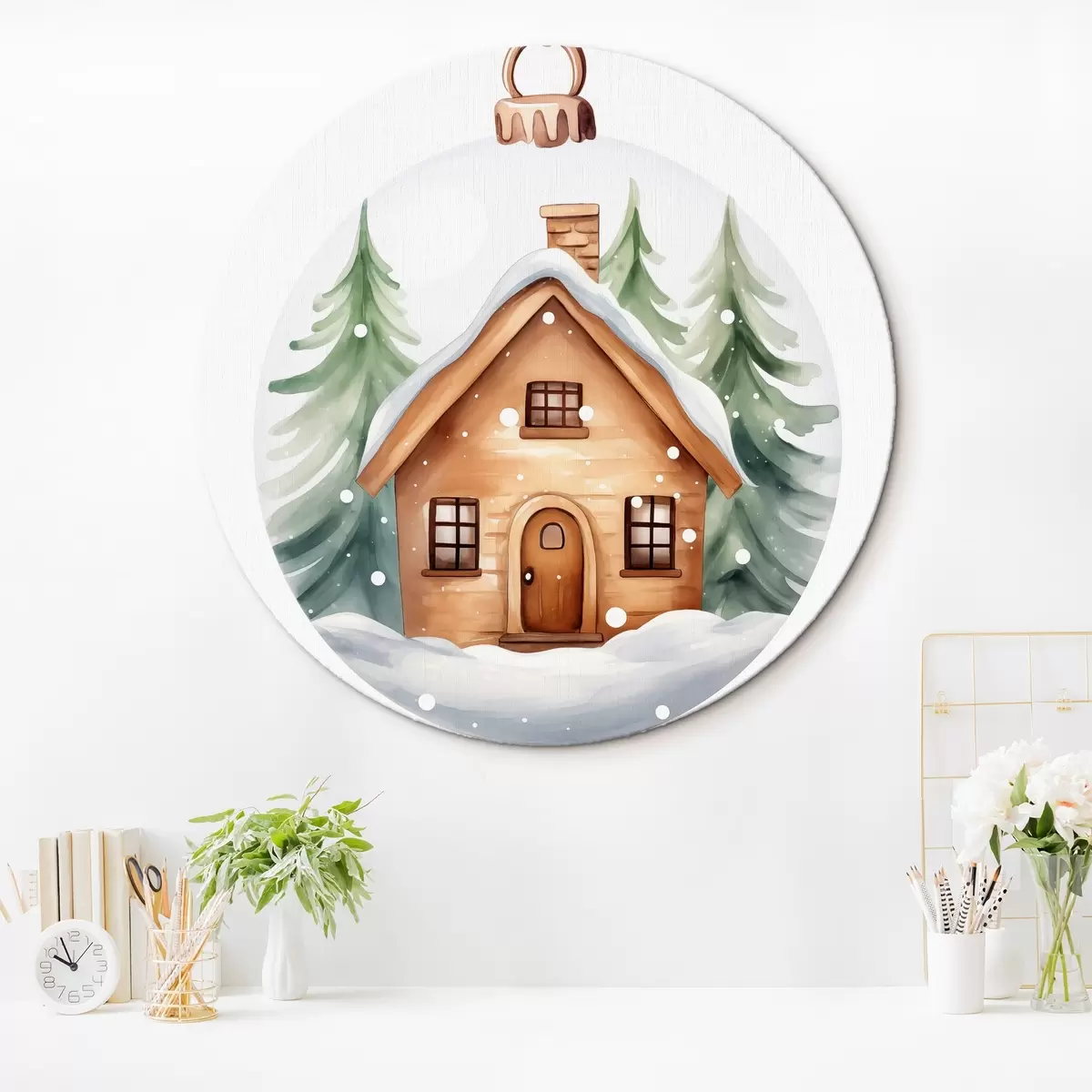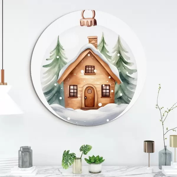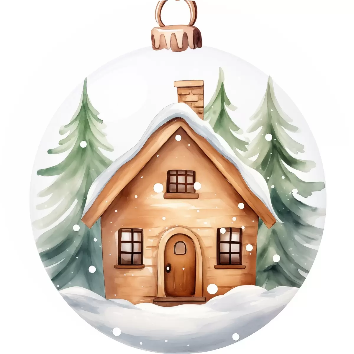Attēls Kristāla bumba ar akvareļu māju sniegā, priedes Nr r41362