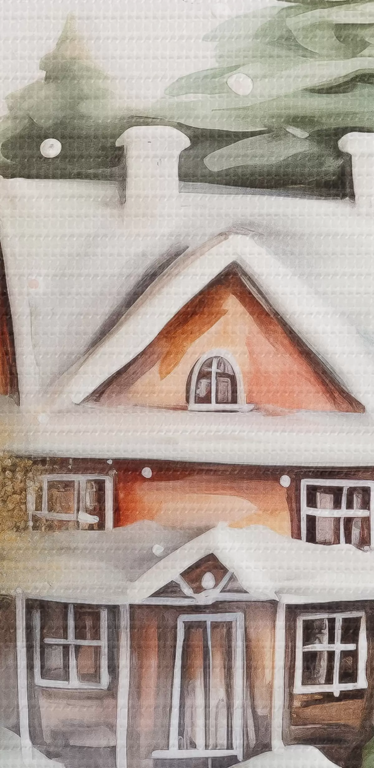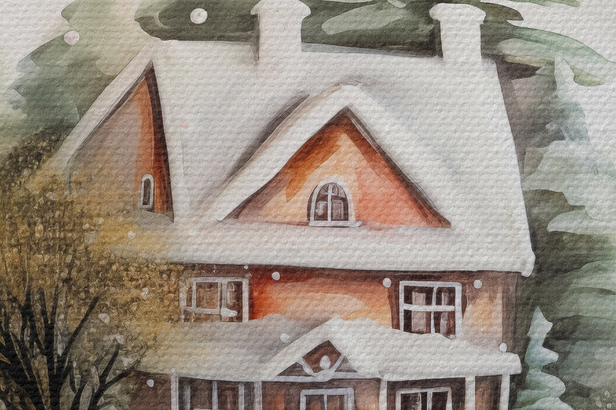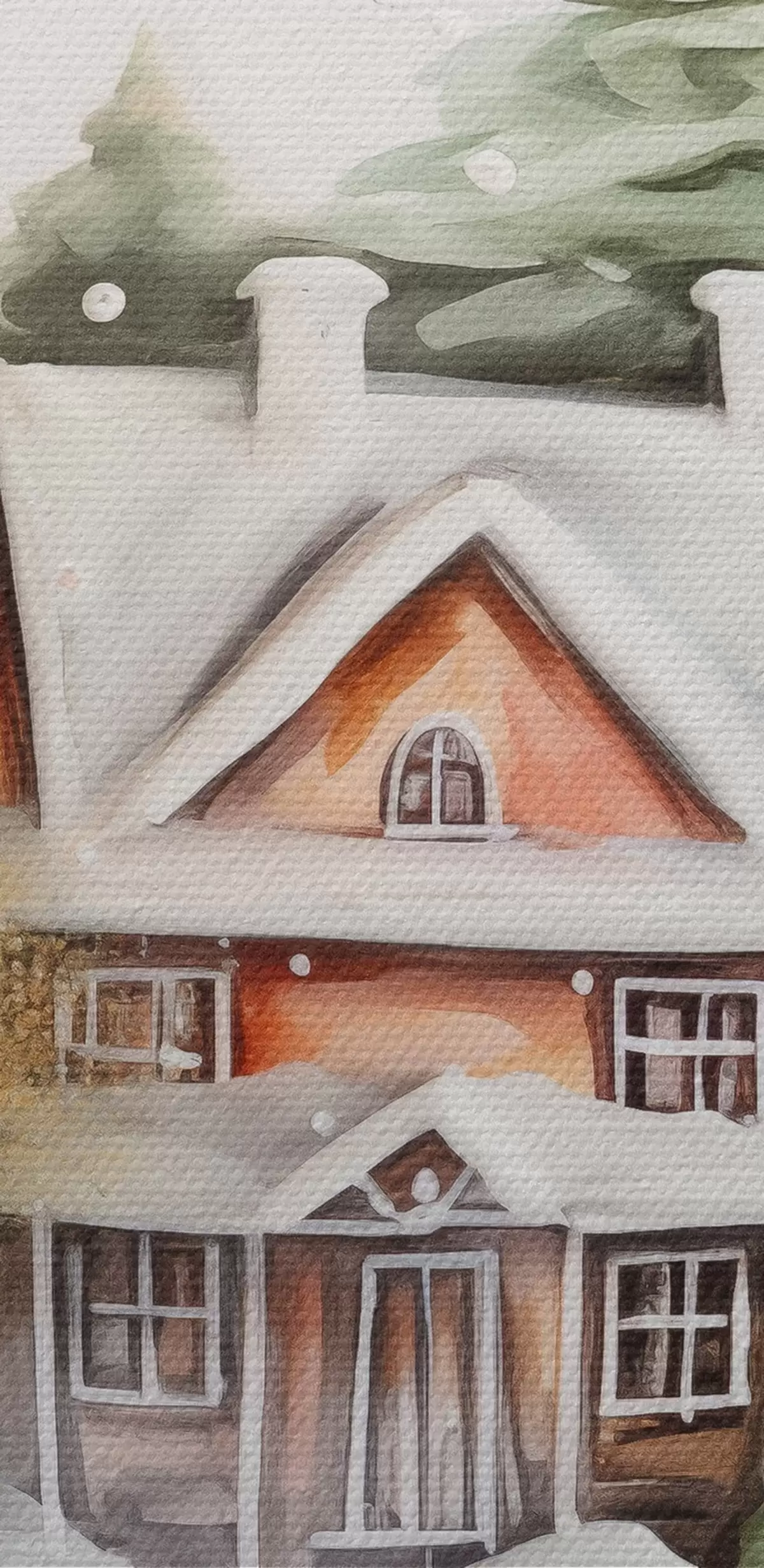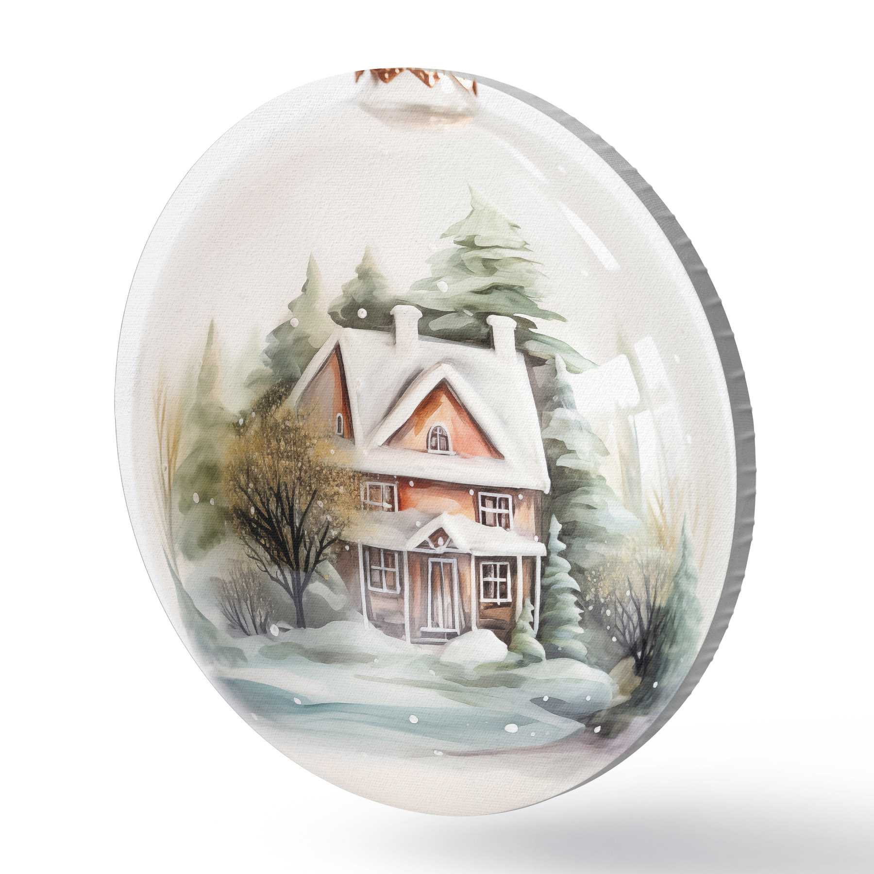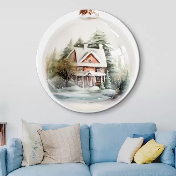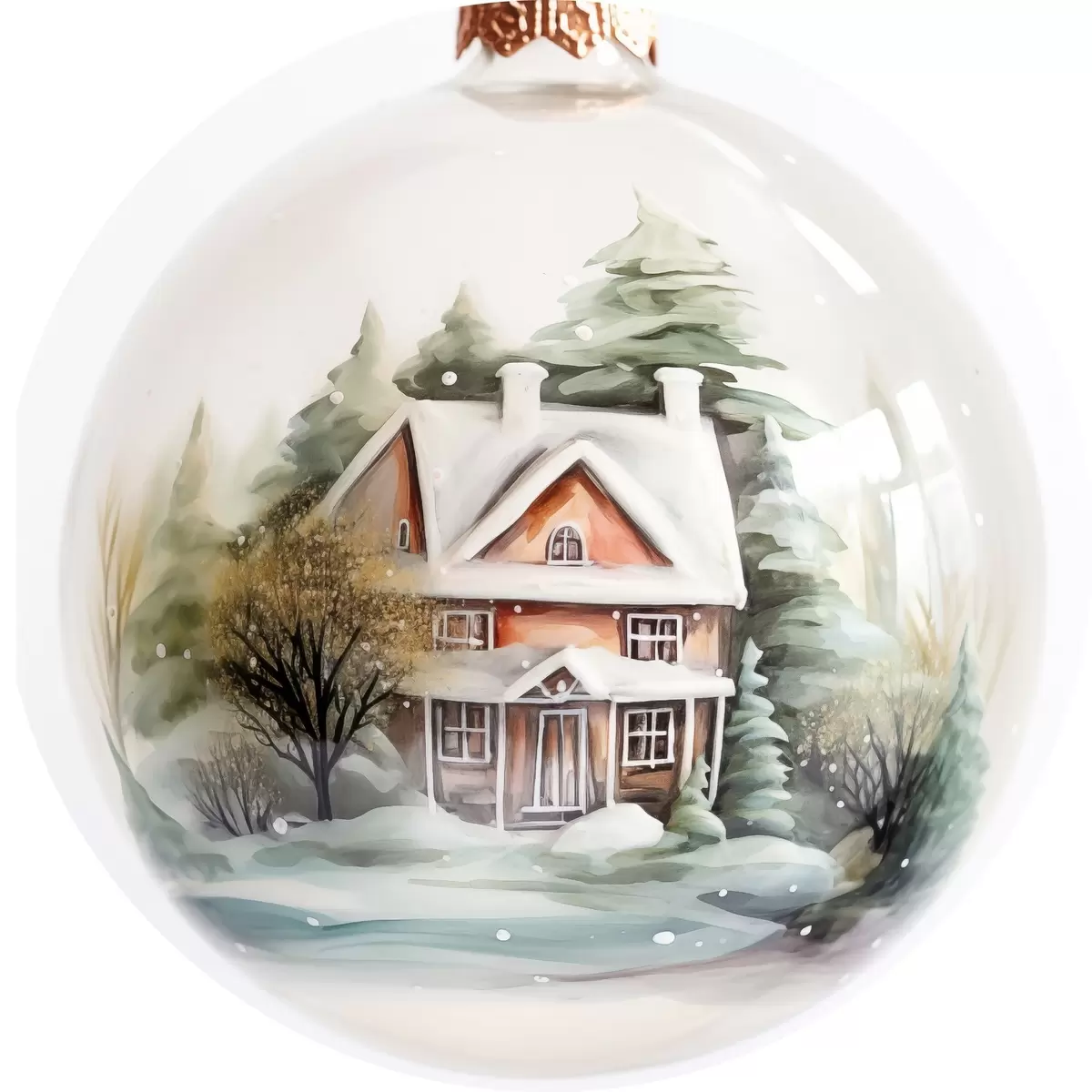 Attēls Kristāla bumba ar akvareļu māju un kokiem sniegā Nr r41365