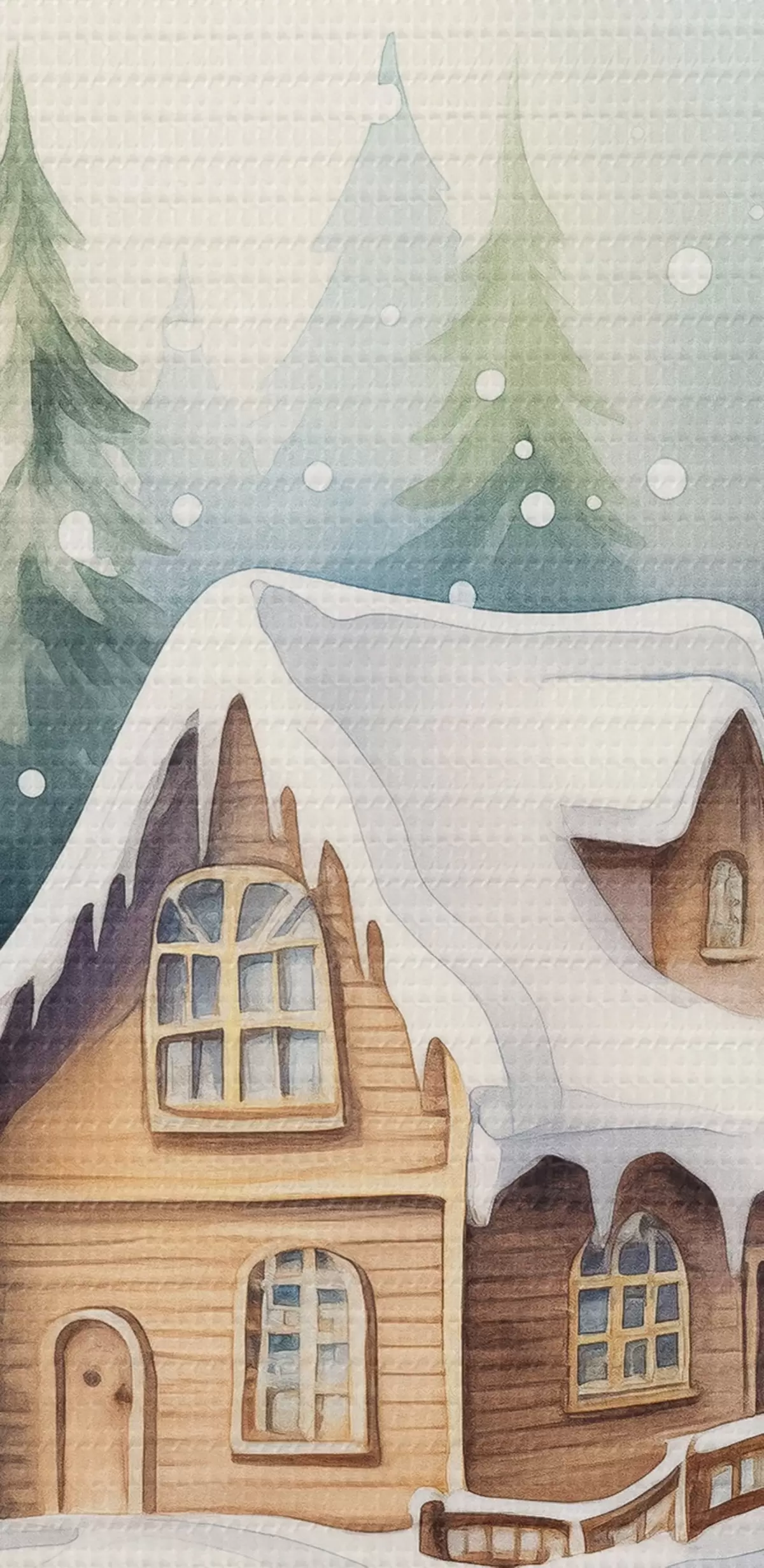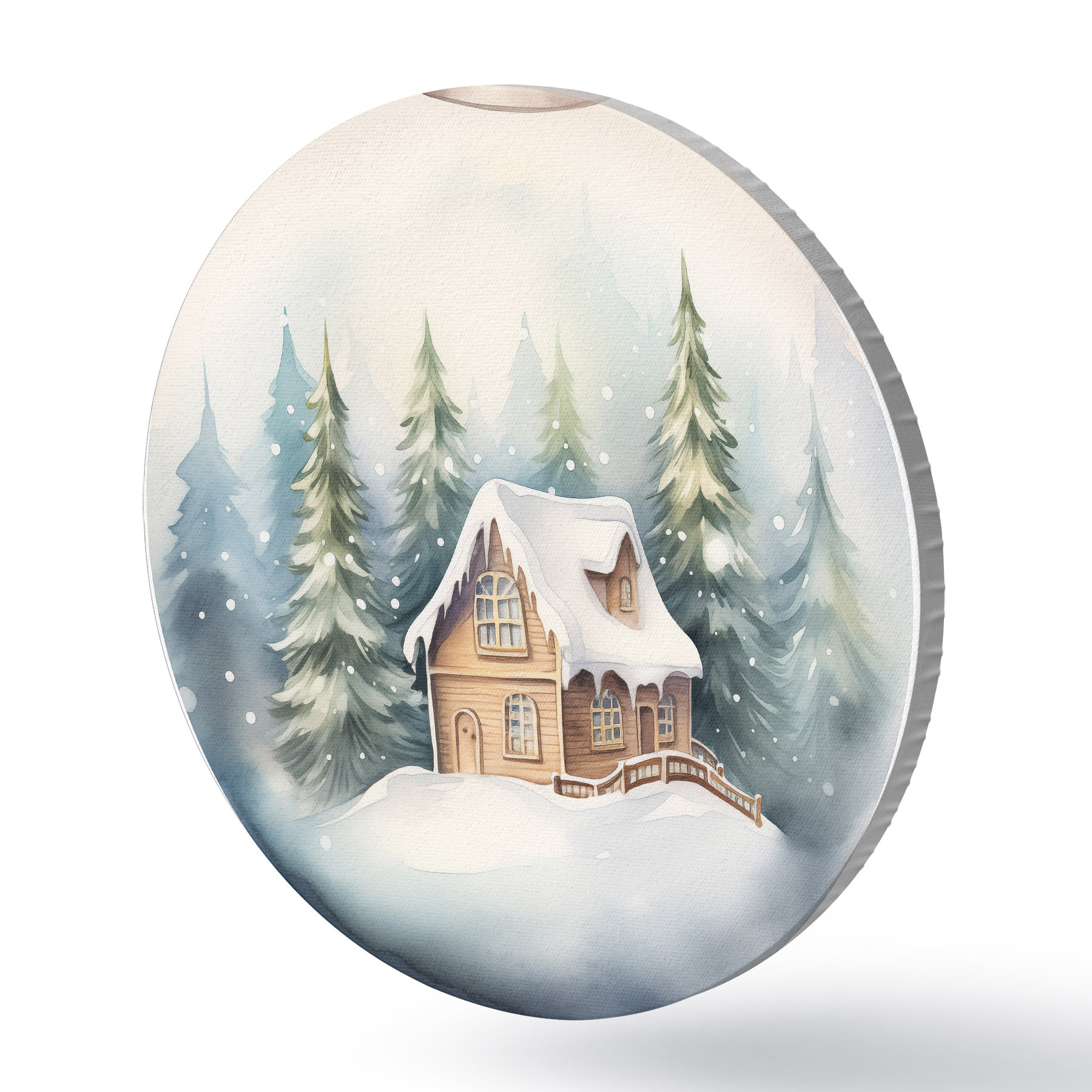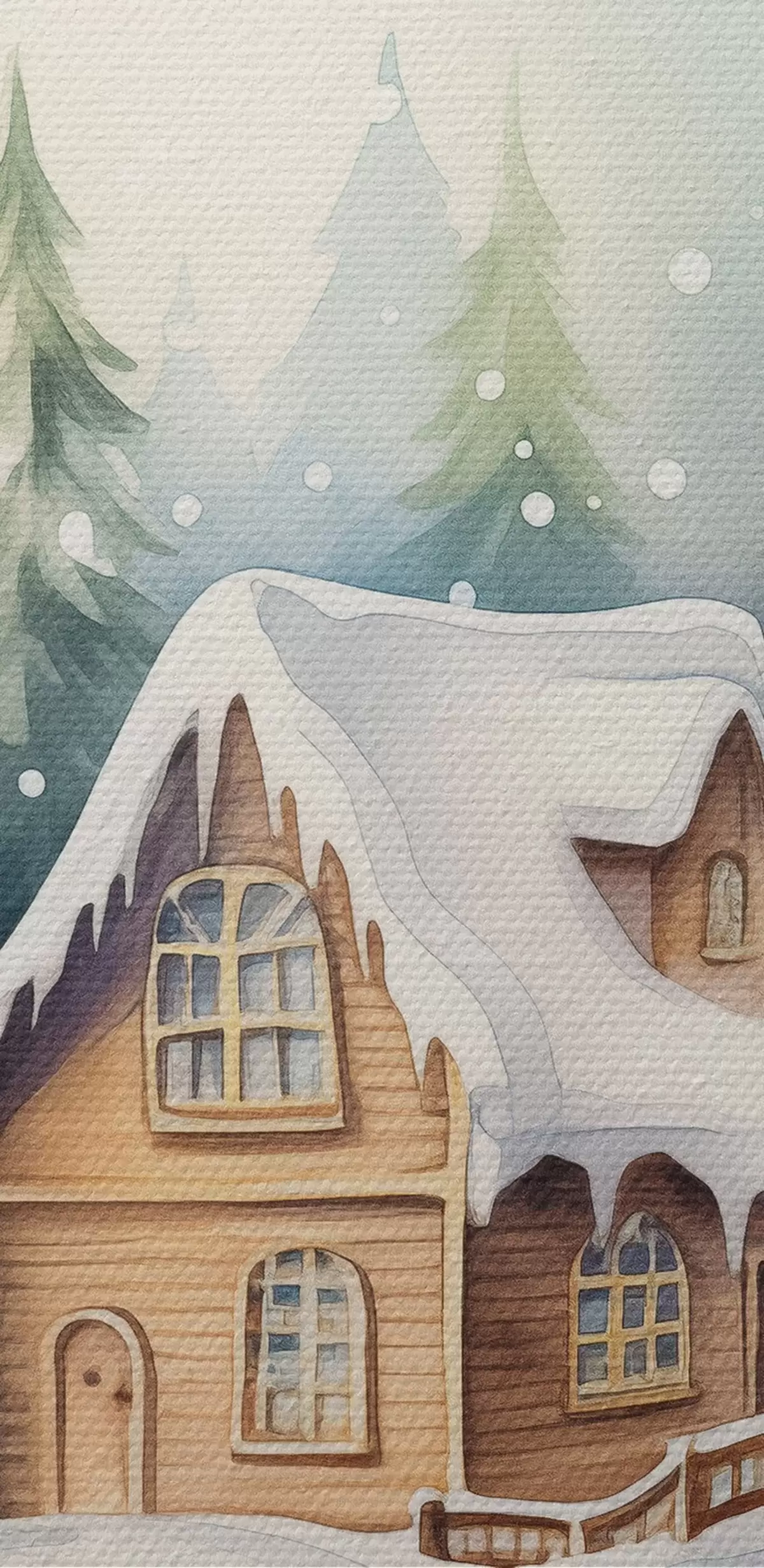 Attēls Akvareļu kristāla bumba ar ziemas ainavu, māja mežā, sniegs Nr r41366