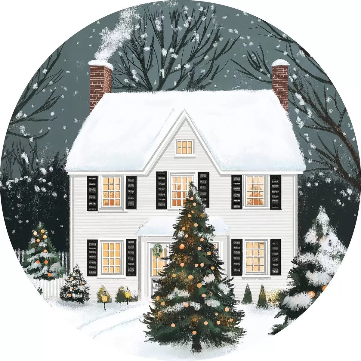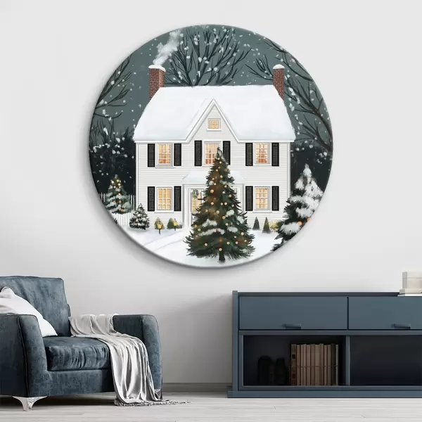 Attēls Ziemas brīnumu zeme, māja, priedes, lauku, ziemas ainava, mežs Nr r41370