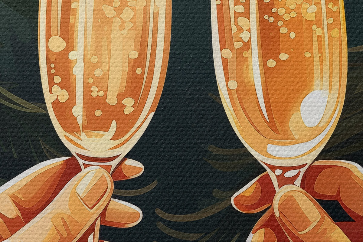 Attēls Svētki, šampanieša glāzes, Ziemassvētki, eglīte, sveces, Ziemassvētku gaismiņas, Ziemassvētku apgaismojums Nr r41373