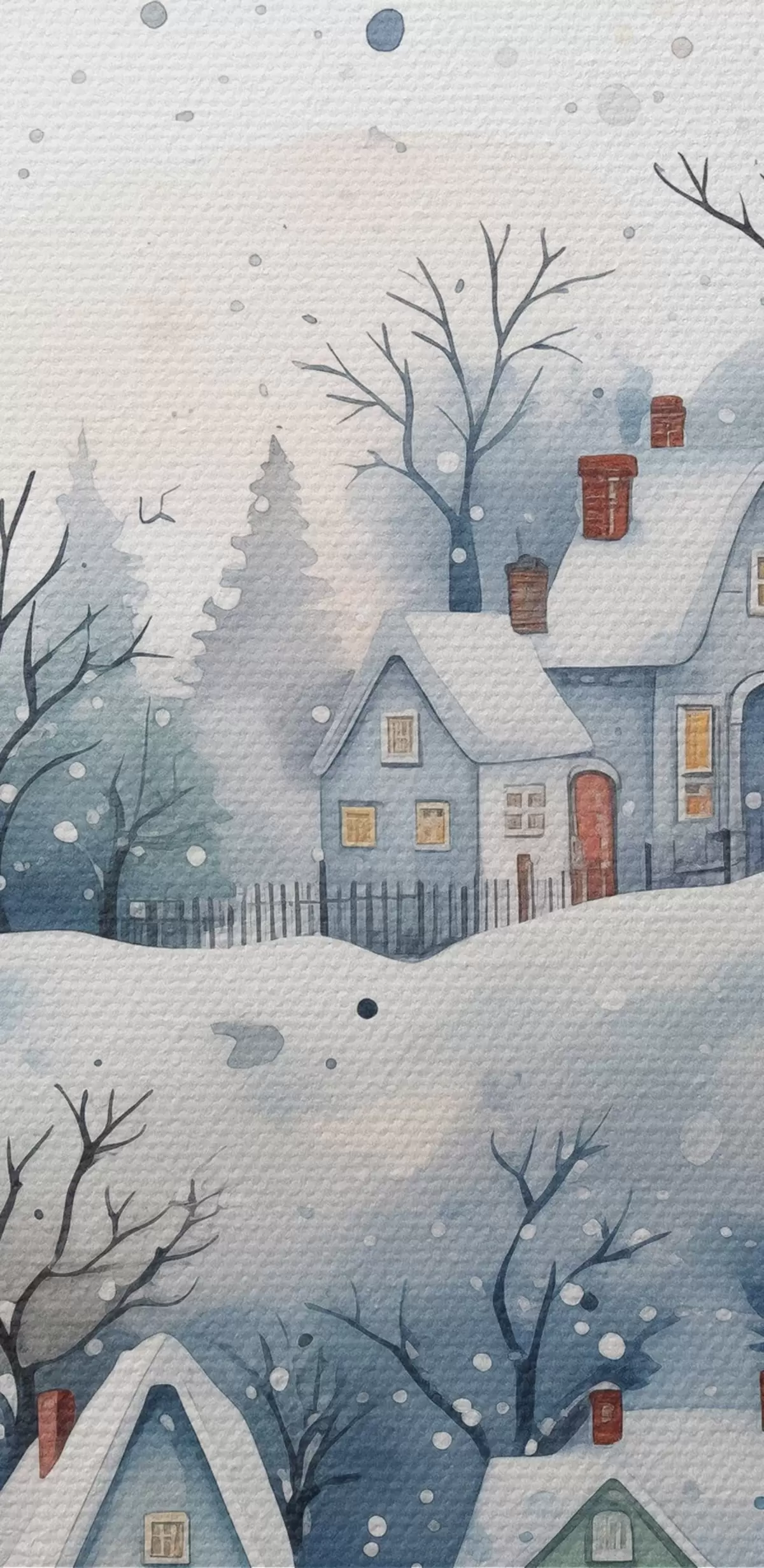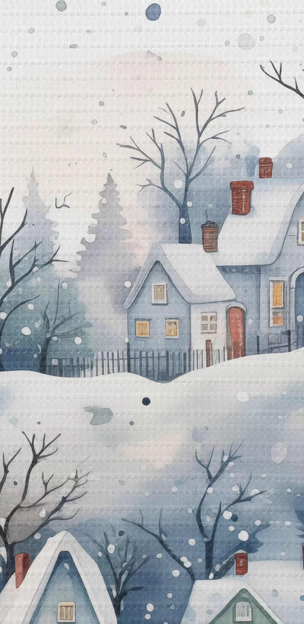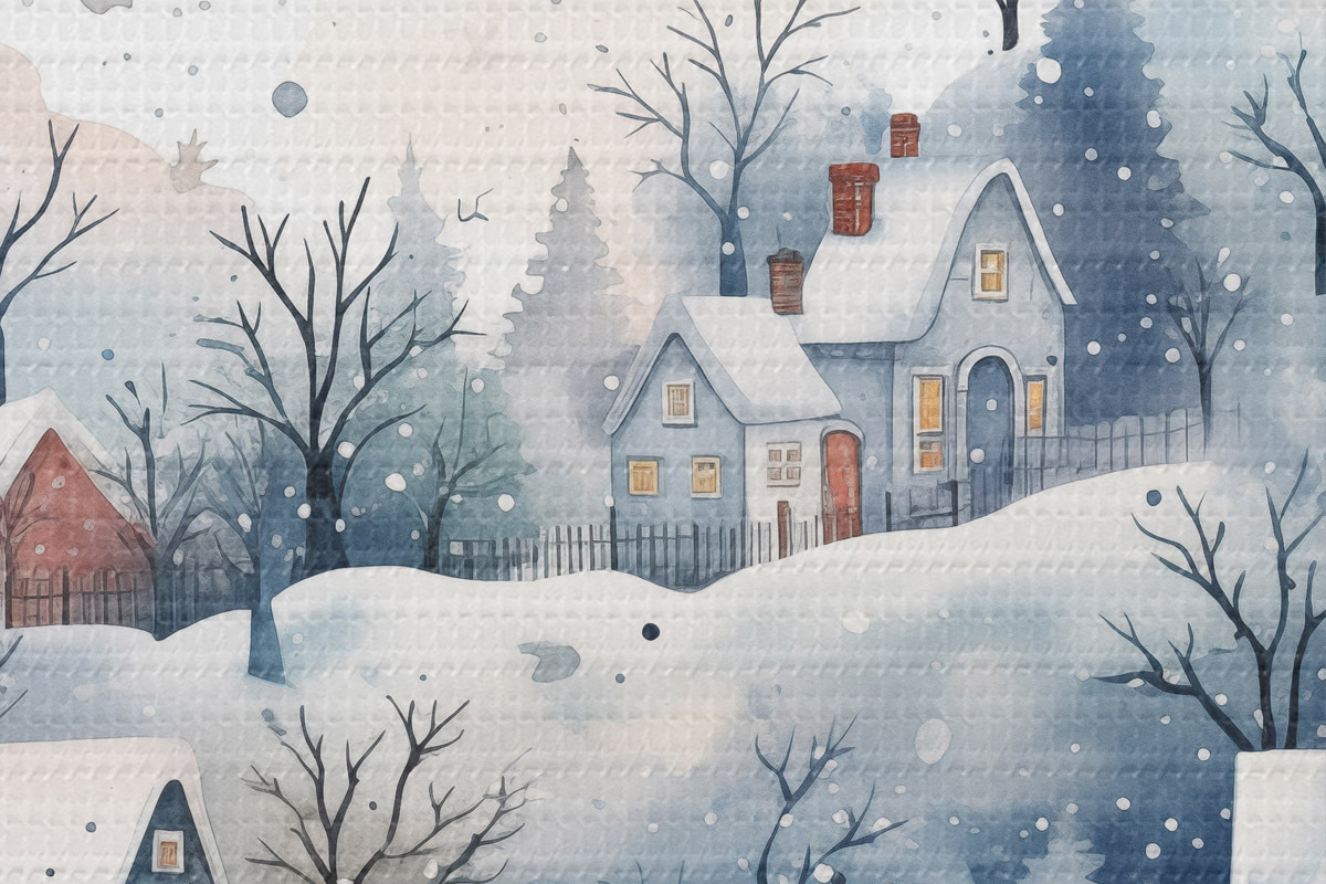Attēls Akvareļu ziemas ainava ar mājām un priežu mežu Nr r41389