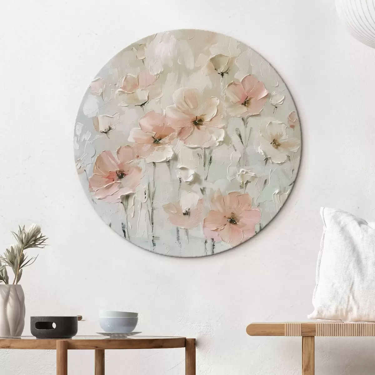 Apaļas gleznas Rozā ziedi jaunā stila tendence r41401