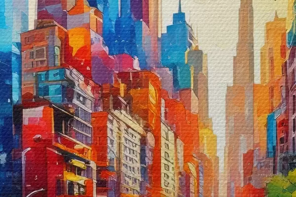 Apaļas gleznas spilgta pilsēta r41408