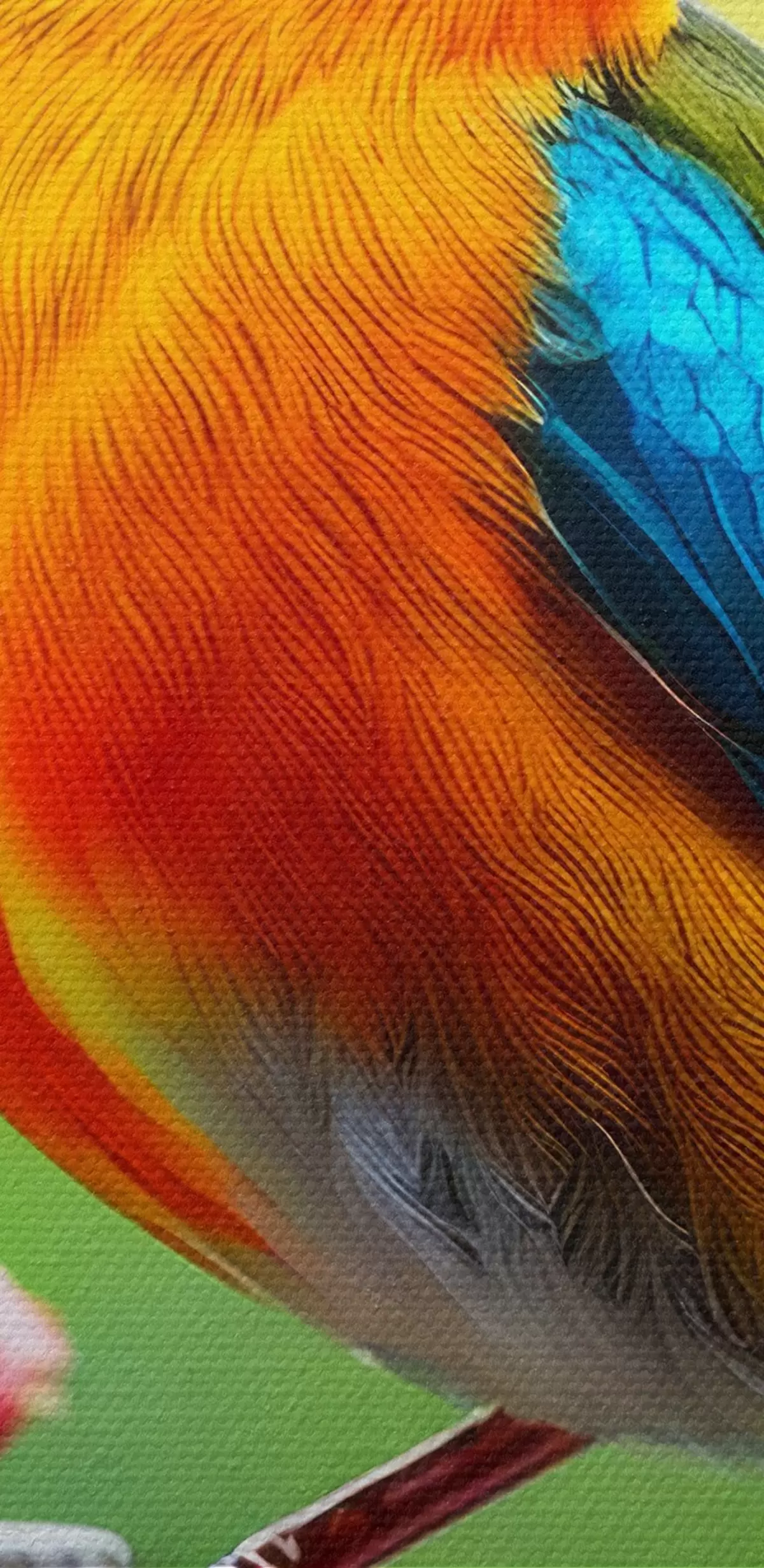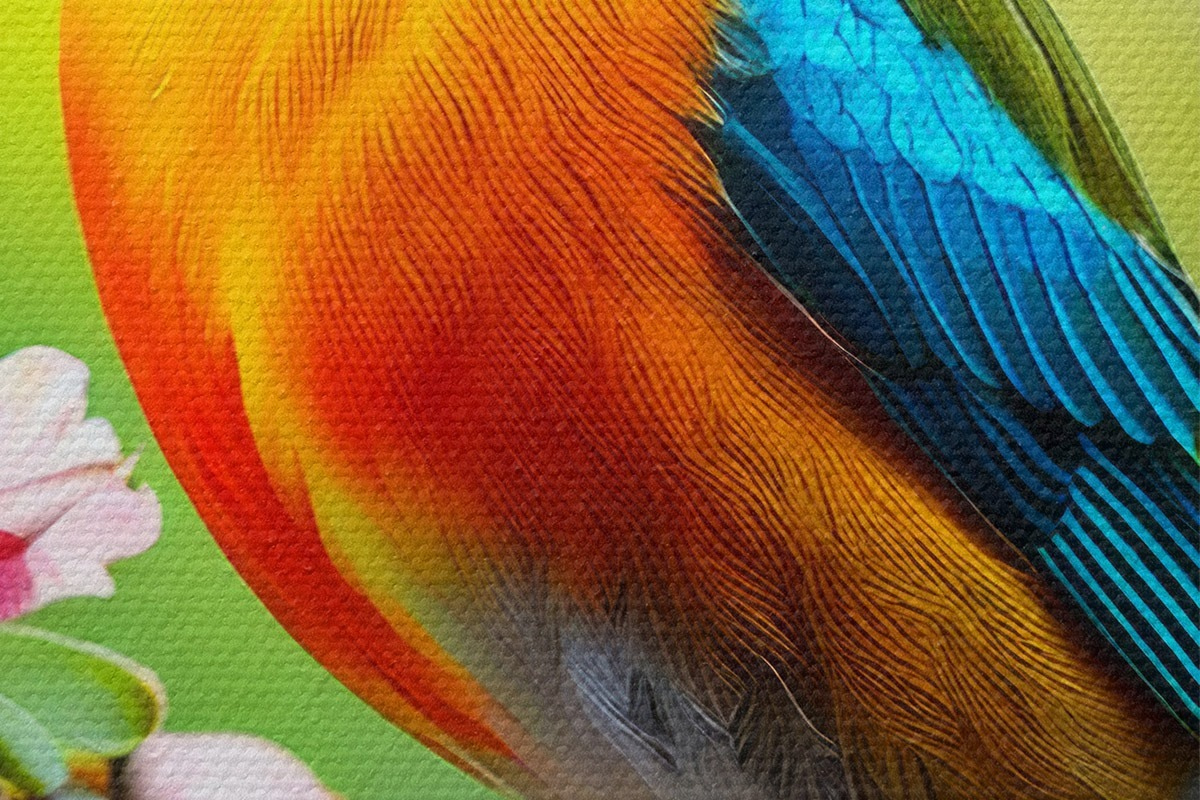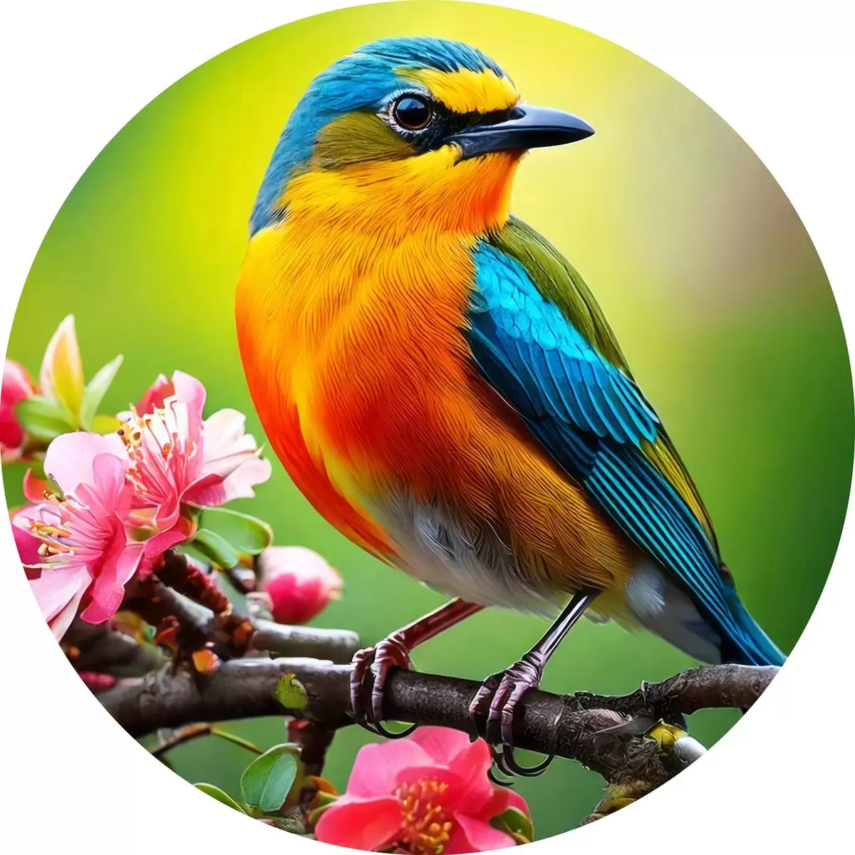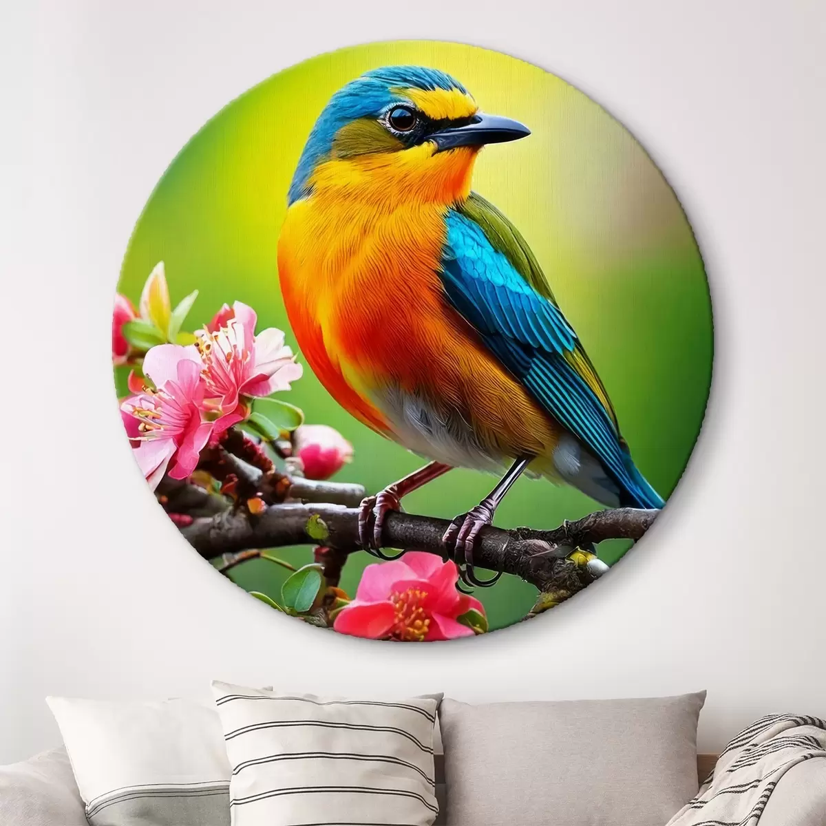 Attēls spilgts putns uz zara ar ziediem Nr r41412