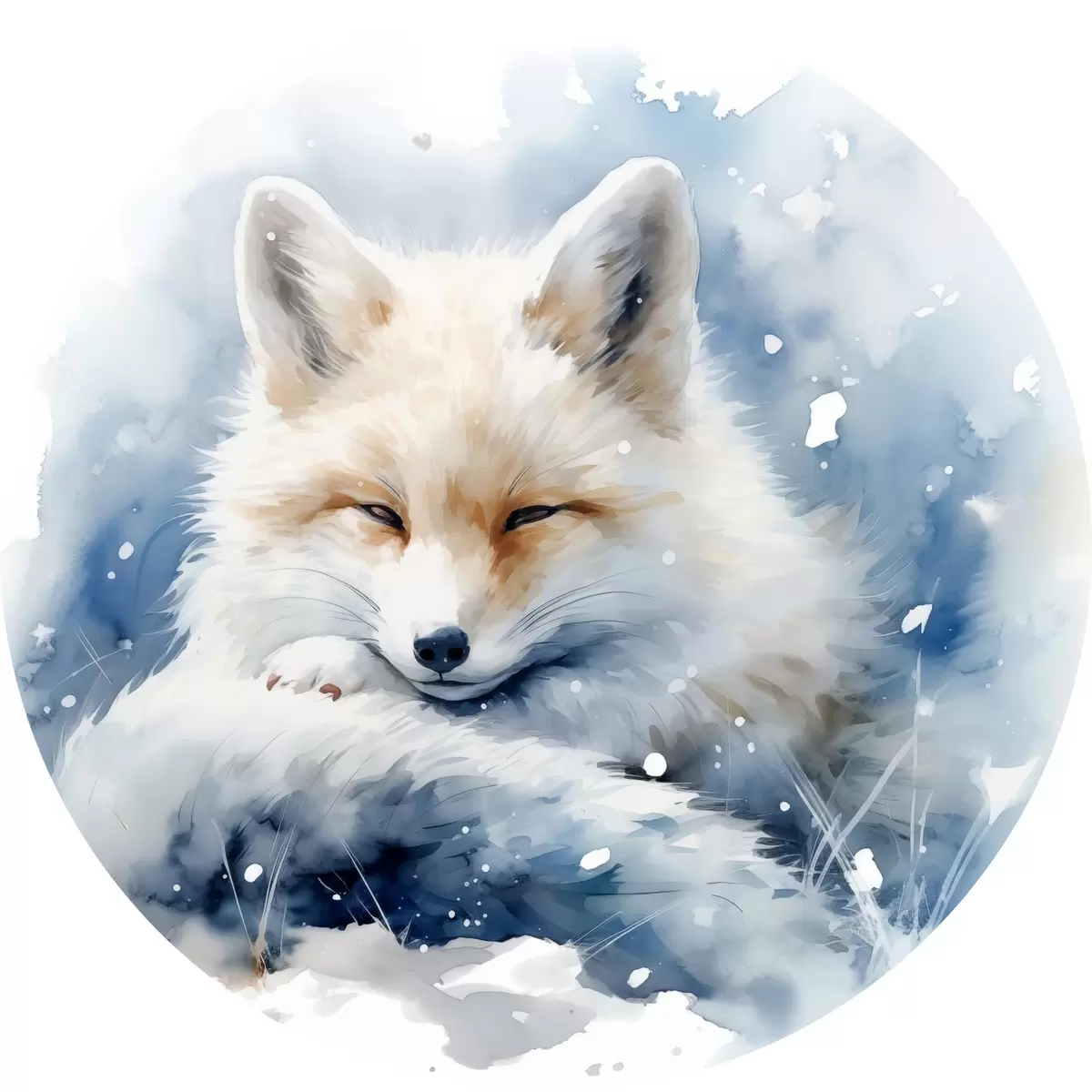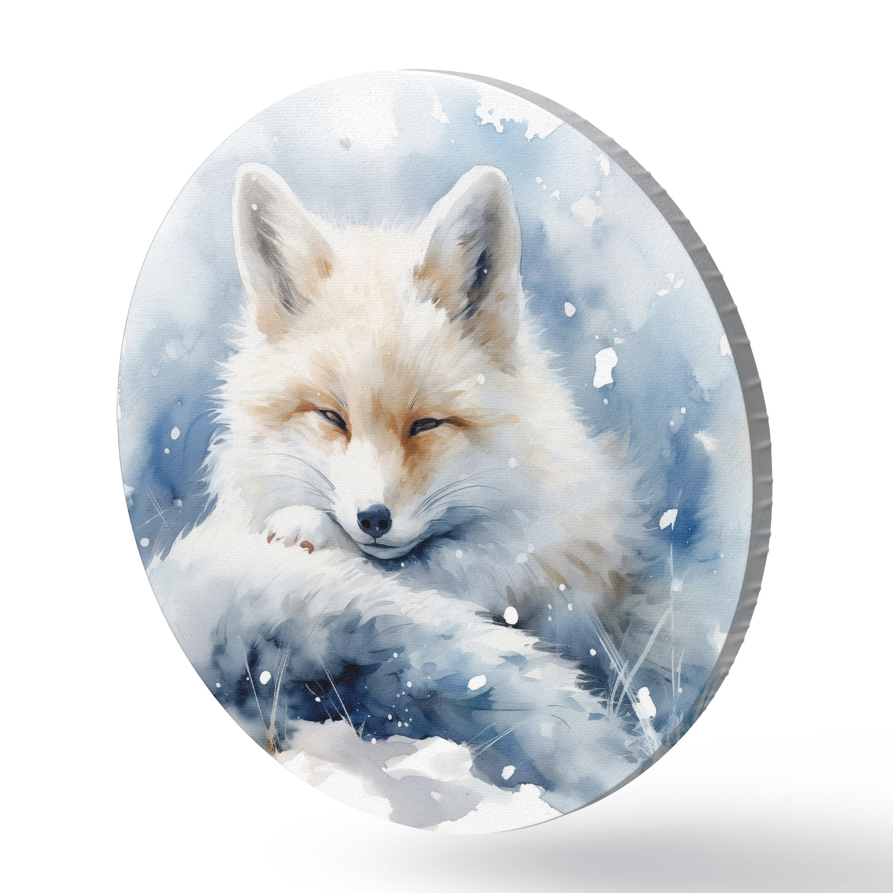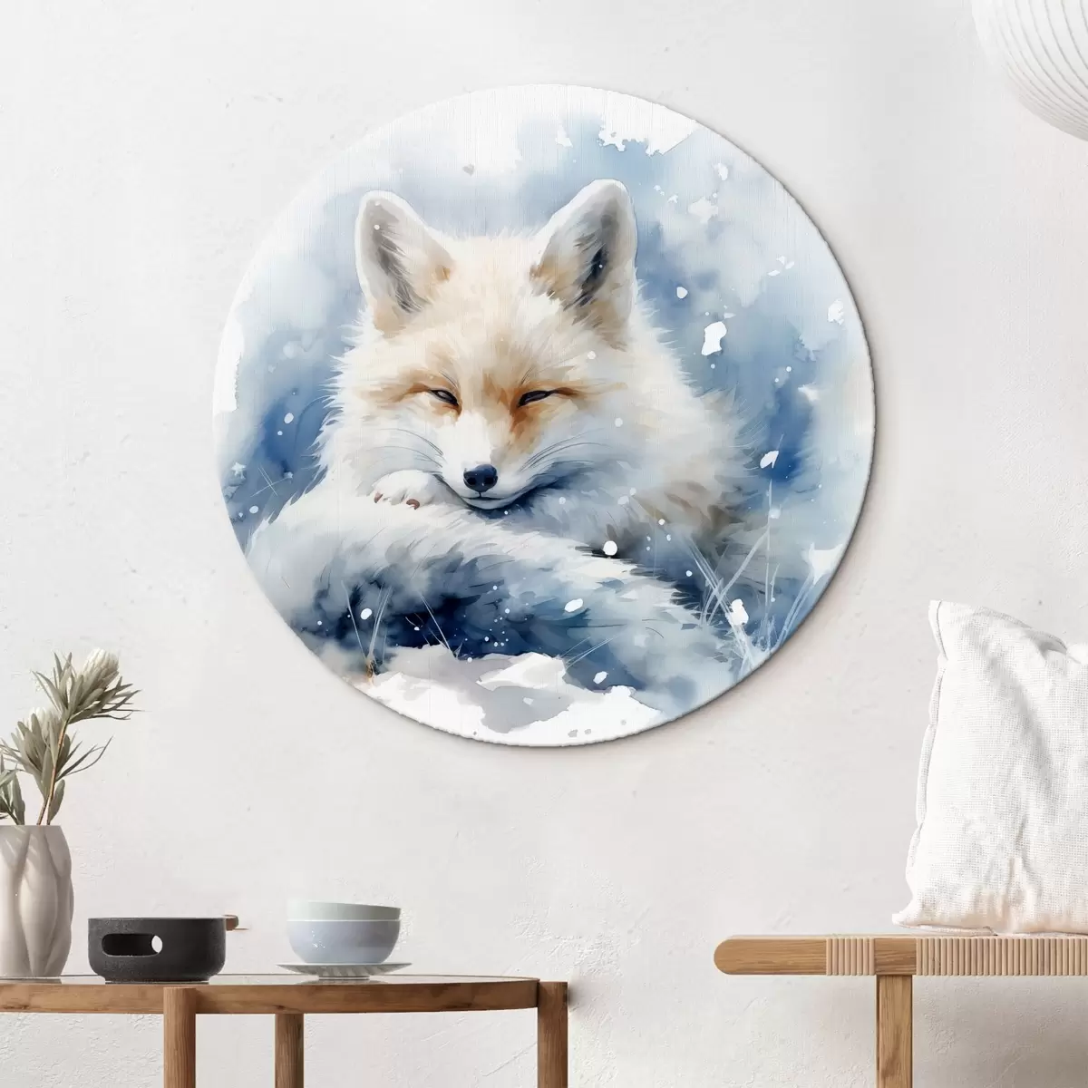 Apaļas gleznas Lapsa sniegā imitācija akvareļu ilustrācija r41436