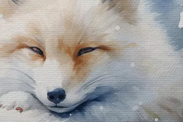Attēls Lapsa sniegā imitācija akvareļu ilustrācija Nr r41436