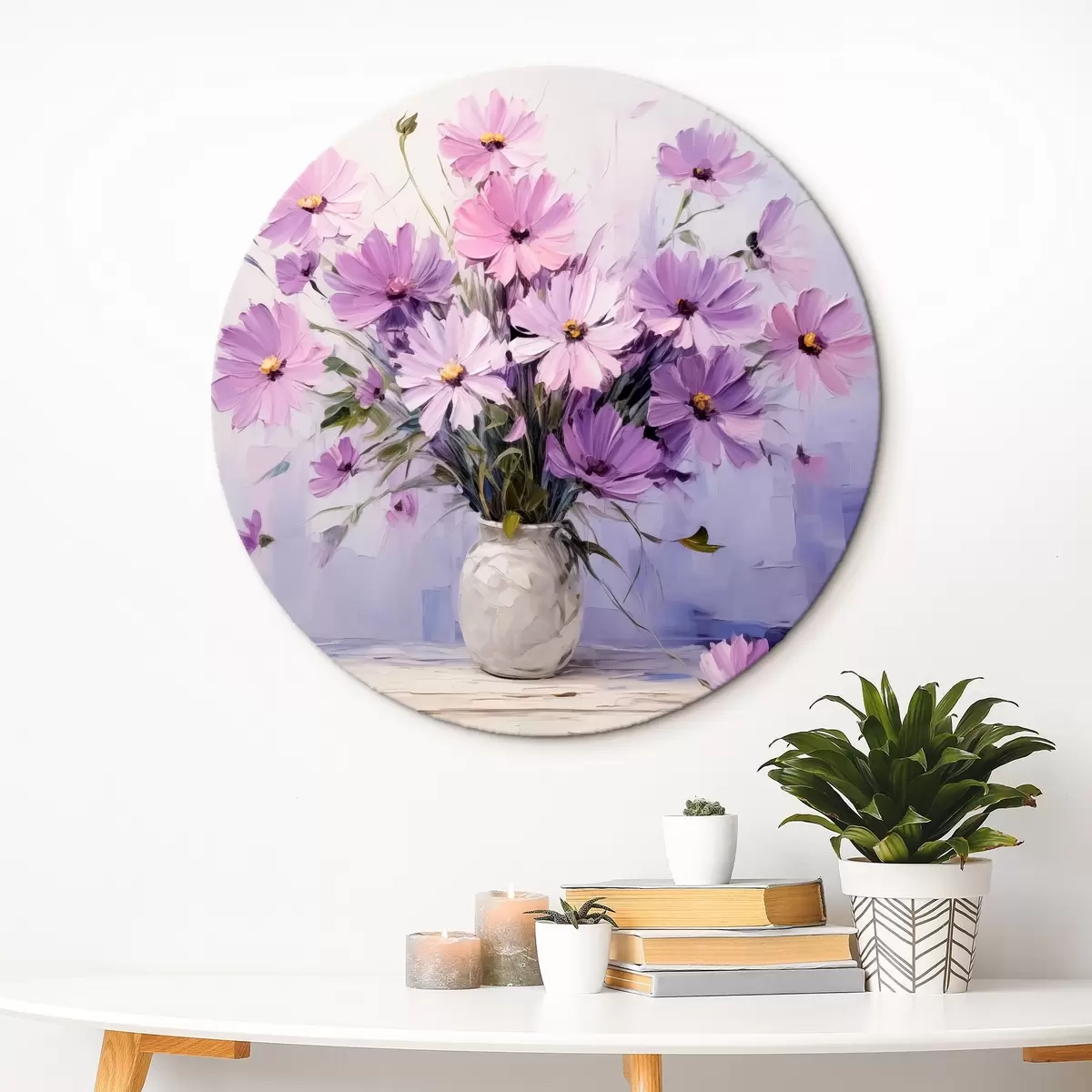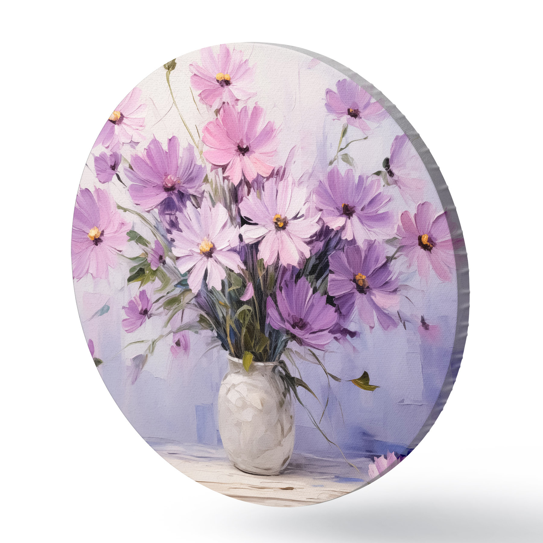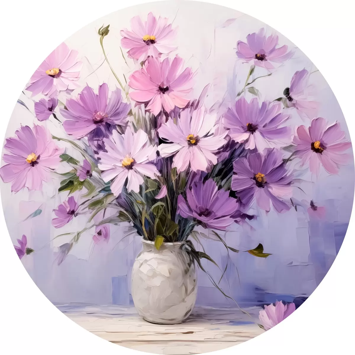 Apaļas gleznas Smalki violeti ziedi vāzē r41475