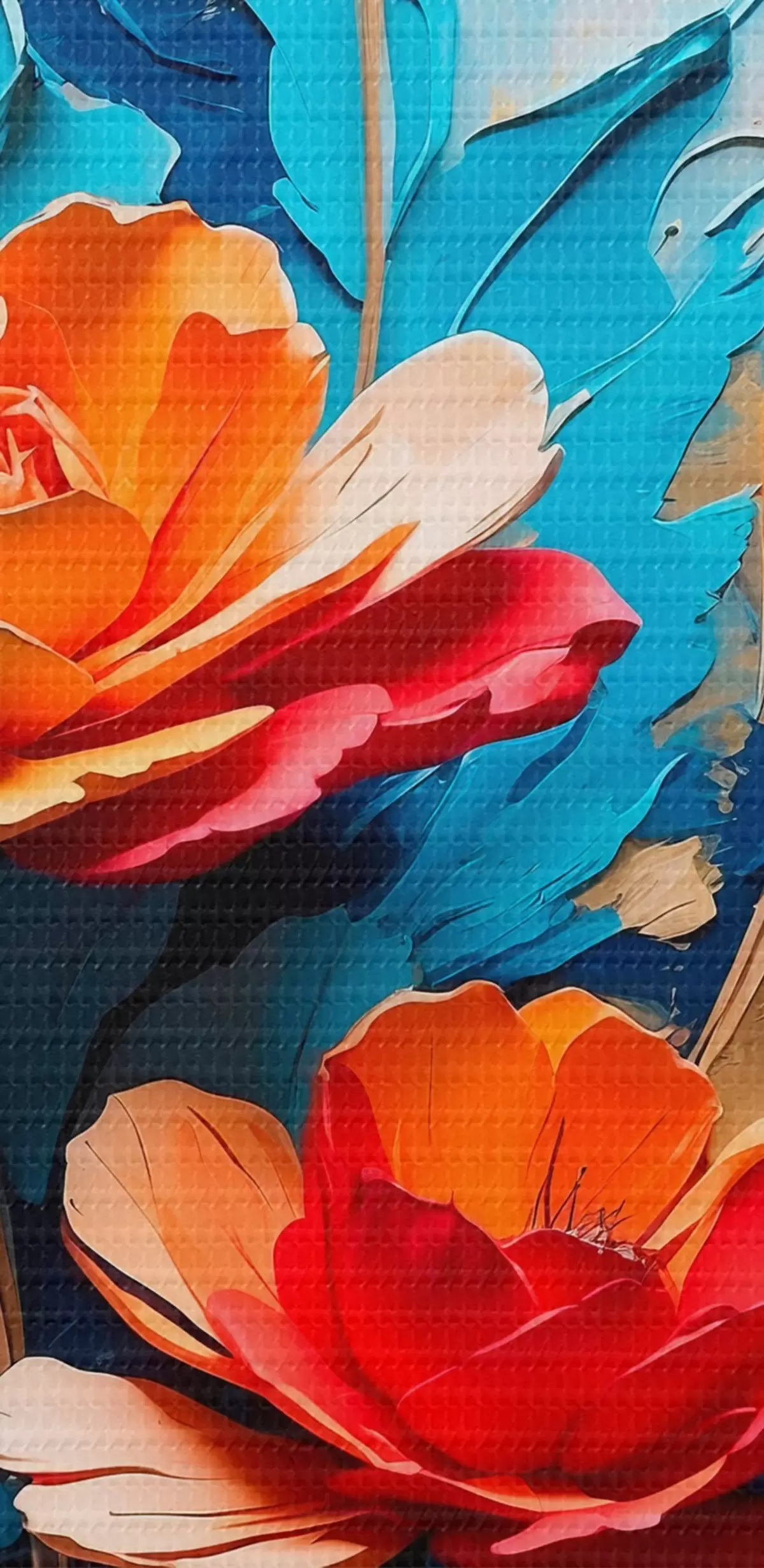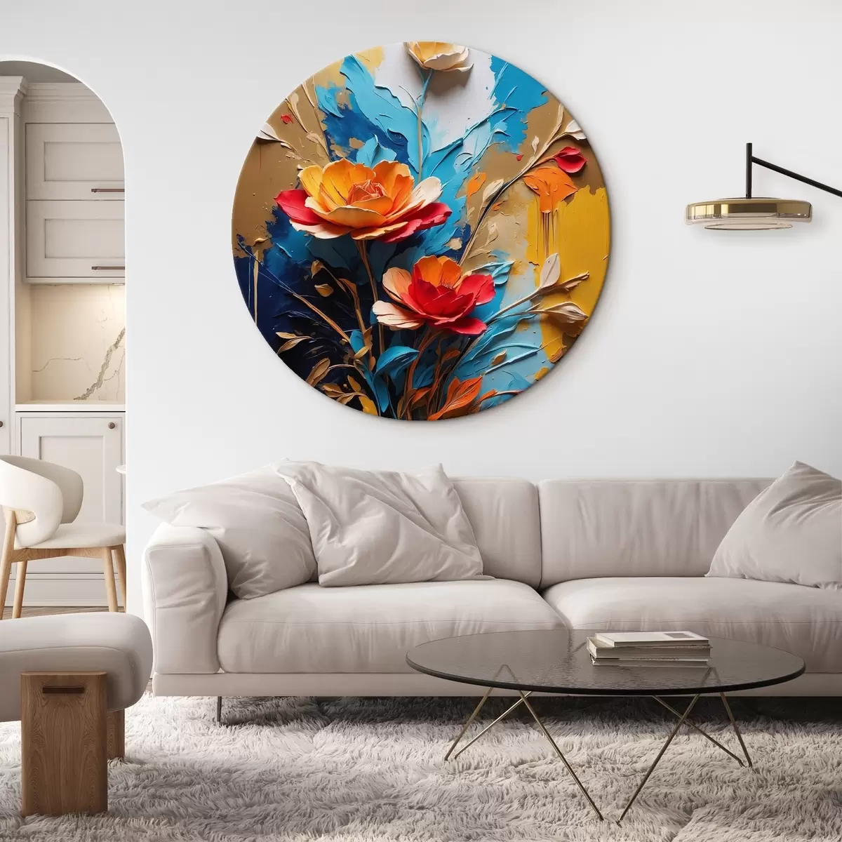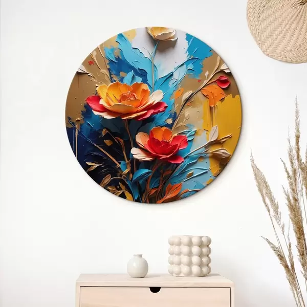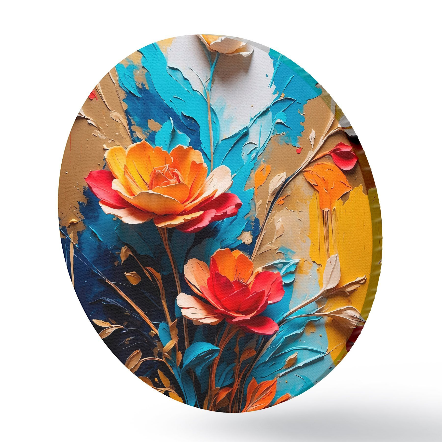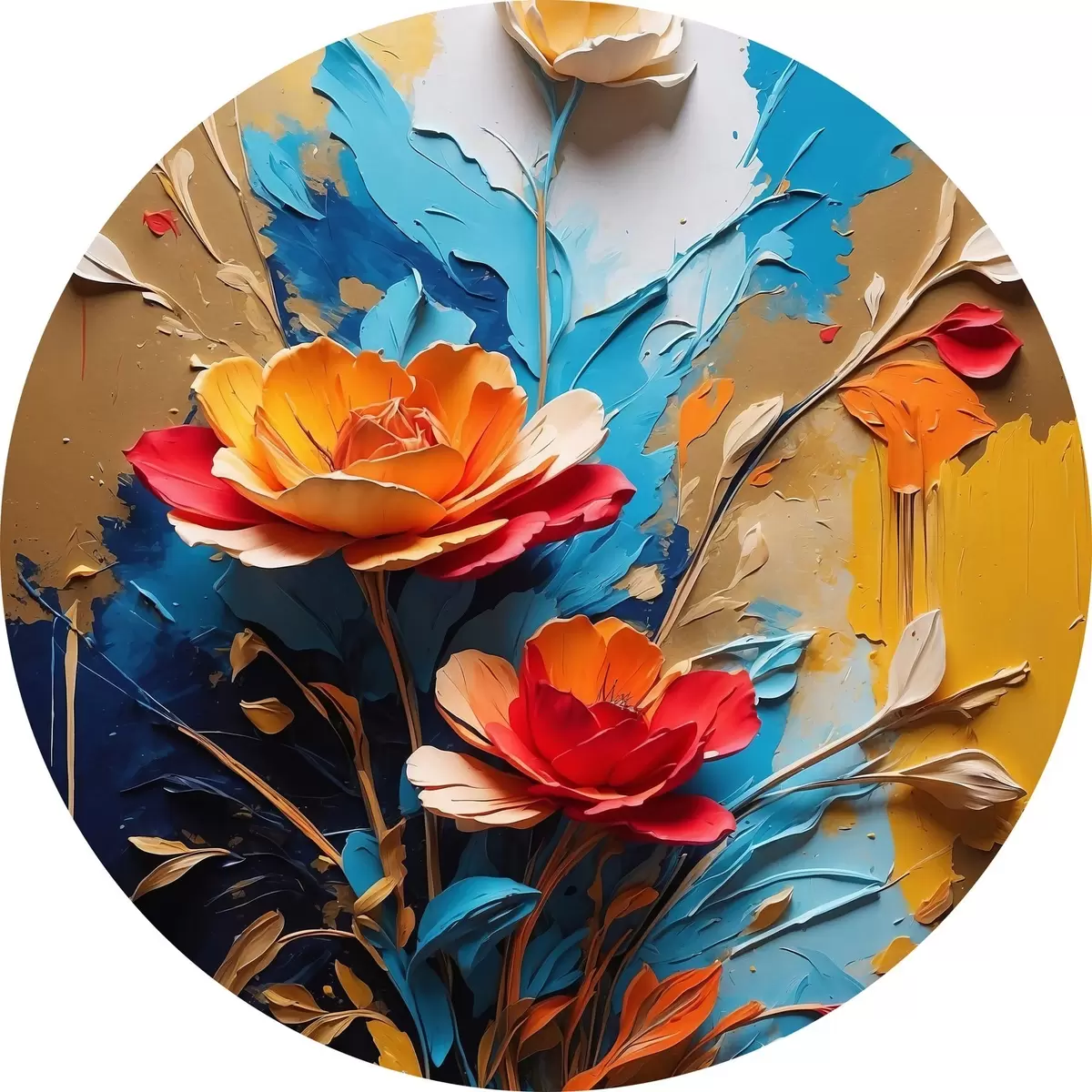 Apaļas gleznas Ziedi uz abstrakta daudzkrāsaina fona eļļas gleznošanas stilā r41769