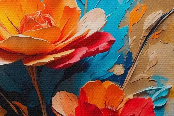 Attēls Ziedi uz abstrakta daudzkrāsaina fona eļļas gleznošanas stilā Nr r41769