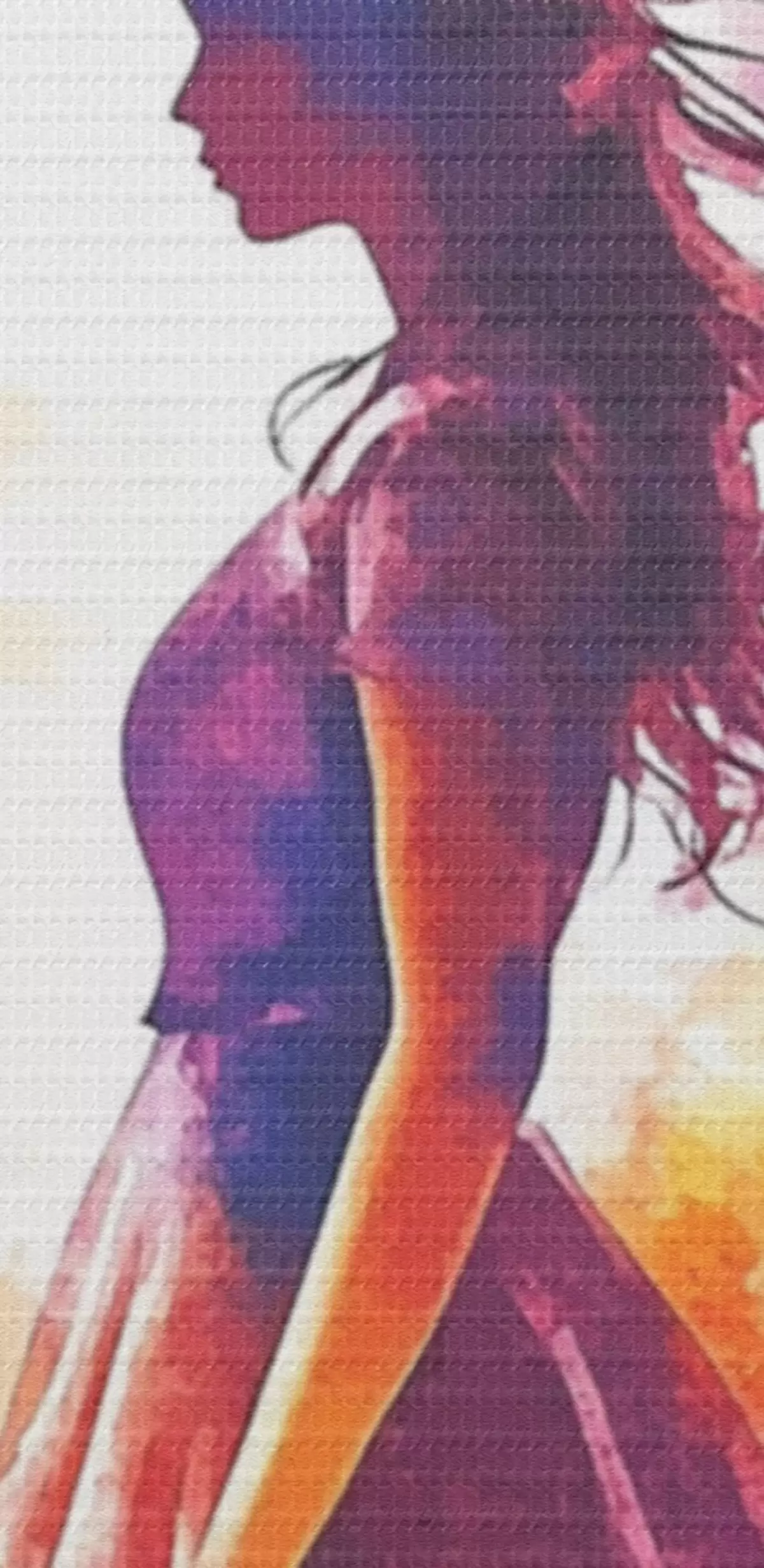 Smalkais diegu pinums uz šī audekla atgādina profesionālu mākslinieku audeklu virsmu.