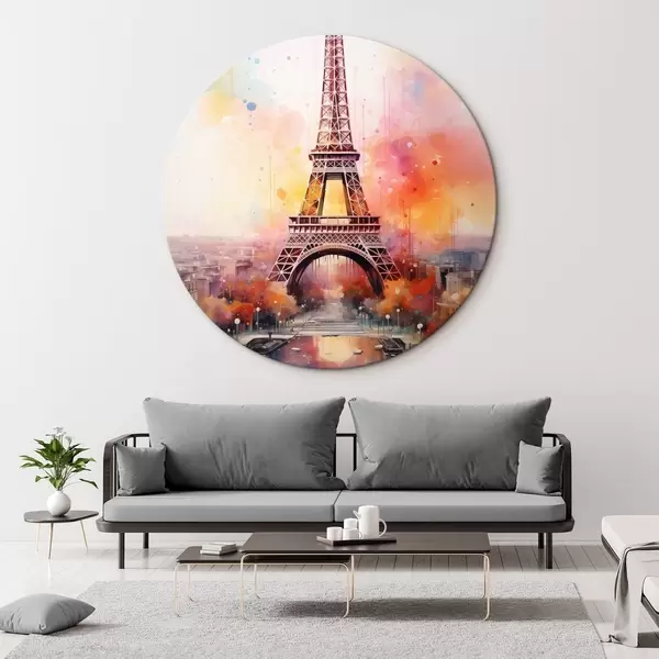 Apaļas gleznas Parīze uz akvareļu šļakatu fona r42081