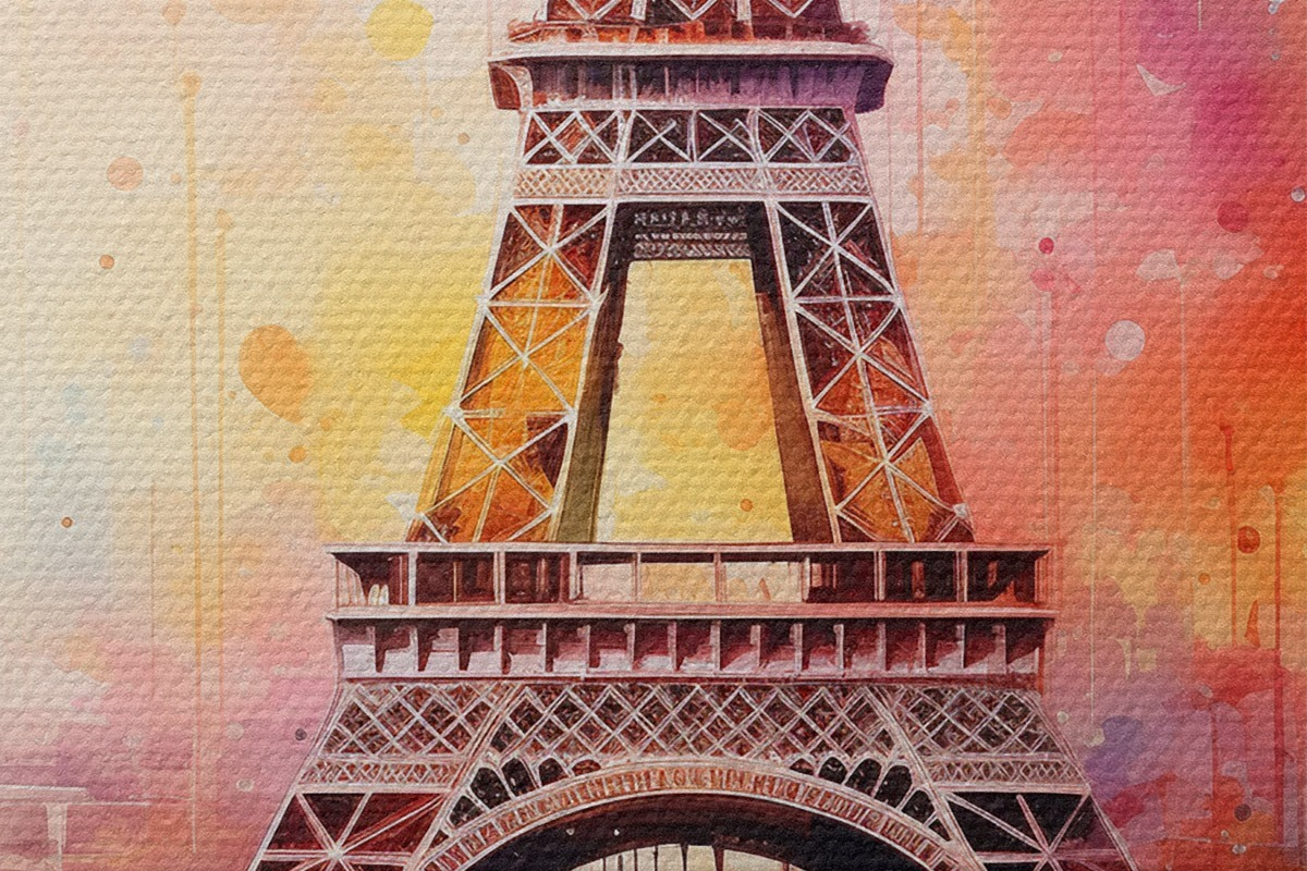 Attēls Parīze uz akvareļu šļakatu fona Nr r42081