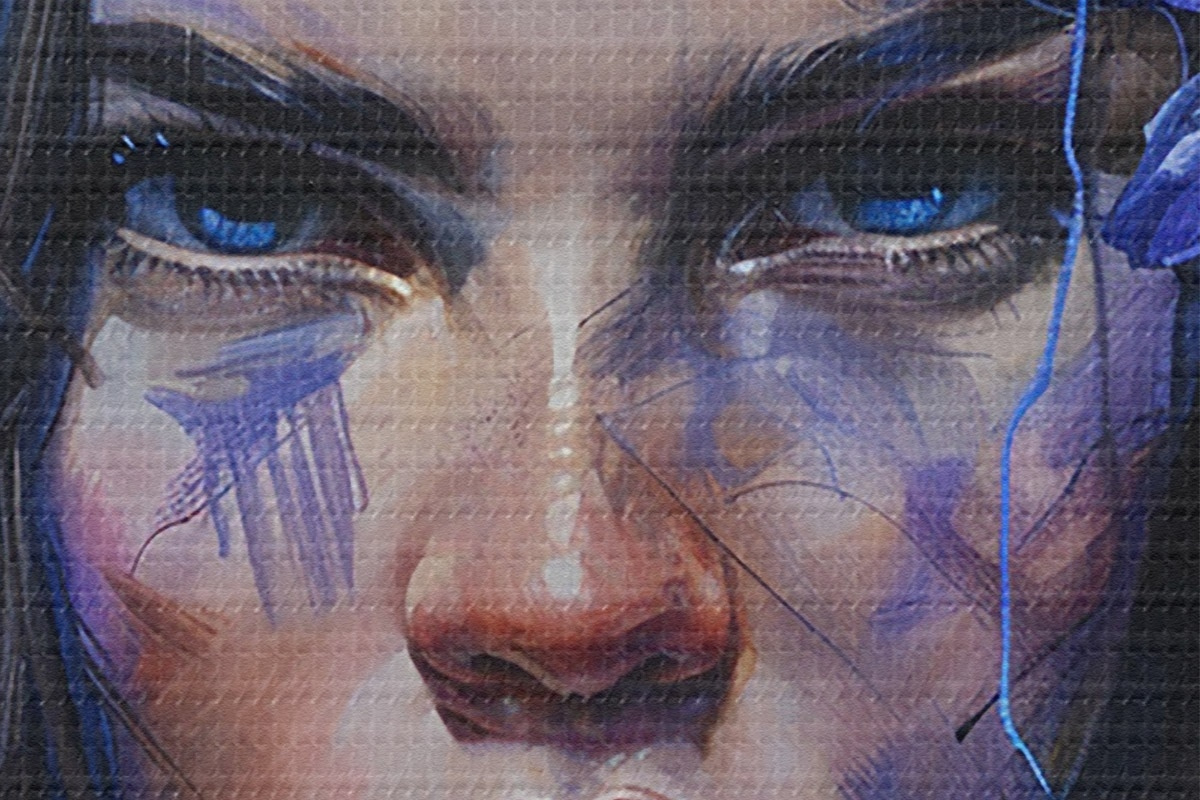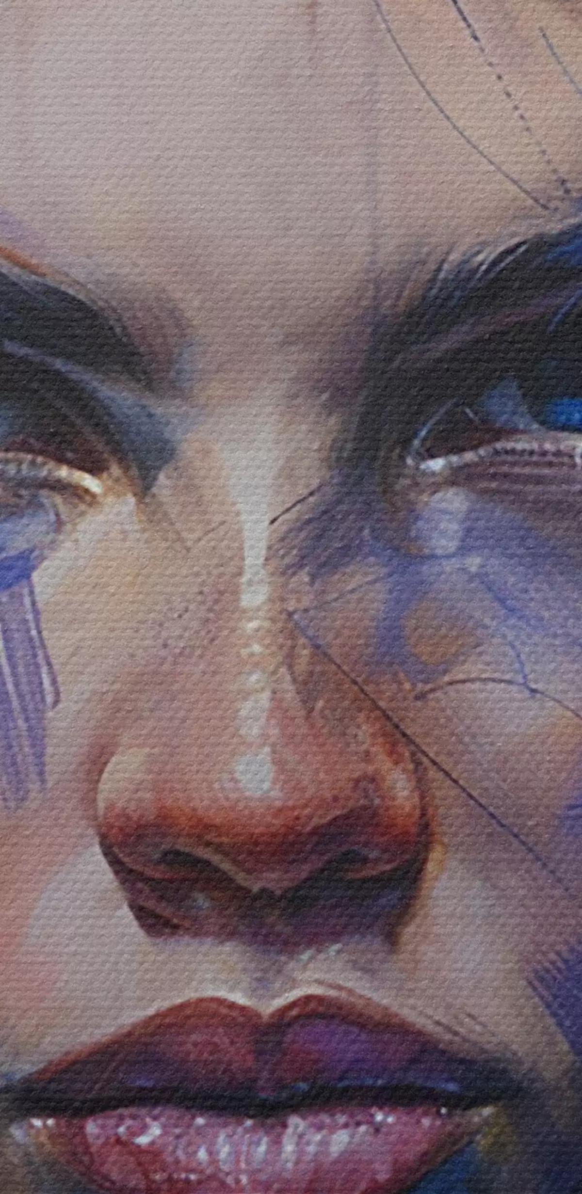 Smalkais diegu pinums uz šī audekla atgādina profesionālu mākslinieku audeklu virsmu.