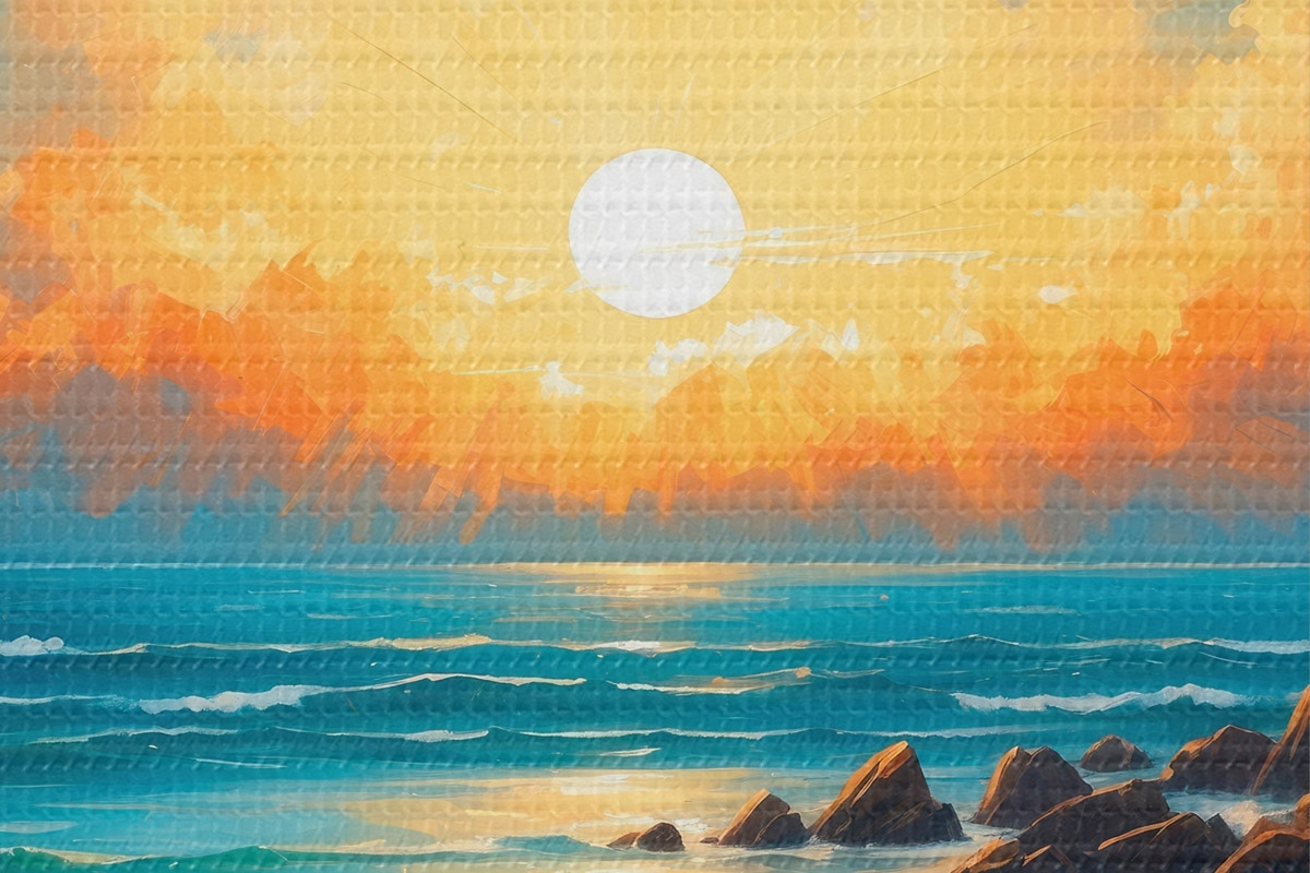 Smalkais diegu pinums uz šī audekla atgādina profesionālu mākslinieku audeklu virsmu.
