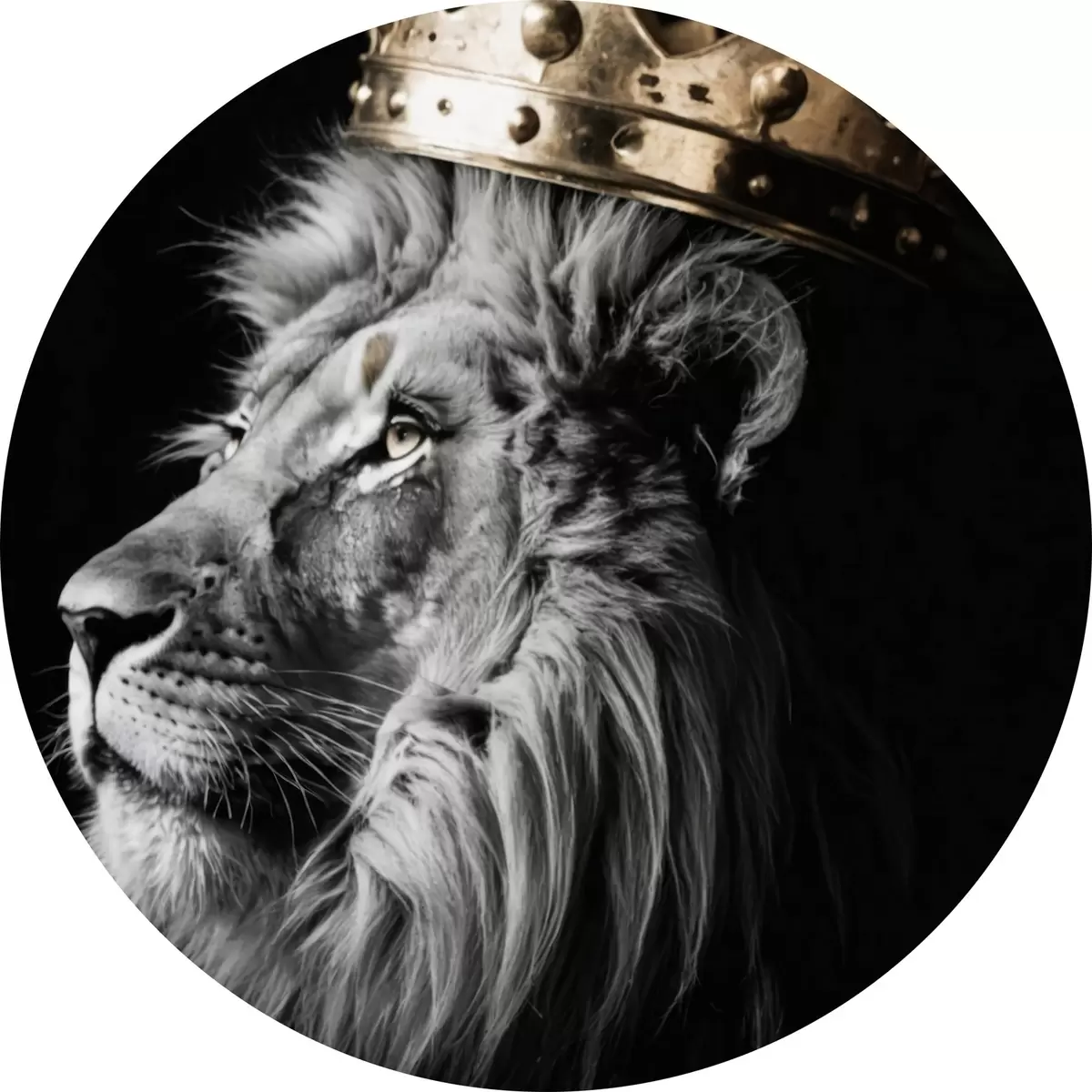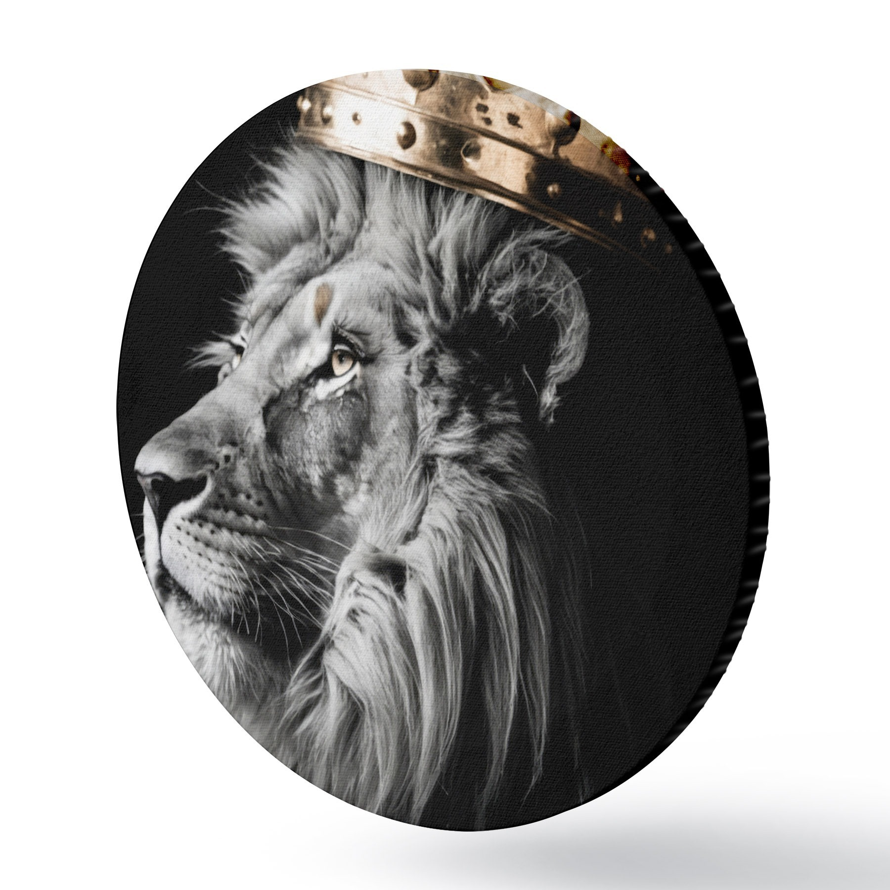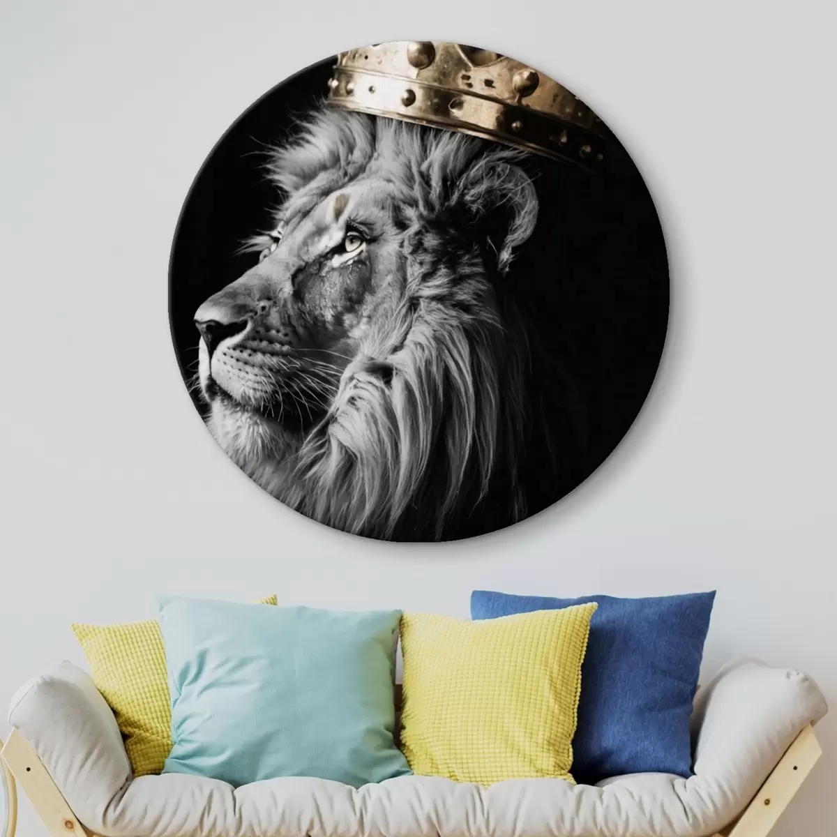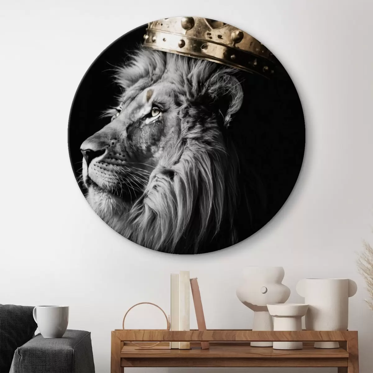 Apaļas gleznas Lauva ar kroni uz tumša fona r42096