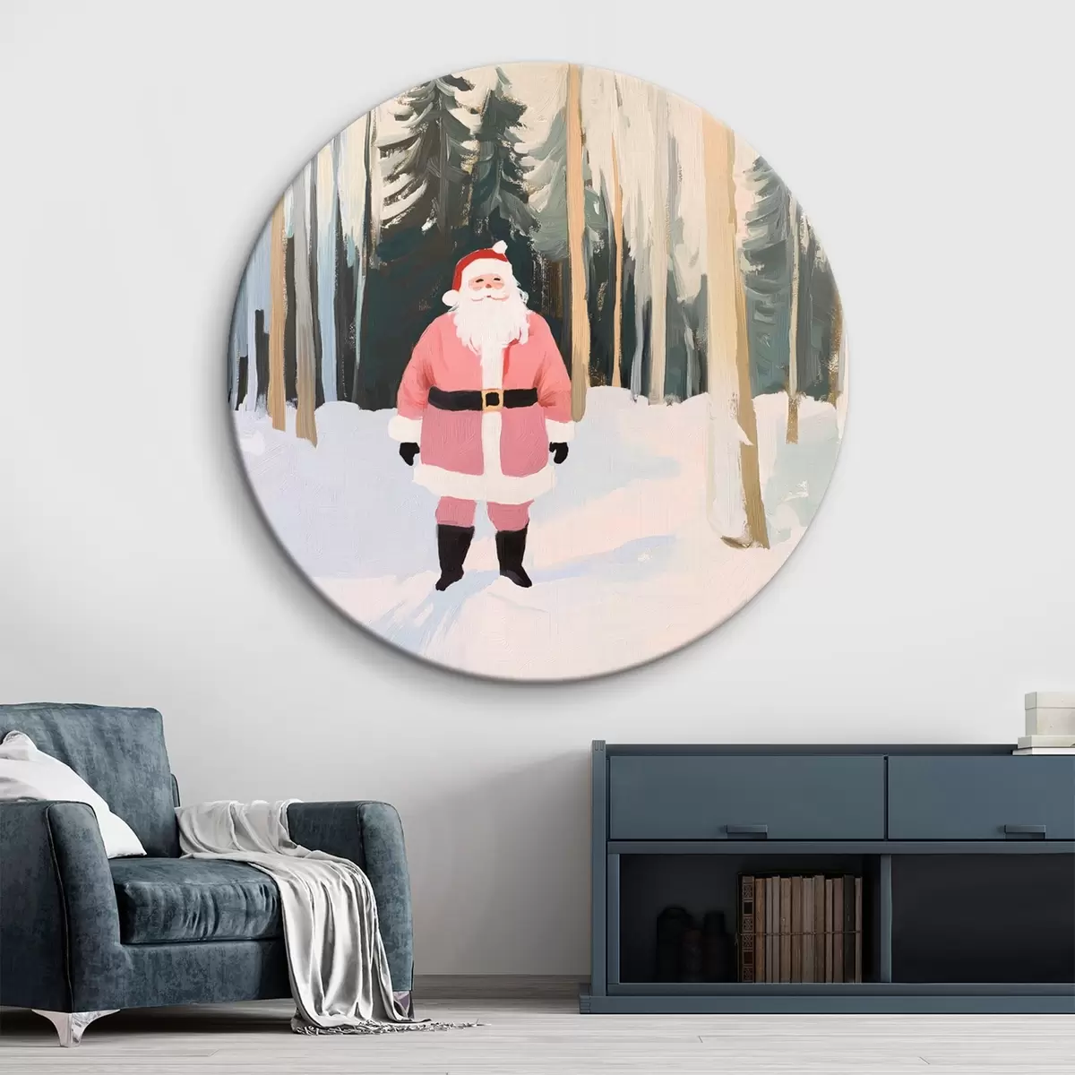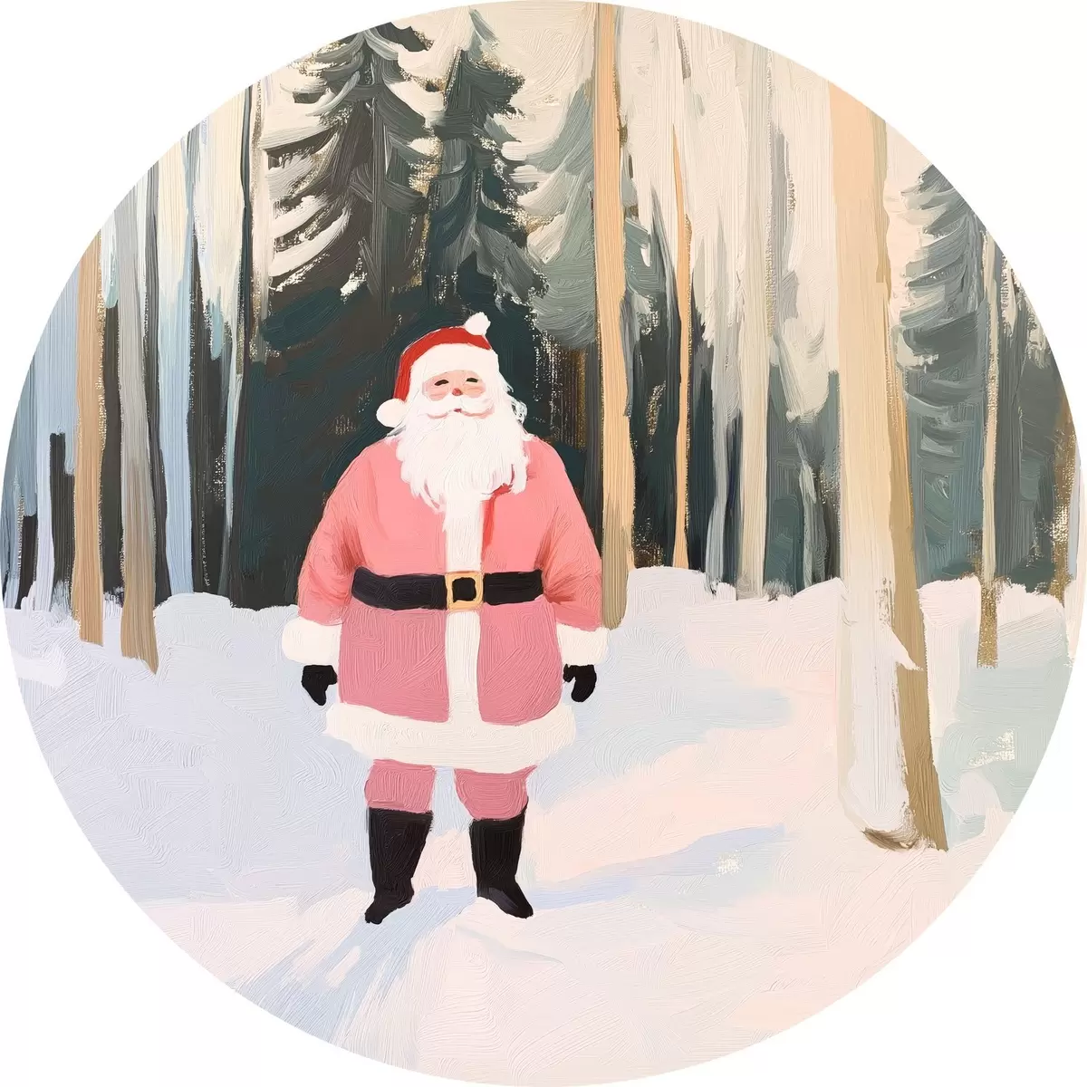 Apaļas gleznas Ziemassvētku vecītis Ziemassvētku mežā r42103