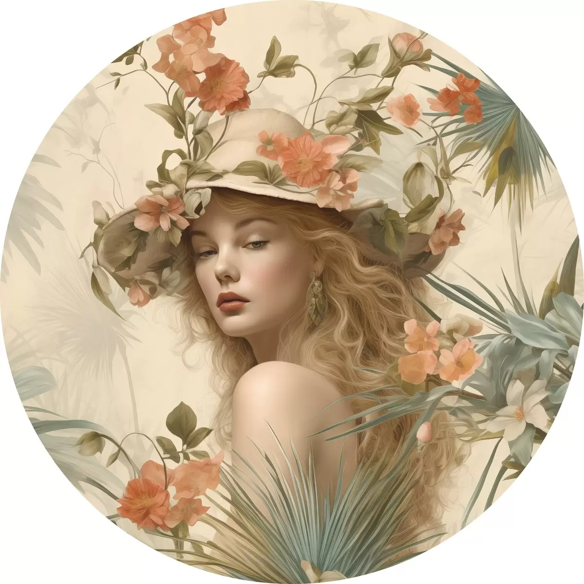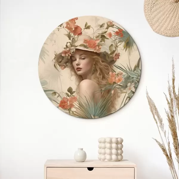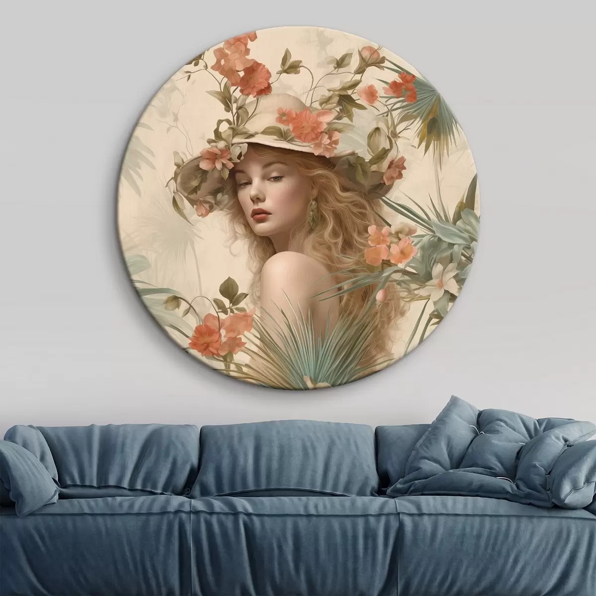 Apaļas gleznas Meitene ar cepuri tropos vintage stilā r42115