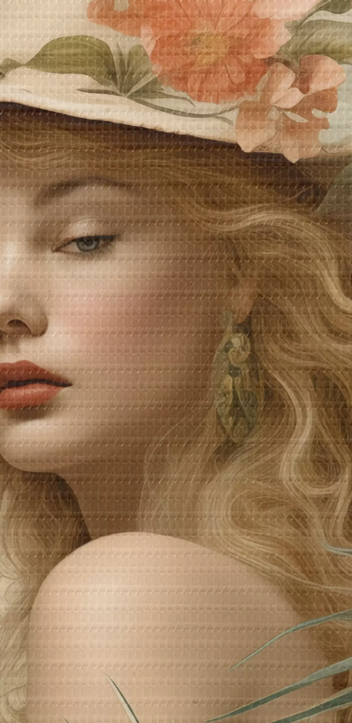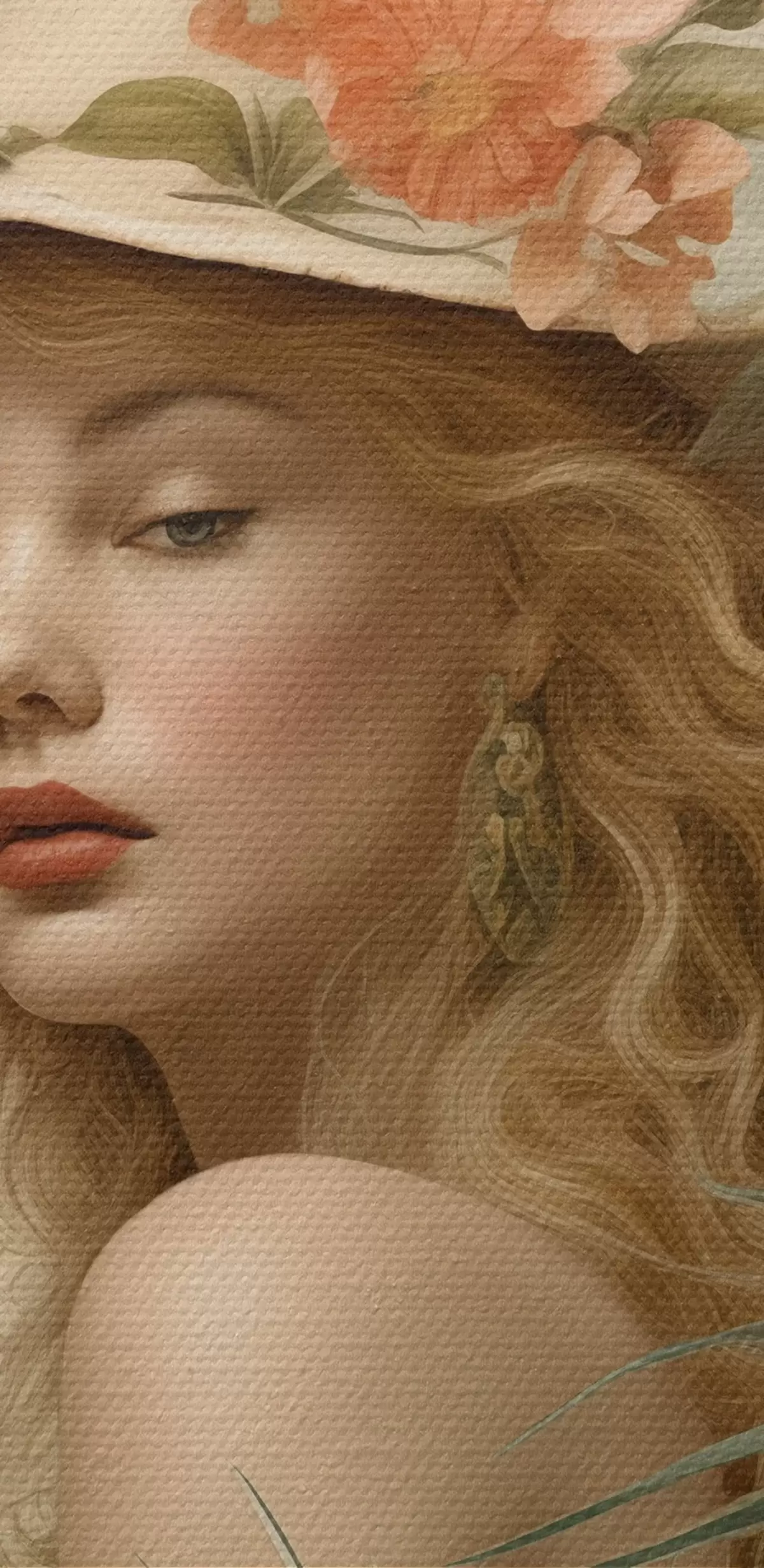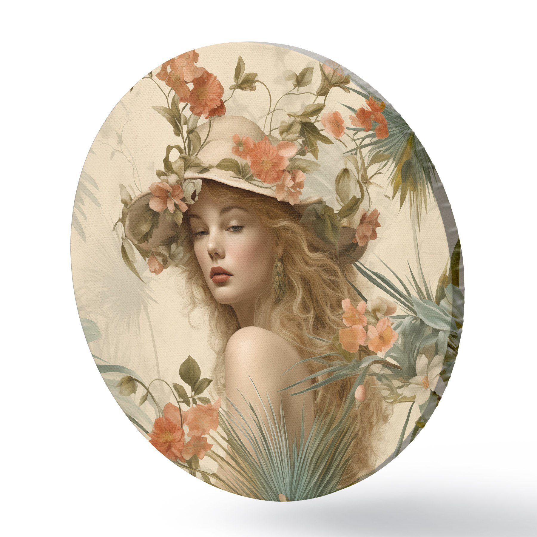 Apaļas gleznas Meitene ar cepuri tropos vintage stilā r42115