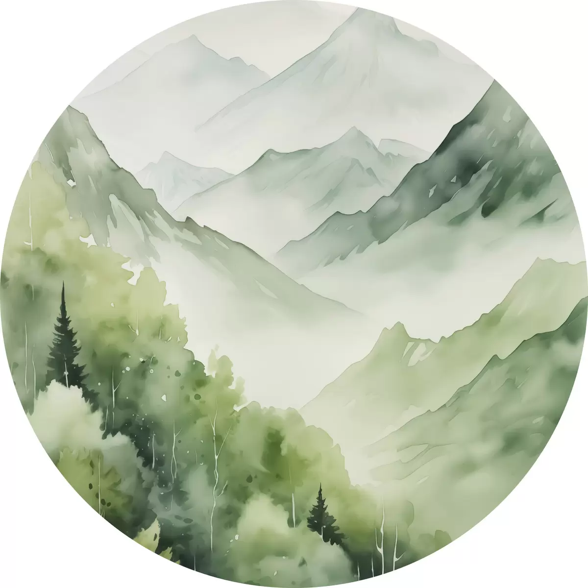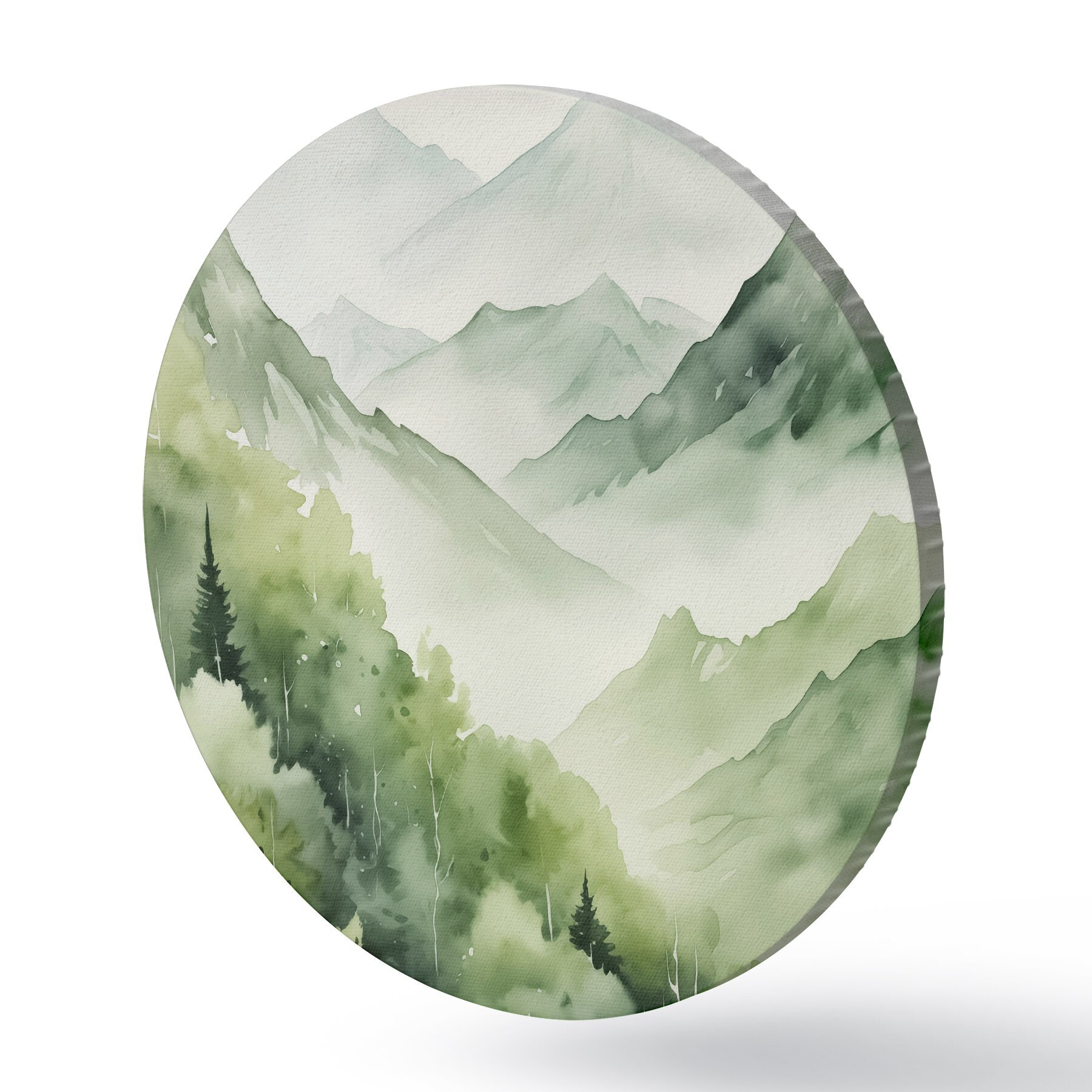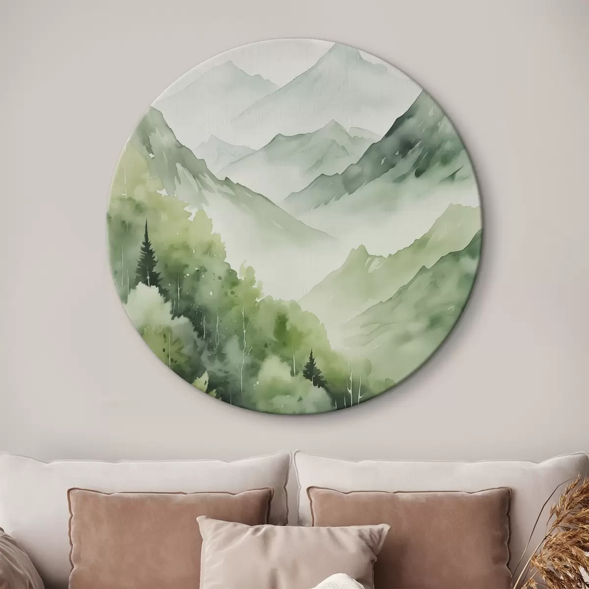 Apaļas gleznas Lapu koku mežs kalnos akvareļu imitācija r42122