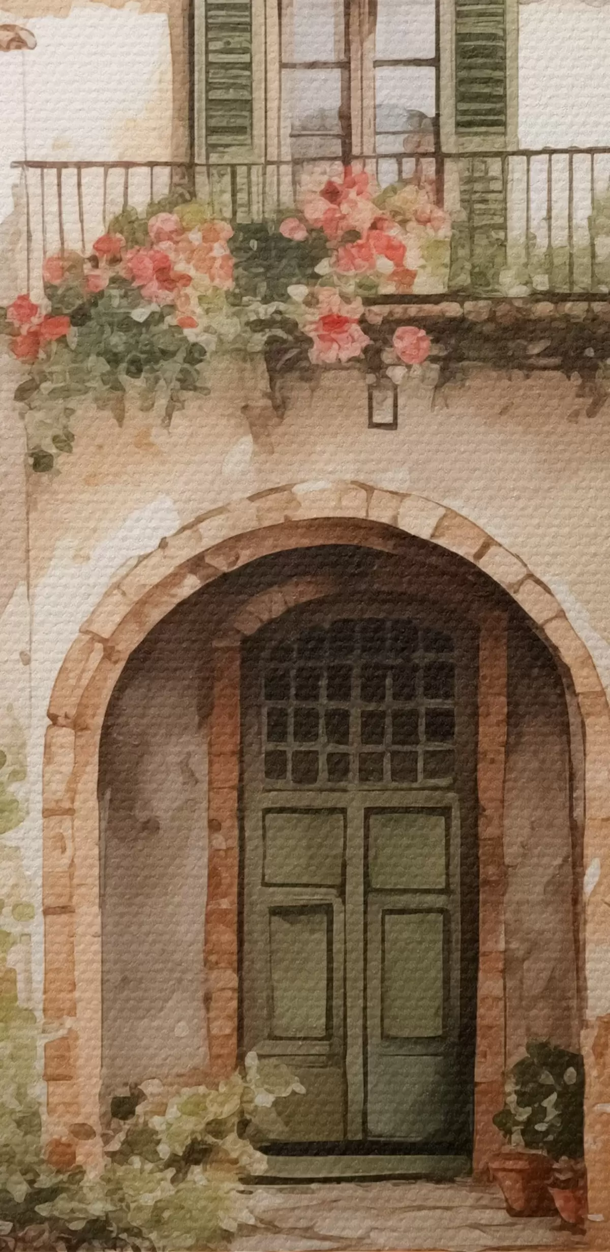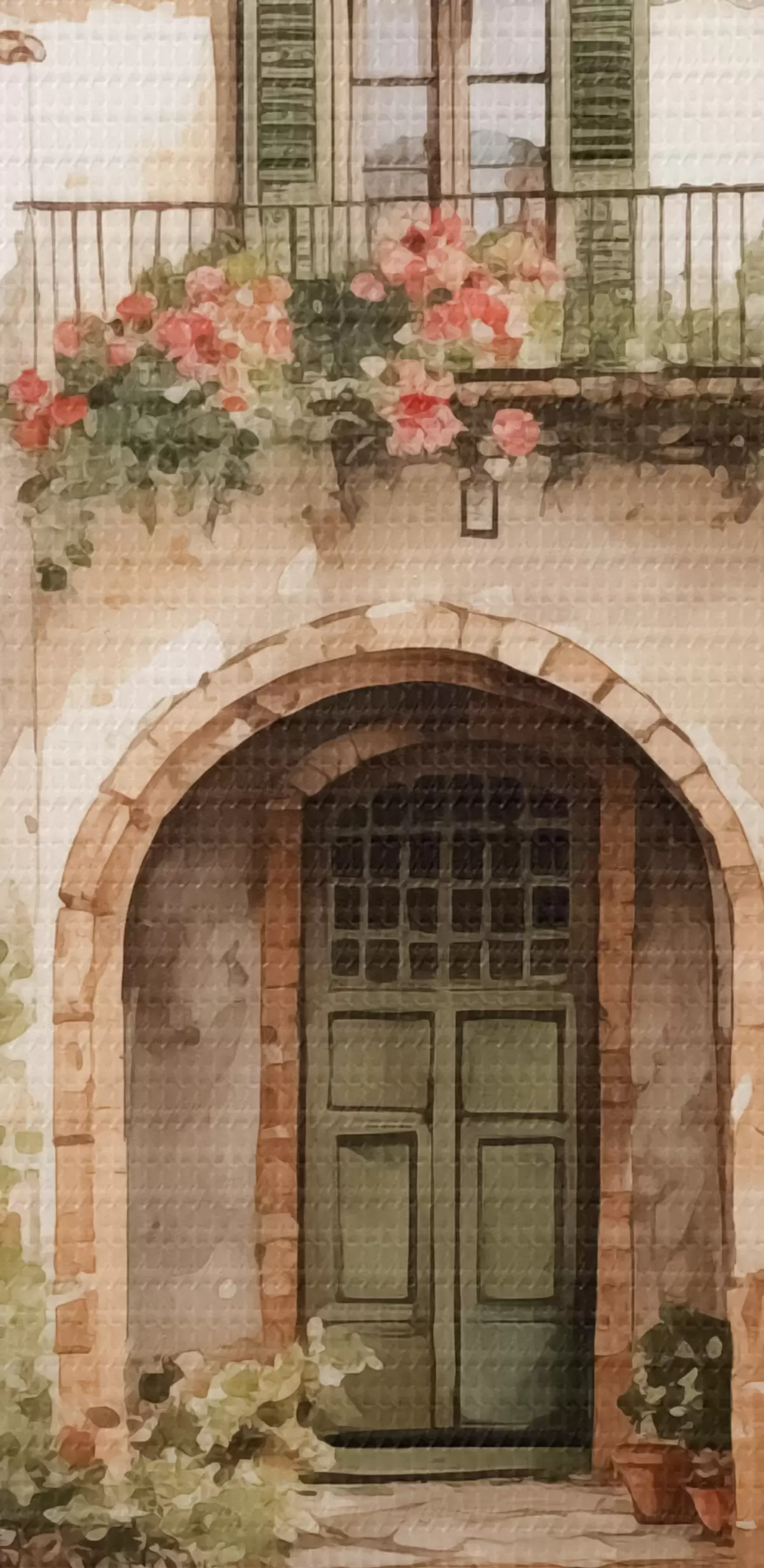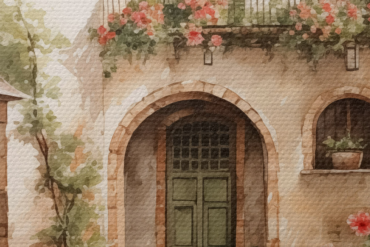 Attēls Itāļu pagalms ar puķu podiem, kas imitē akvareli Nr r42126