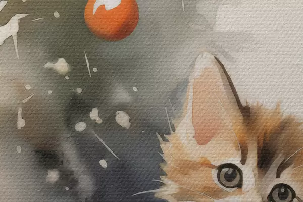 Attēls Kaķēns pie Ziemassvētku eglītes mitras akvareļkrāsas imitācija Nr r42140